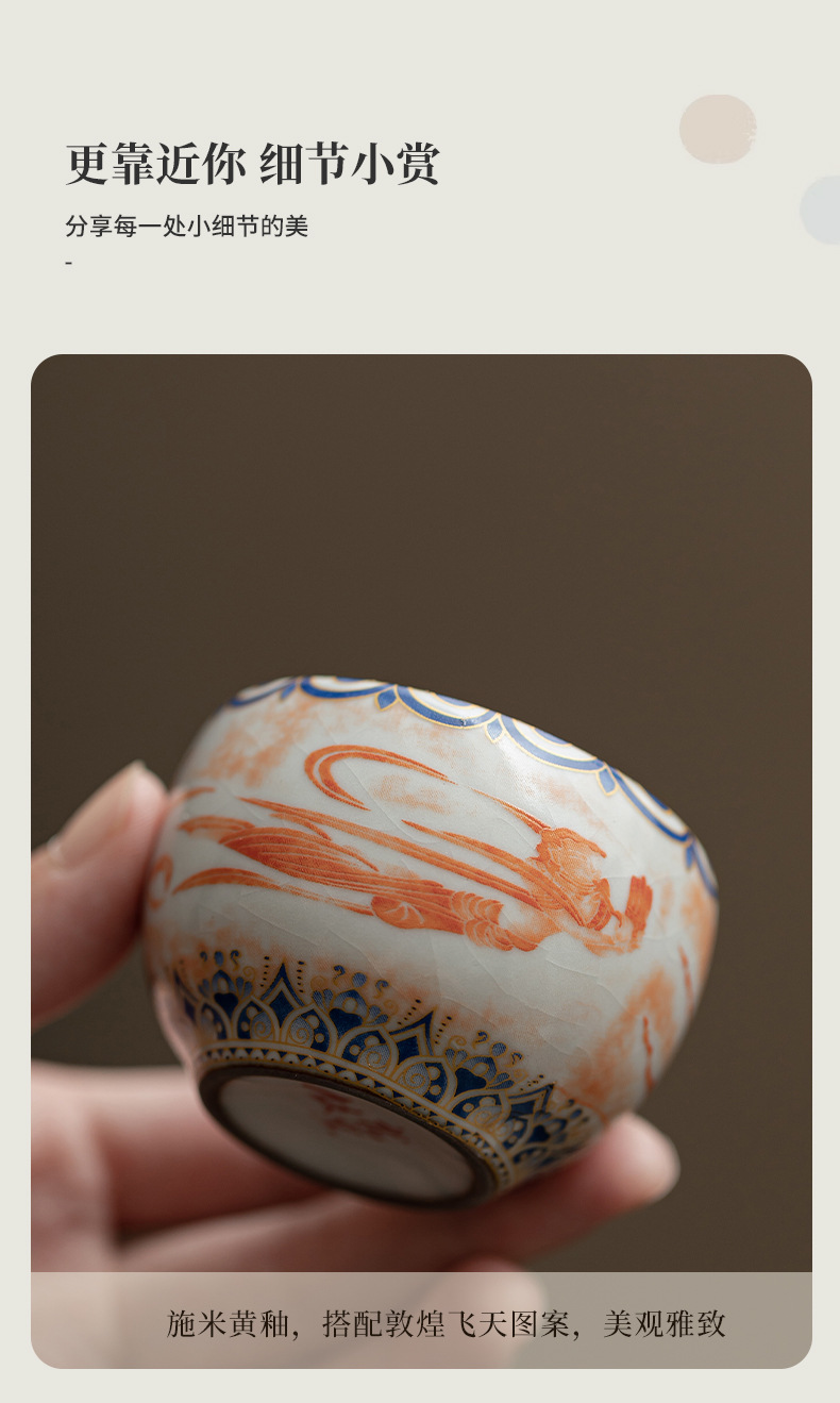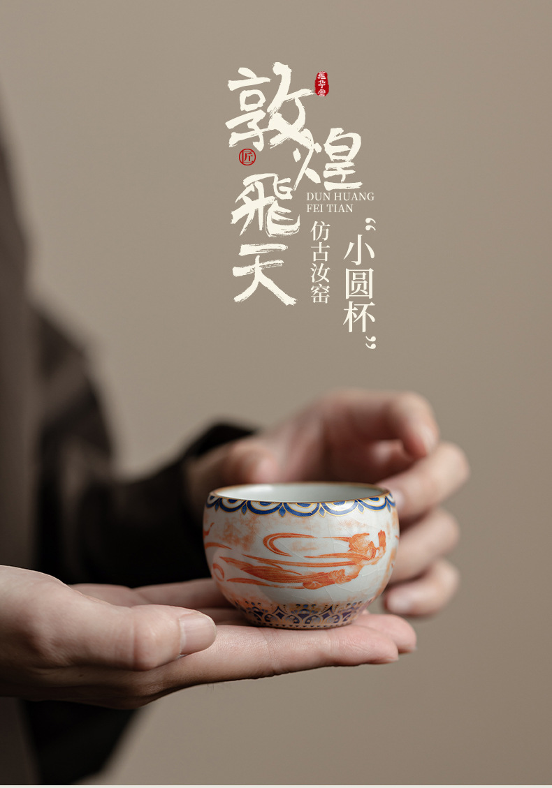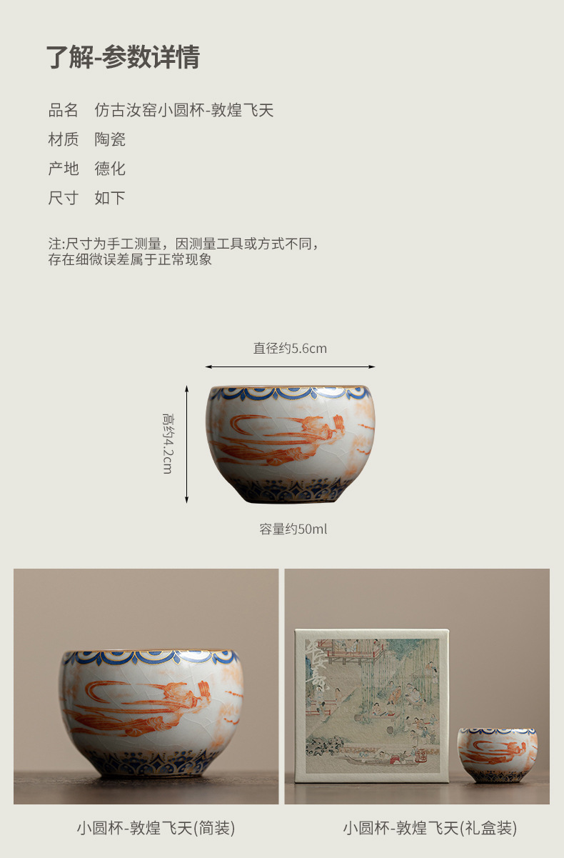 - Cốc tròn nhỏ Đôn Hoàng, cốc chủ nhân lò nung Song Ru giả gia dụng, cốc trà gốm sứ, bộ trà Kung Fu, cốc đơn, cốc trà