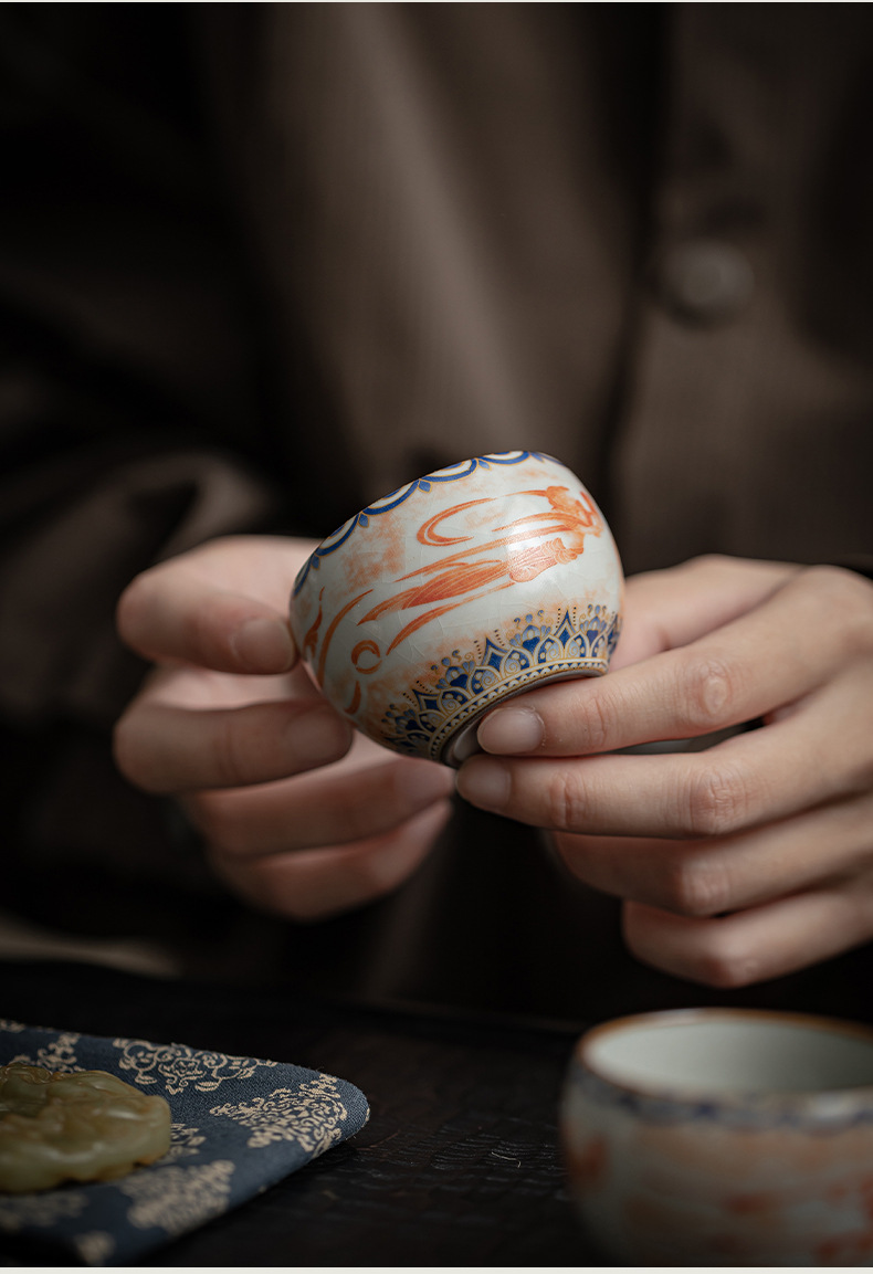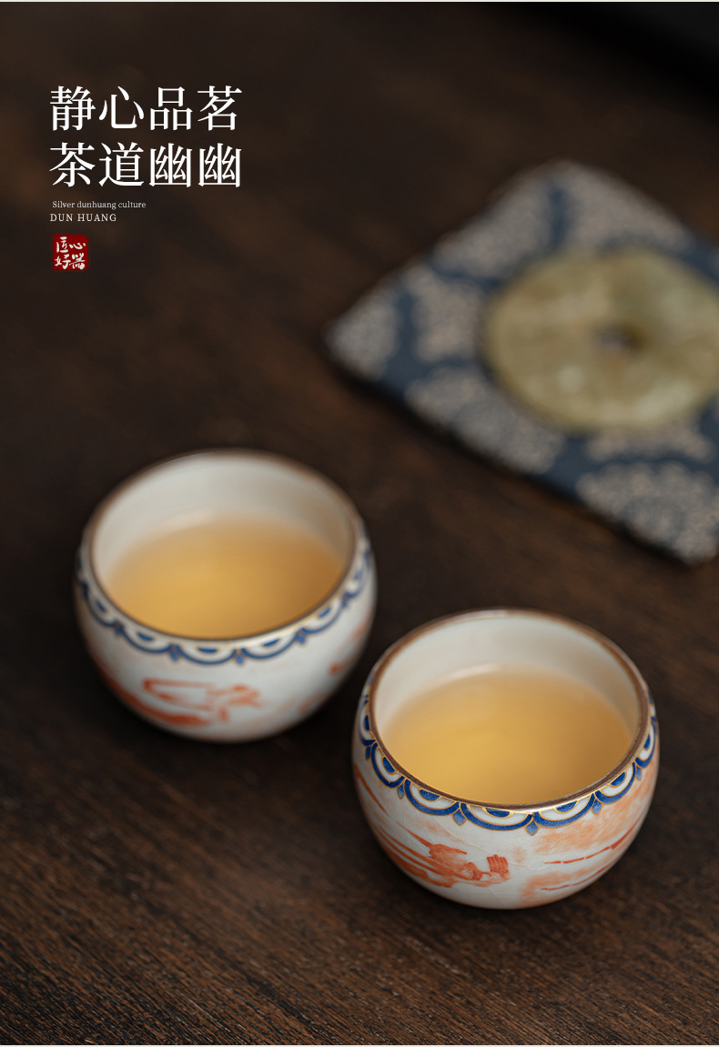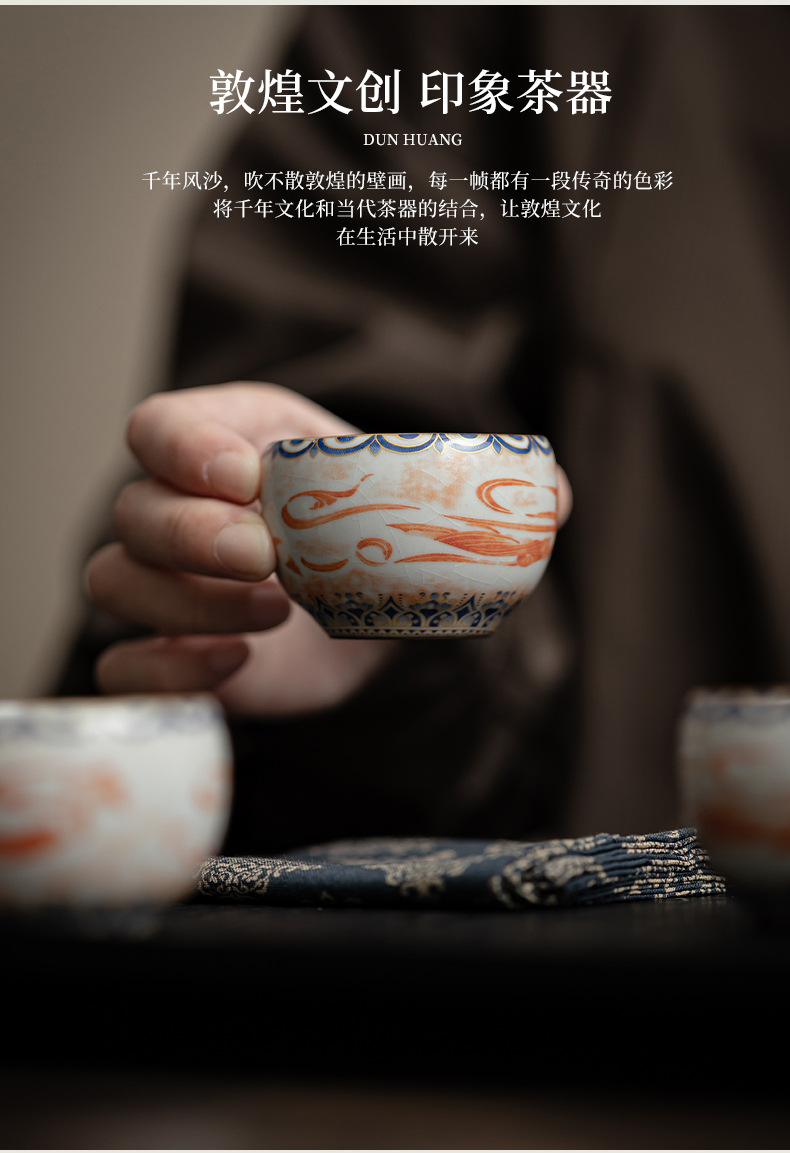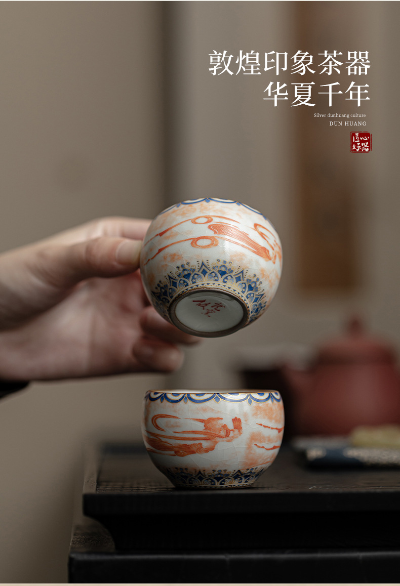 - Cốc tròn nhỏ Đôn Hoàng, cốc chủ nhân lò nung Song Ru giả gia dụng, cốc trà gốm sứ, bộ trà Kung Fu, cốc đơn, cốc trà