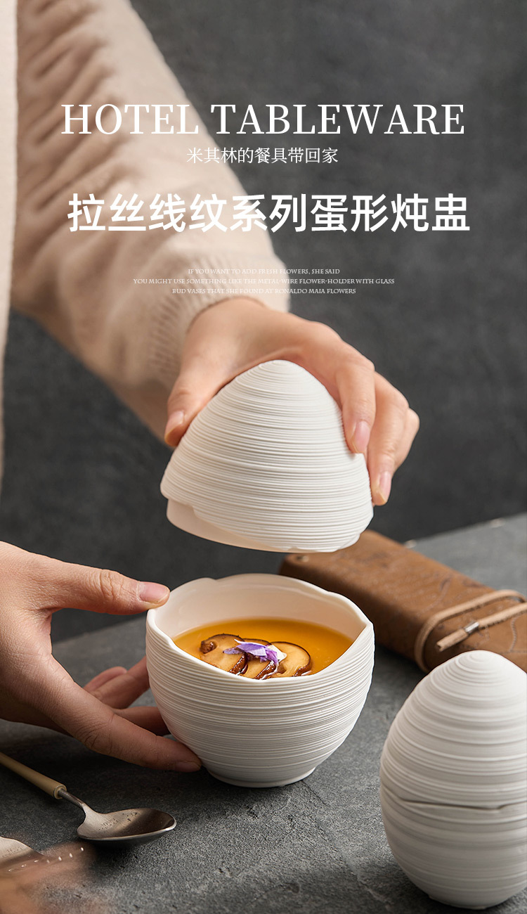 Cốc trứng gốm hoa văn dòng, cốc hầm nhỏ cho sức khỏe một người, nhà hàng khách sạn cao cấp, bát trứng thương mại sáng tạo, bát trứng hấp