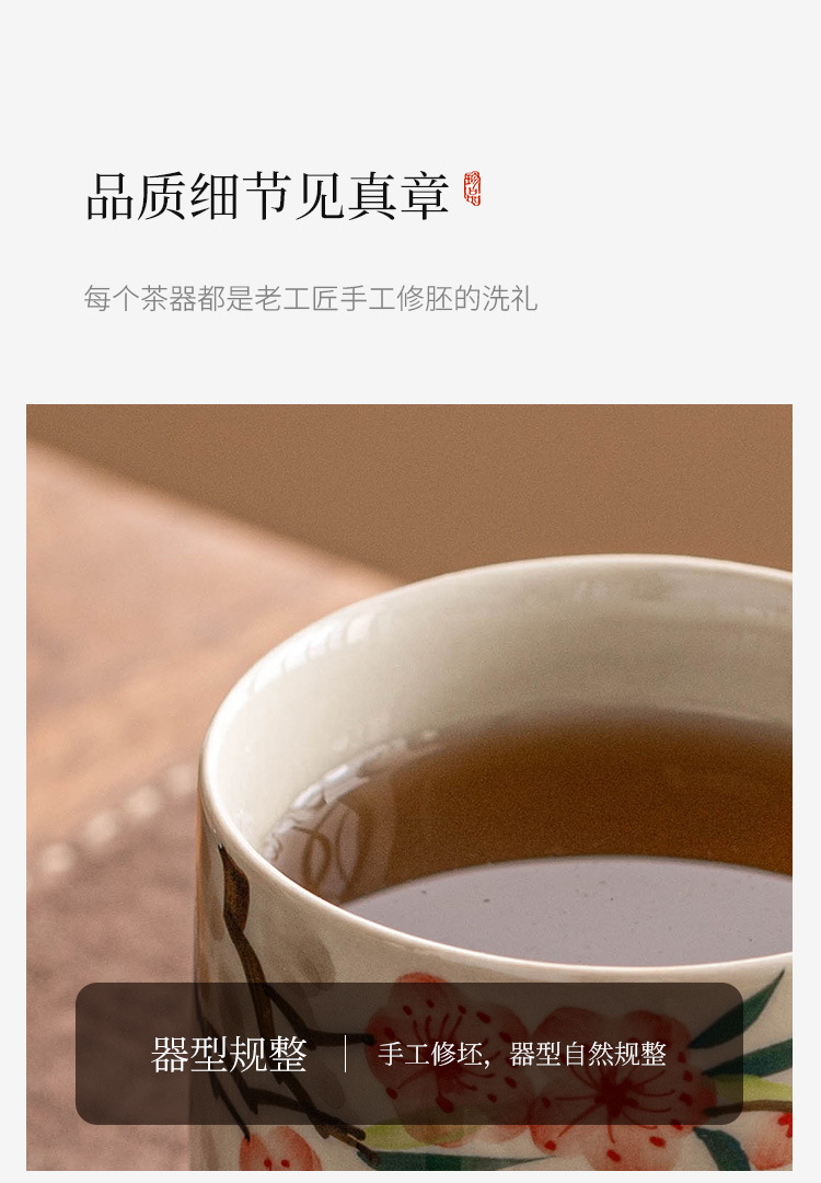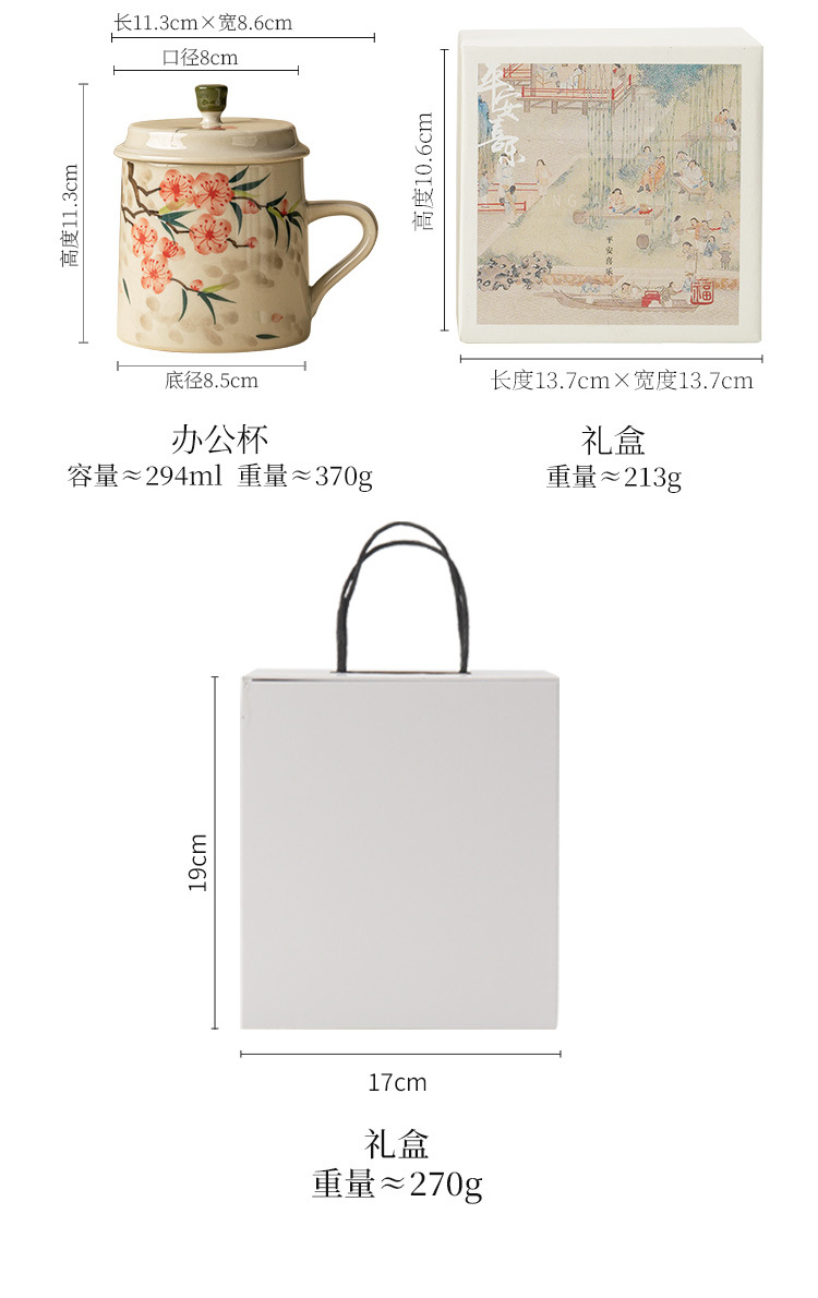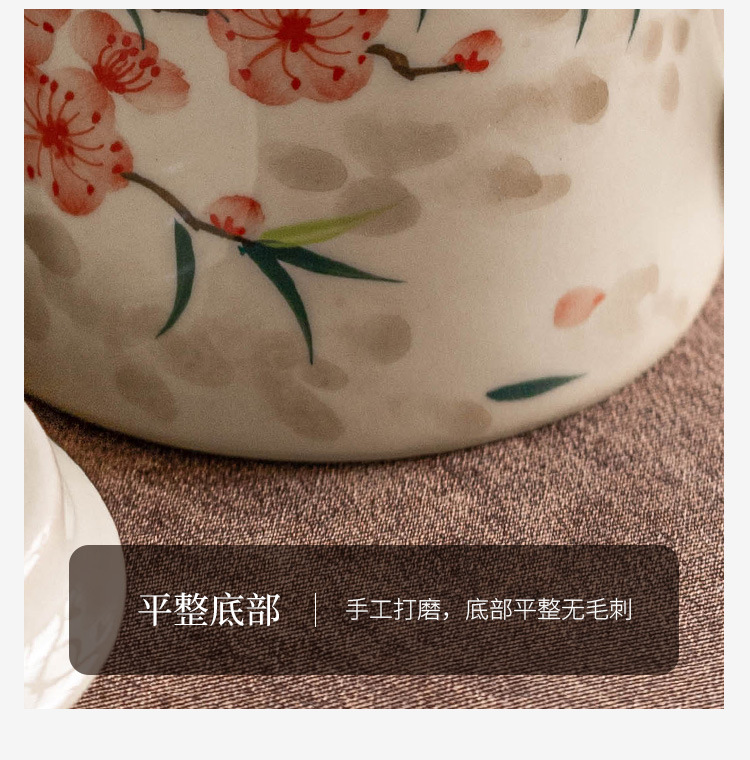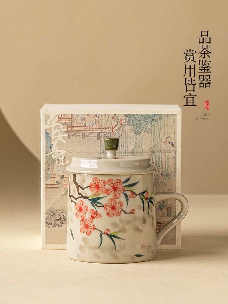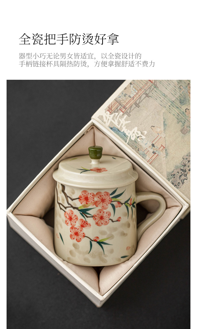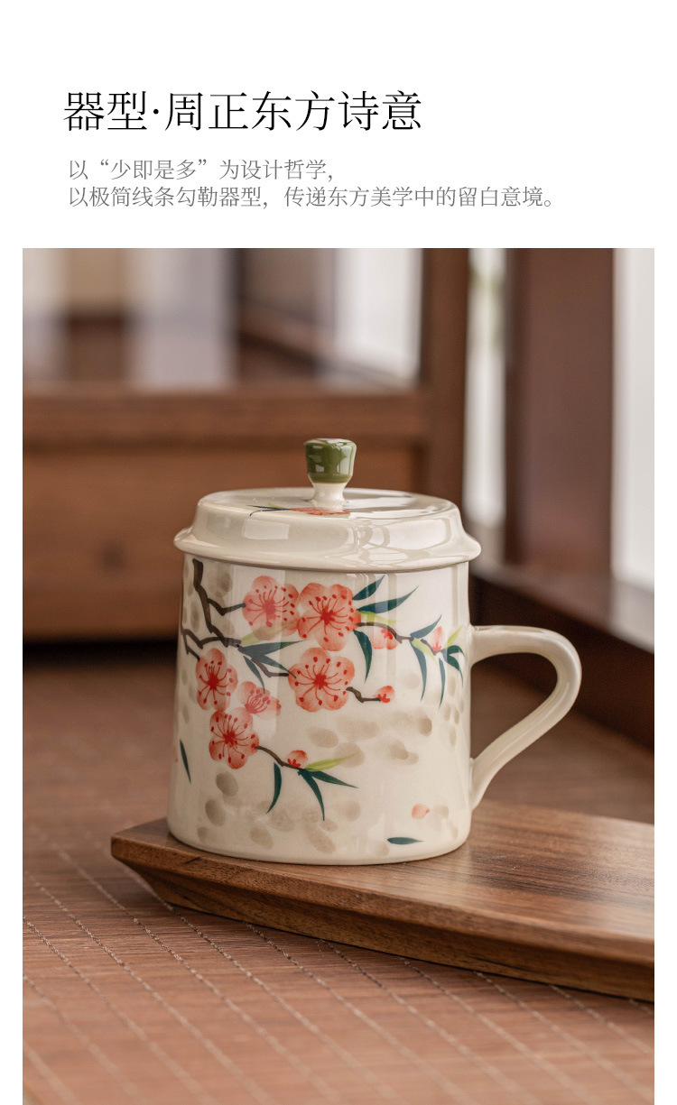 - Cốc uống nước bằng gốm sứ hoa đào vẽ tay, cốc uống nước gia dụng bằng gốm có nắp, cốc trà dung tích lớn dành riêng cho nữ