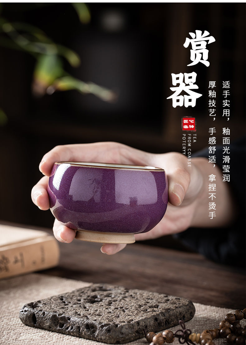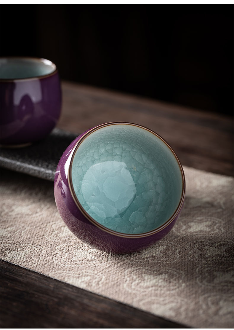 - Cốc uống trà gốm sứ màu tím Jun cốc uống trà đá nứt cốc chủ nhân cốc trà Kung Fu cốc uống trà gia dụng quà tặng