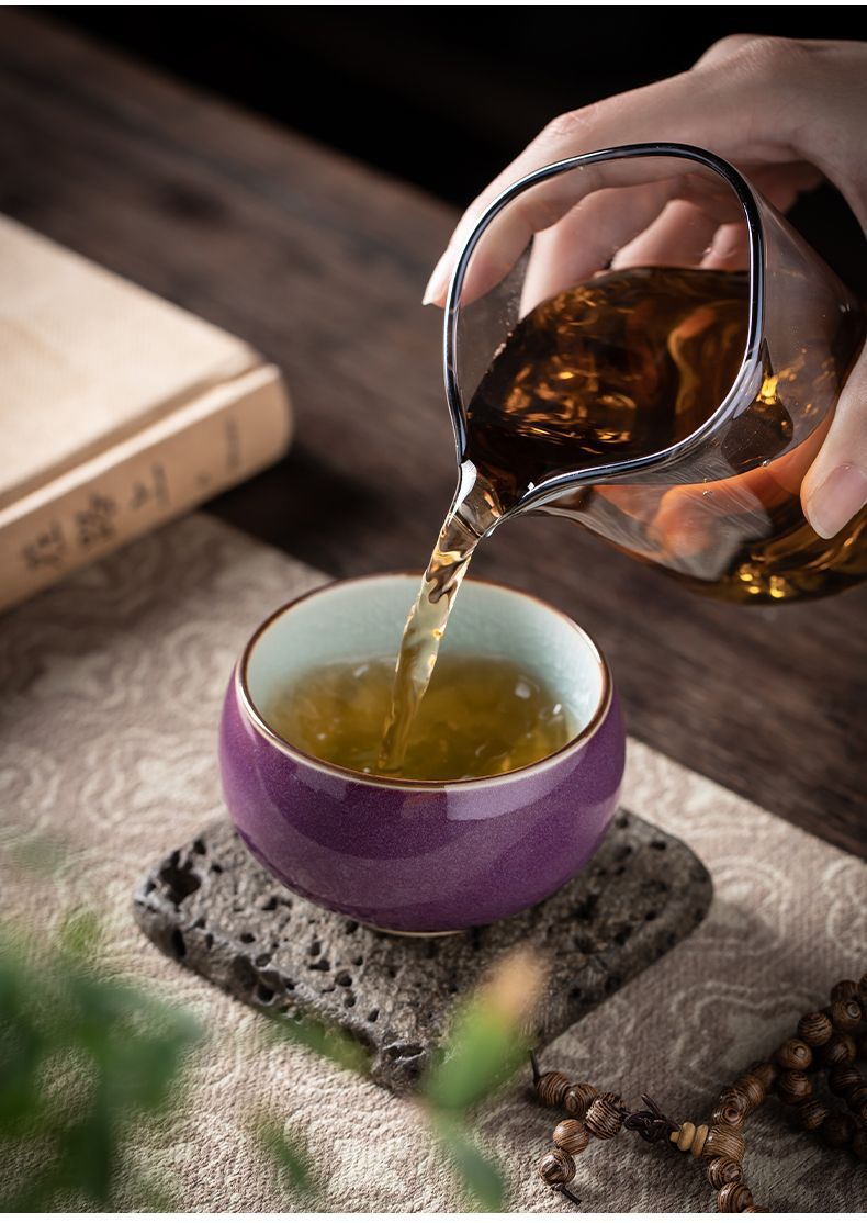 Cốc uống trà gốm sứ màu tím Jun cốc uống trà đá nứt cốc chủ nhân cốc trà Kung Fu cốc uống trà gia dụng quà tặng