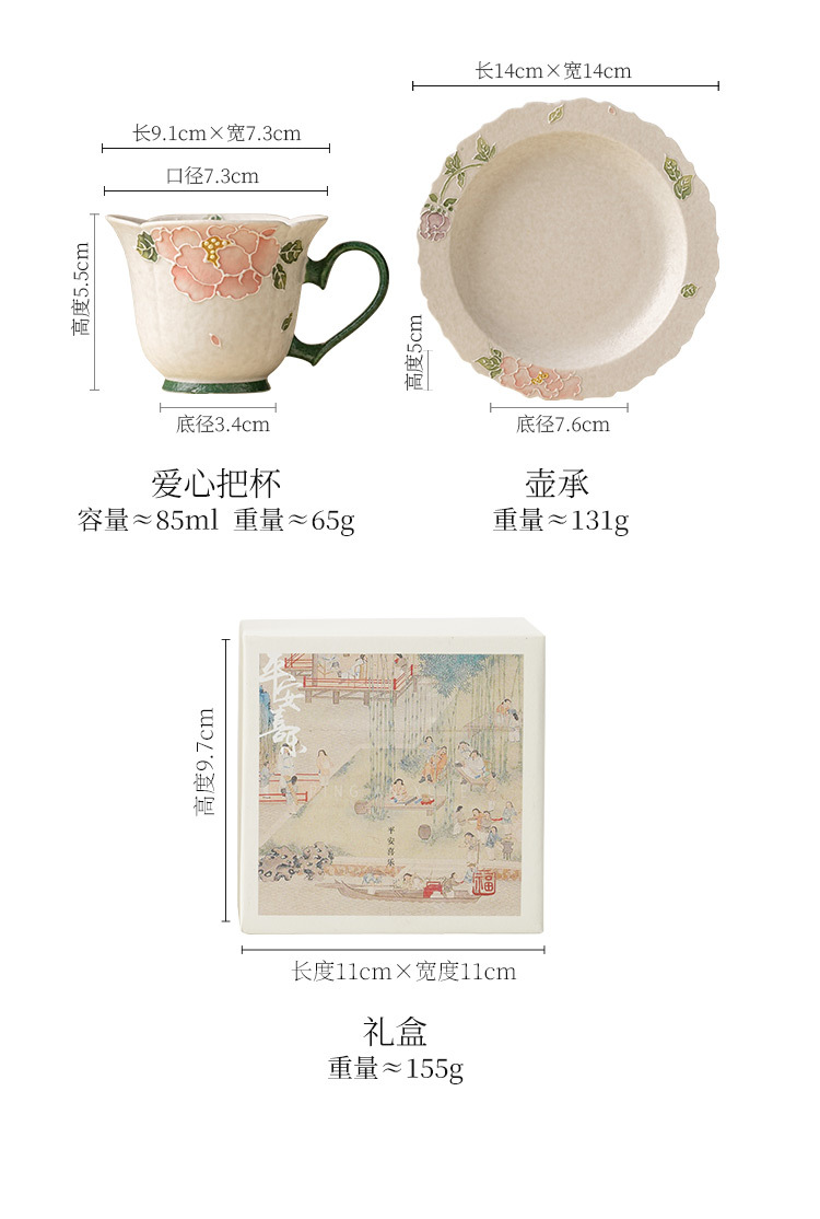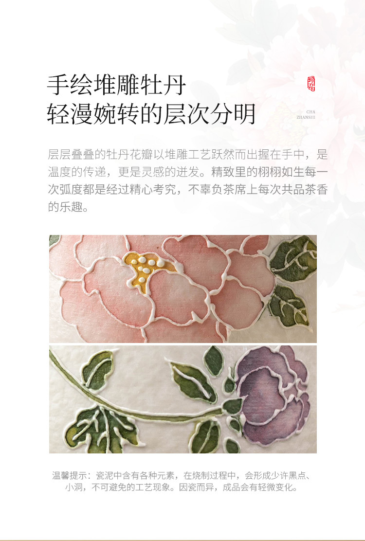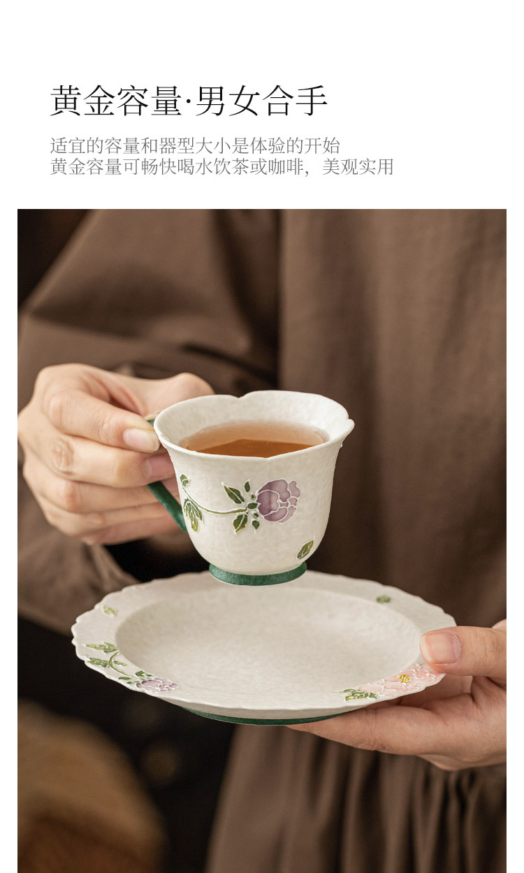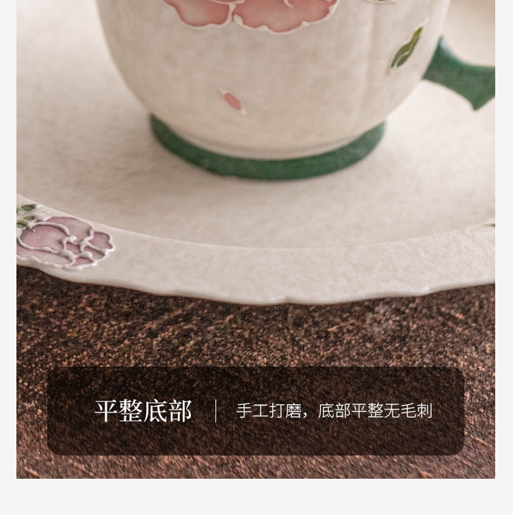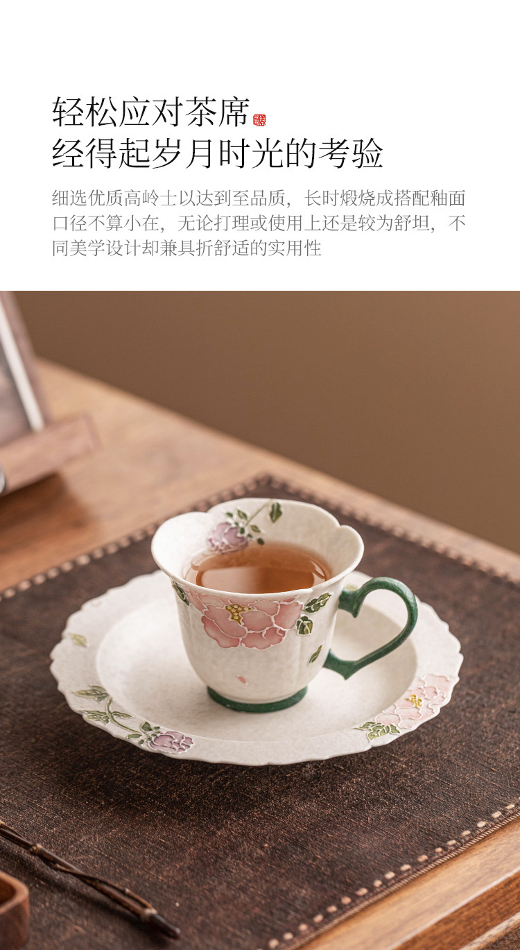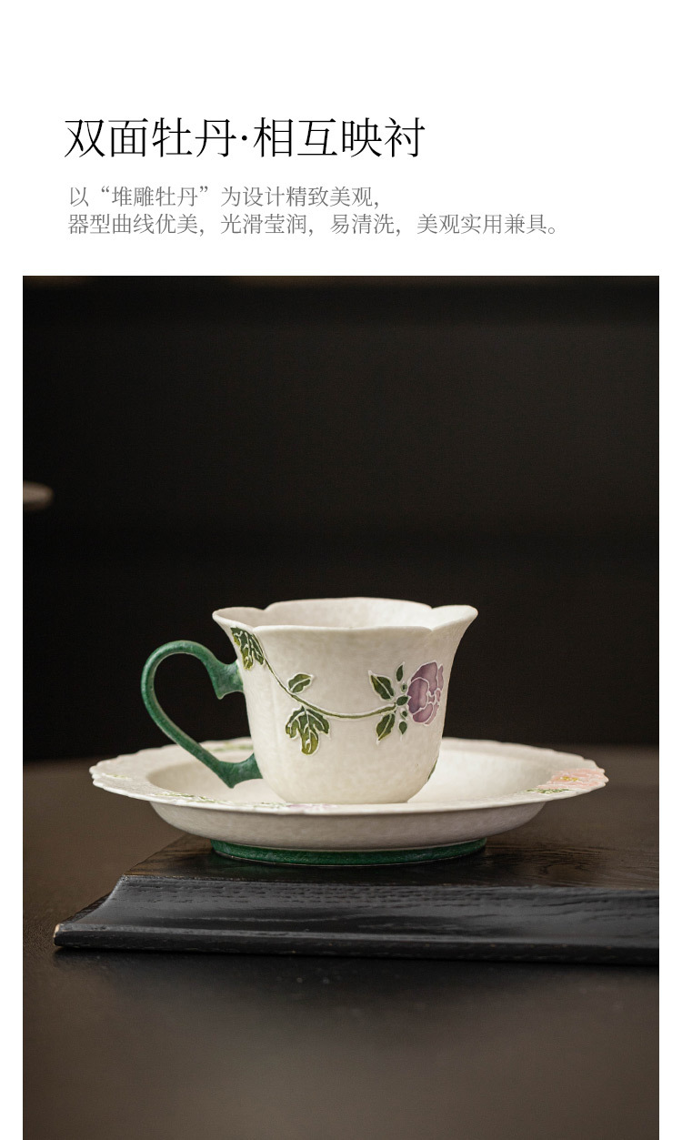 Cốc uống trà màu trắng mỏ đá cực chất cốc trà màu đỏ hoa mẫu đơn chạm khắc cốc trà chiều nữ cao cấp cốc uống nước gốm sứ tinh tế
