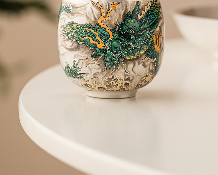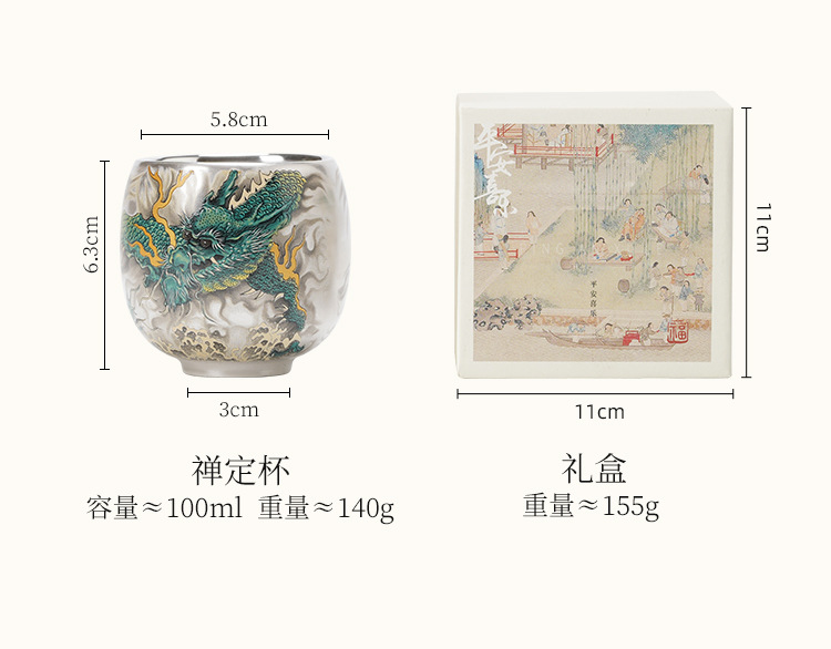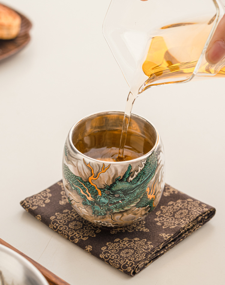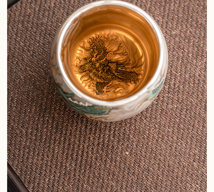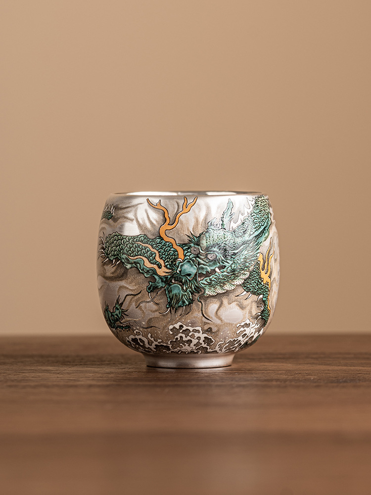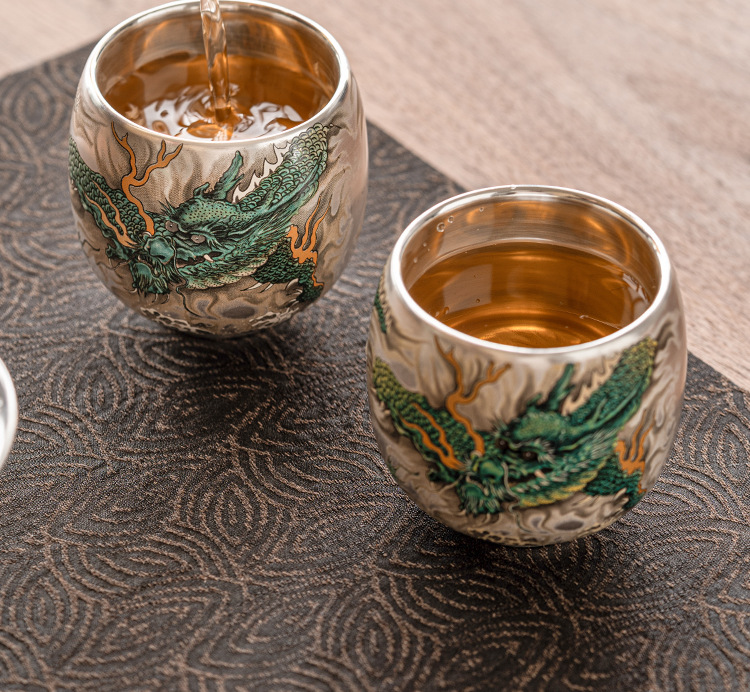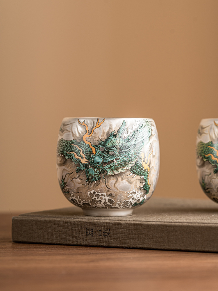 - Cốc uống trà rồng xanh mạ bạc cốc trà cao cấp tinh tế cốc cá nhân gia dụng cốc Chủ Bộ trà Trung Quốc cốc đơn hộp quà