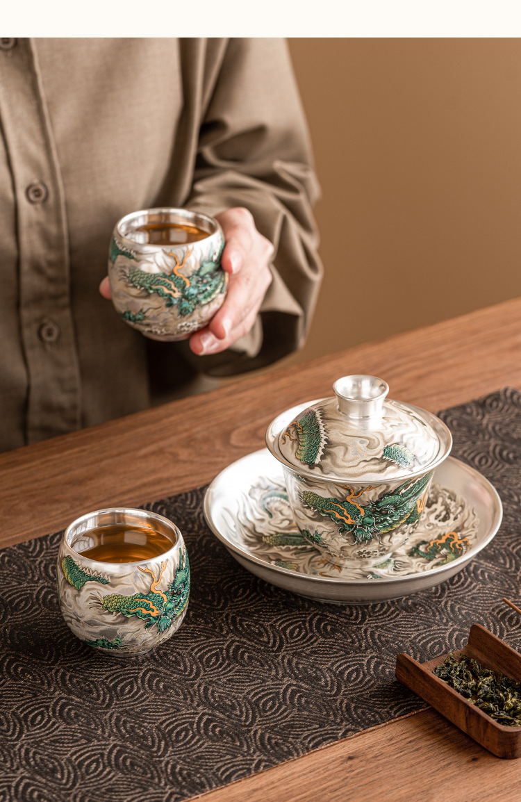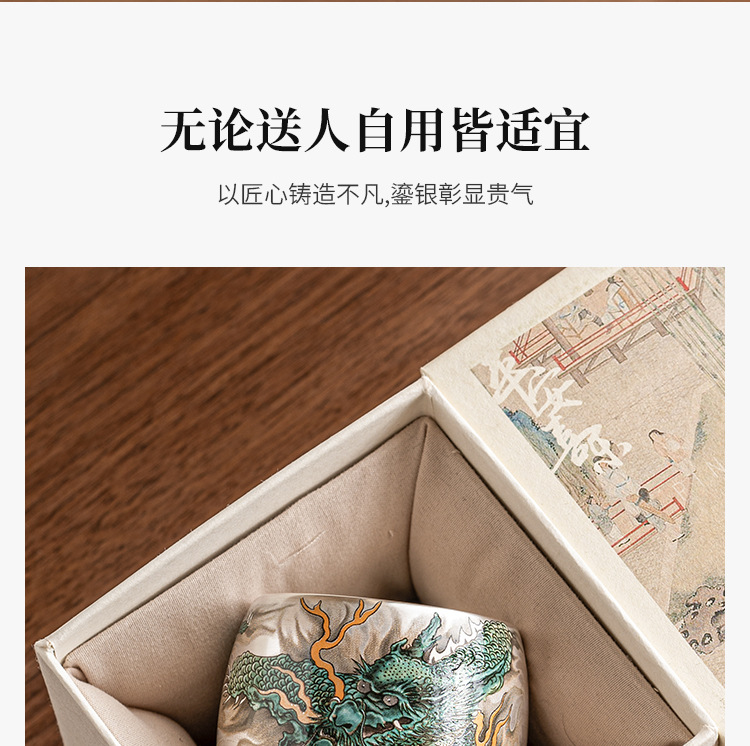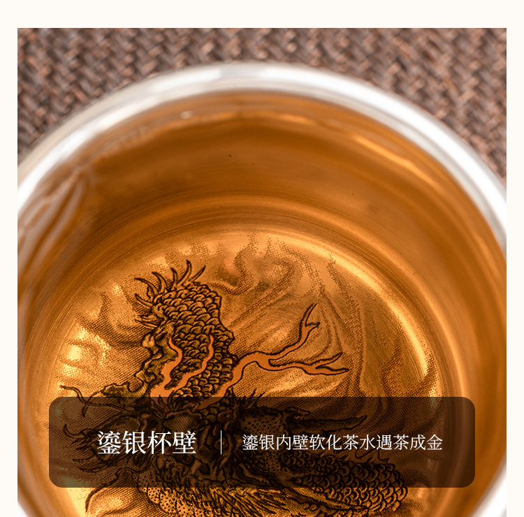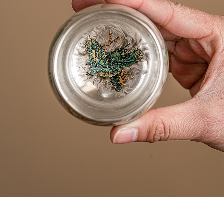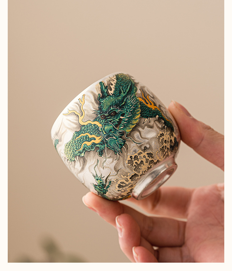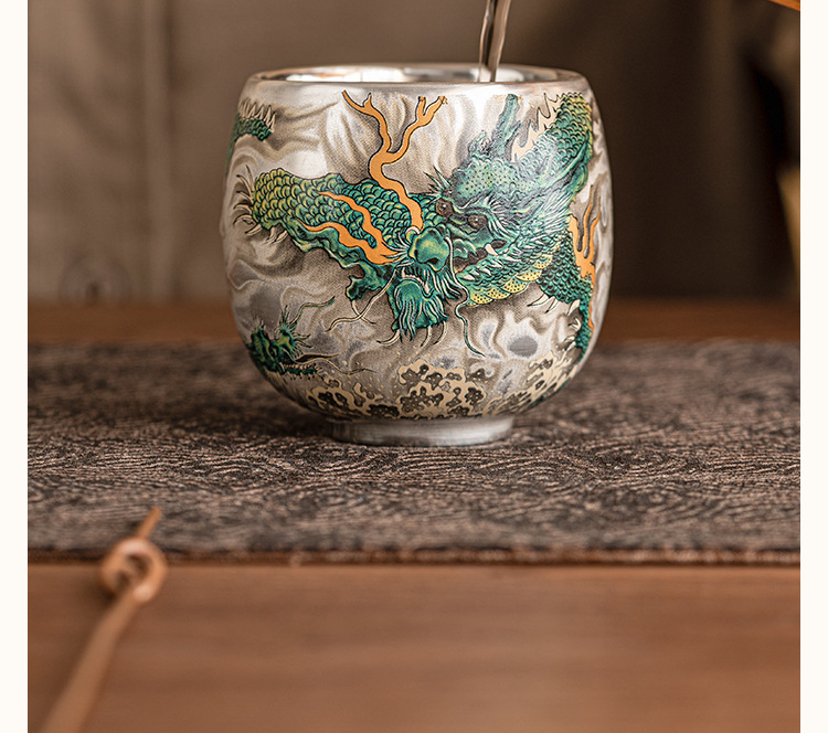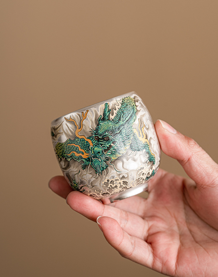 - Cốc uống trà rồng xanh mạ bạc cốc trà cao cấp tinh tế cốc cá nhân gia dụng cốc Chủ Bộ trà Trung Quốc cốc đơn hộp quà