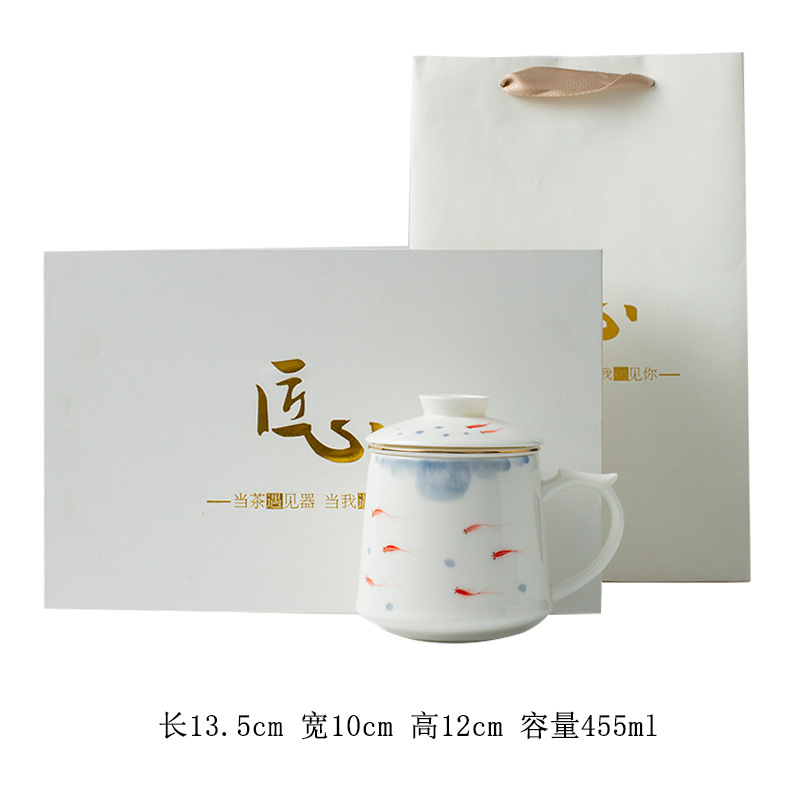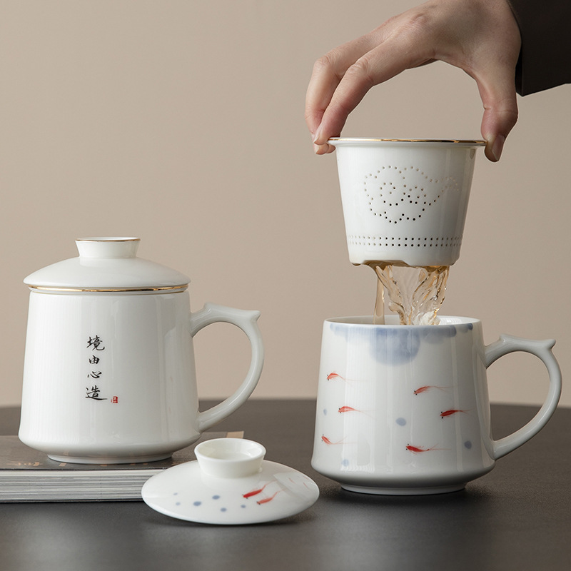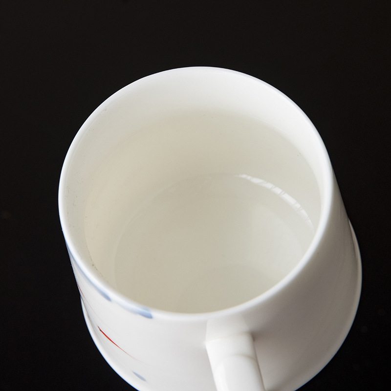 Cốc văn phòng bằng ngọc bích mỡ cừu vẽ tay cốc nước sứ trắng tách trà có nắp cốc pha trà gốm sứ dung tích lớn