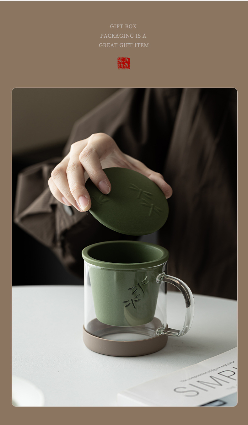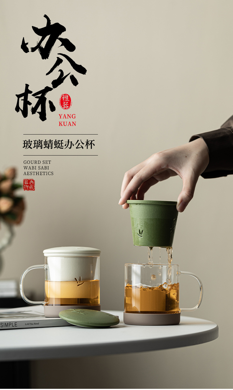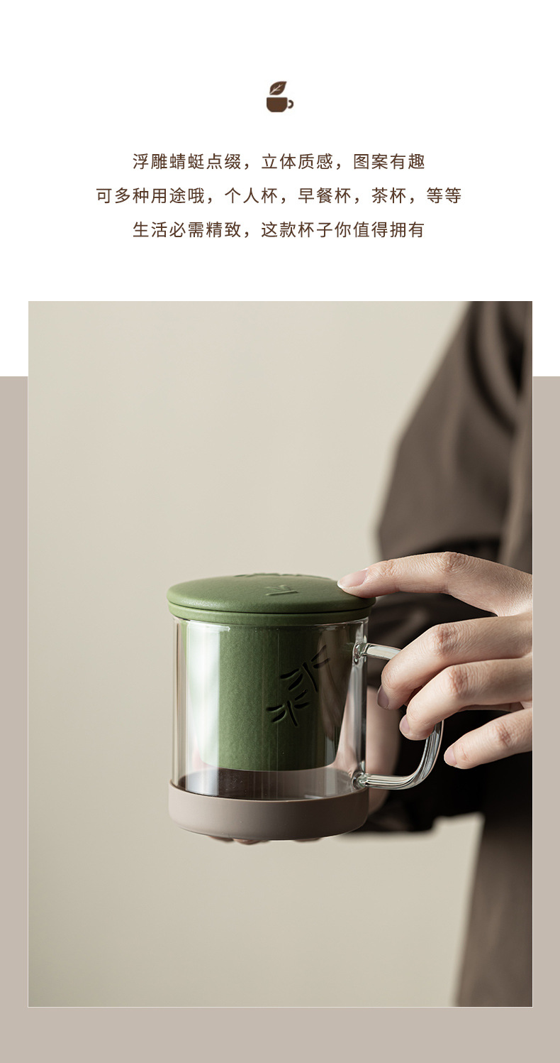 - Cốc văn phòng chuồn chuồn thủy tinh cốc văn phòng gia dụng sáng tạo cốc lọc tách trà cốc cá nhân cốc uống nước