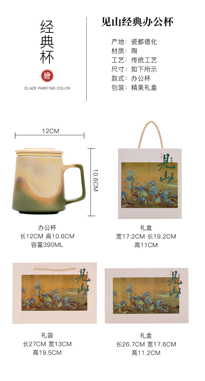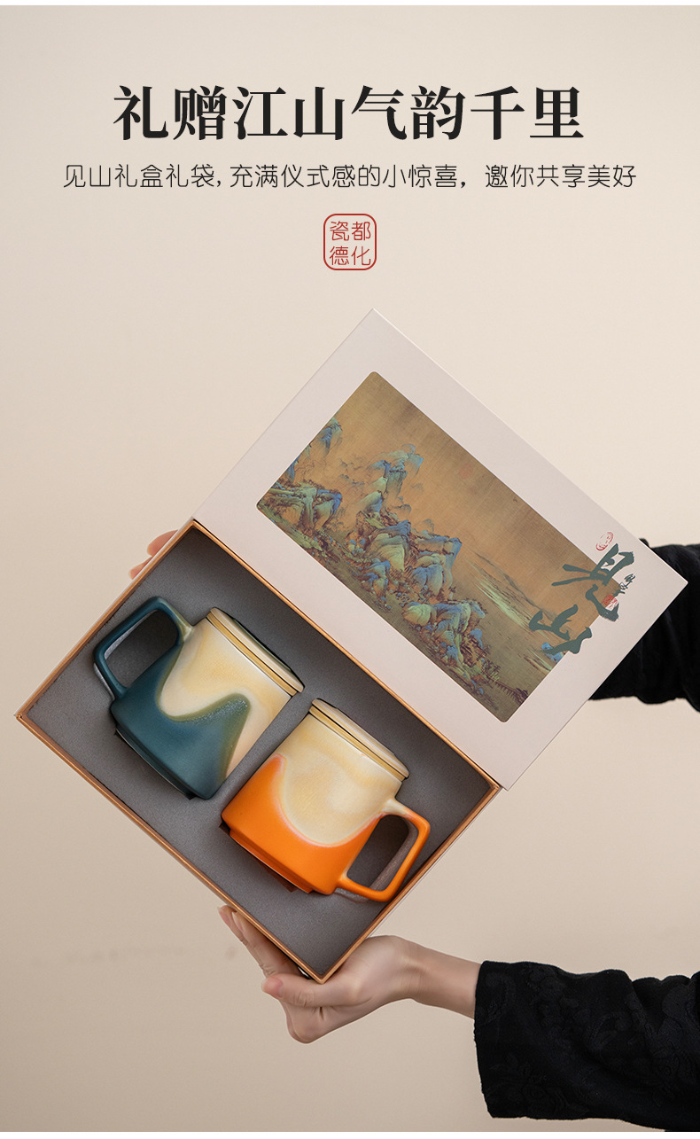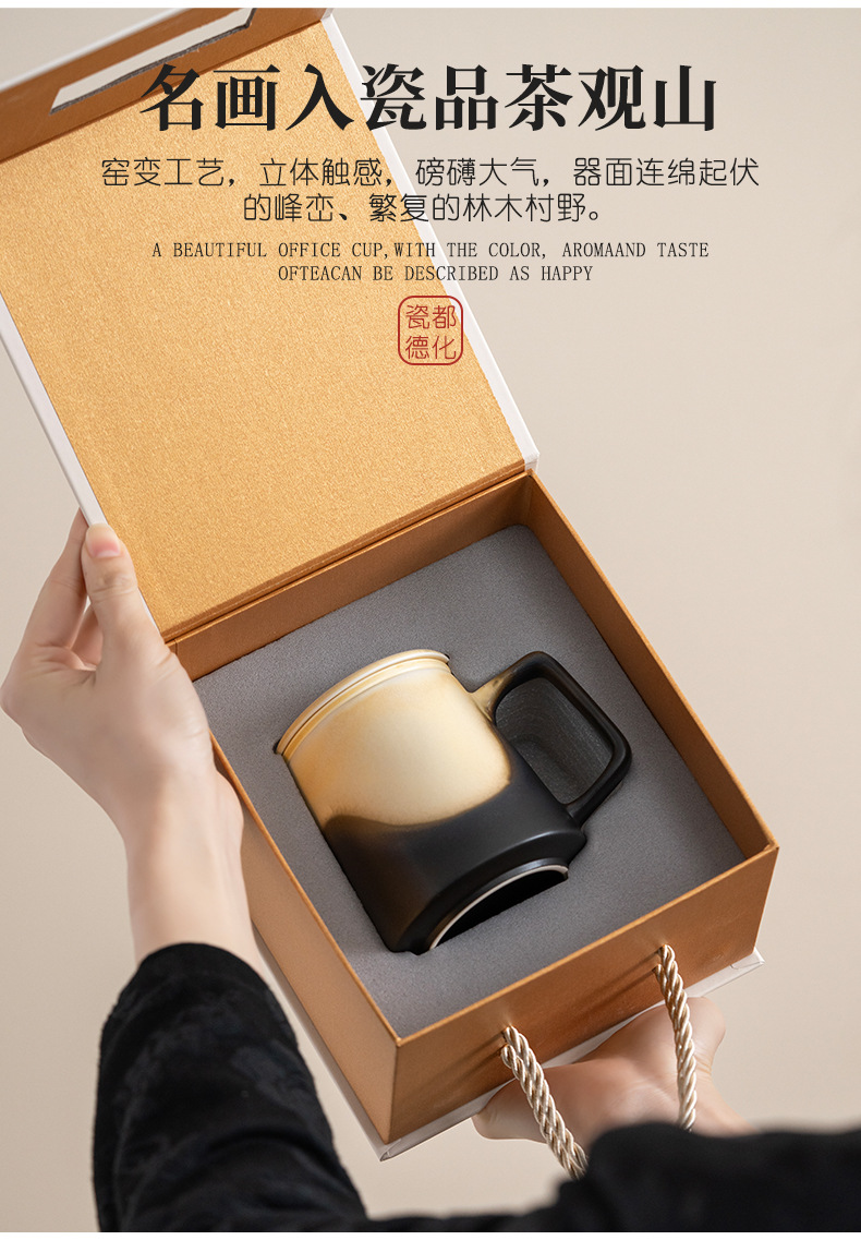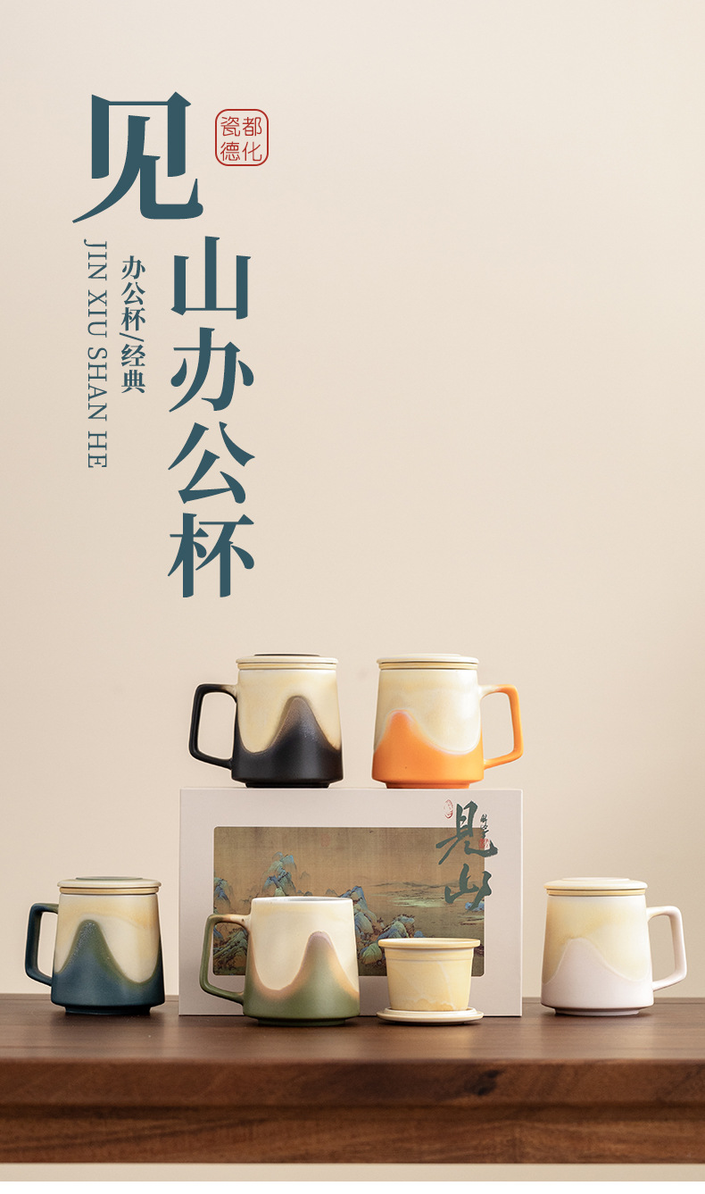 - Cốc văn phòng cổ điển Jianshan cốc đôi cốc gốm sứ cốc nước lọc văn phòng gia dụng cốc nước trà hộp quà