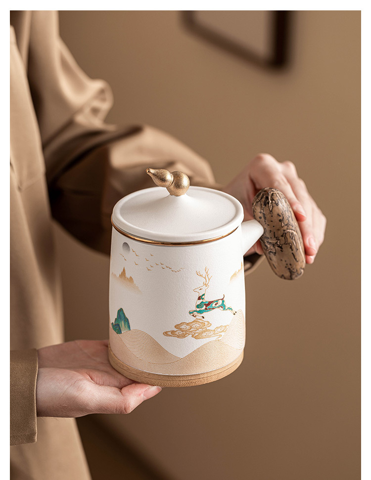 - Cốc văn phòng gốm sứ Yi Lu Xiang Sui cốc tách trà có nắp cốc chuyên dụng cá nhân có giá trị cao cốc nước cốc