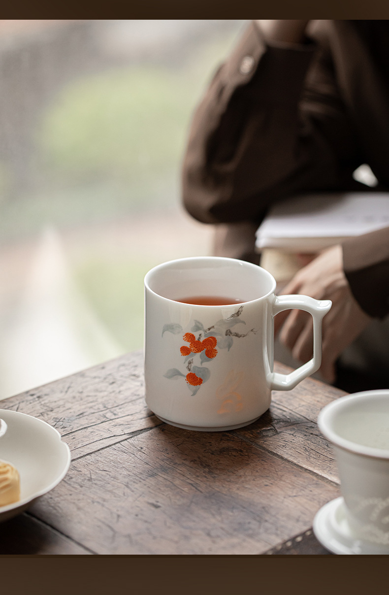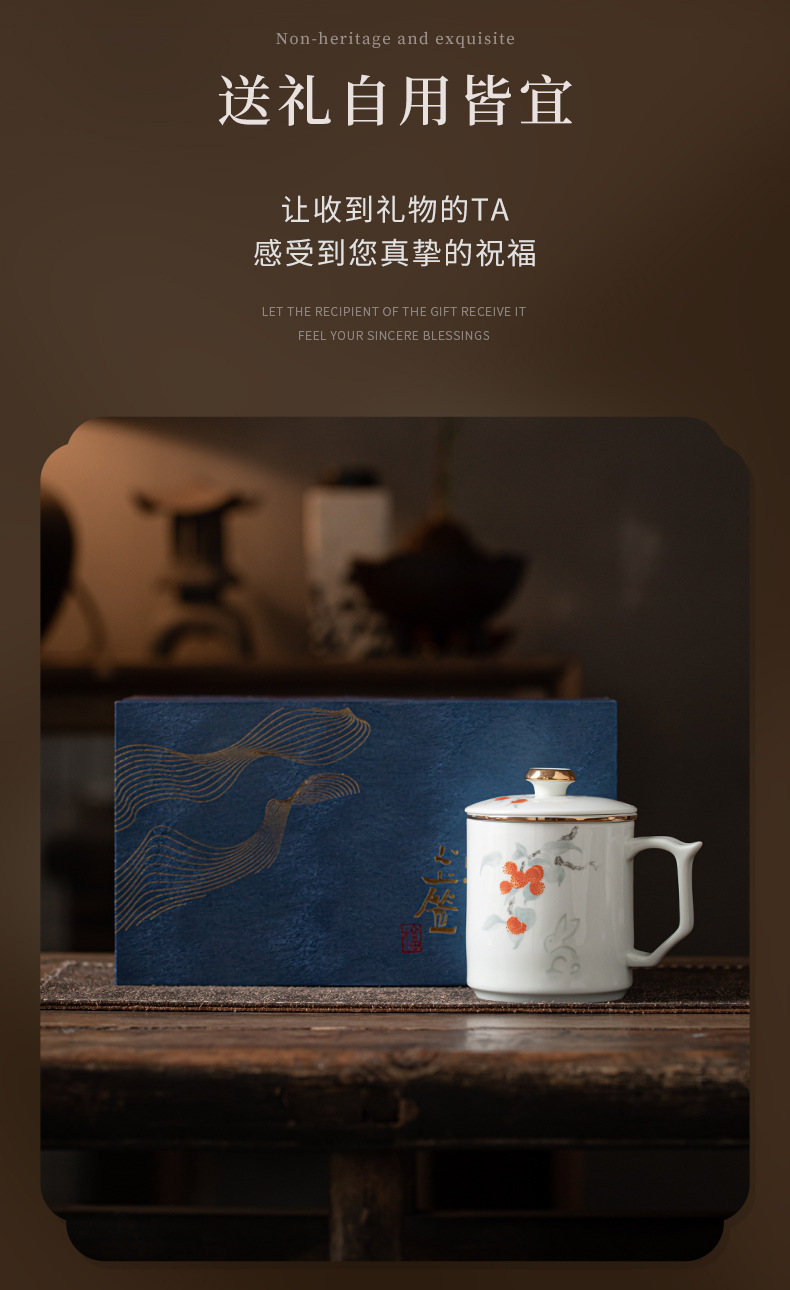 Cốc văn phòng Linglong cốc tách trà sứ trắng gia dụng cốc lọc có nắp cốc trà chuyên dụng cá nhân tặng quà