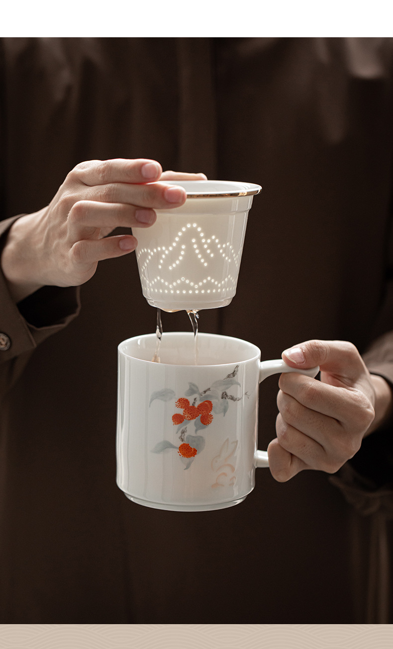 - Cốc văn phòng Linglong cốc tách trà sứ trắng gia dụng cốc lọc có nắp cốc trà chuyên dụng cá nhân tặng quà