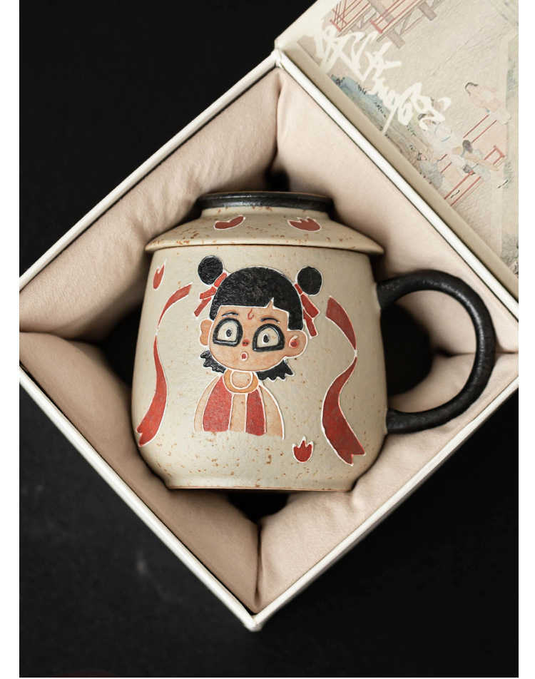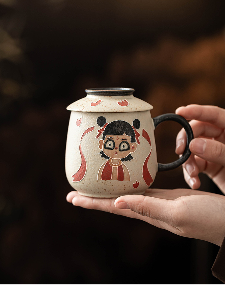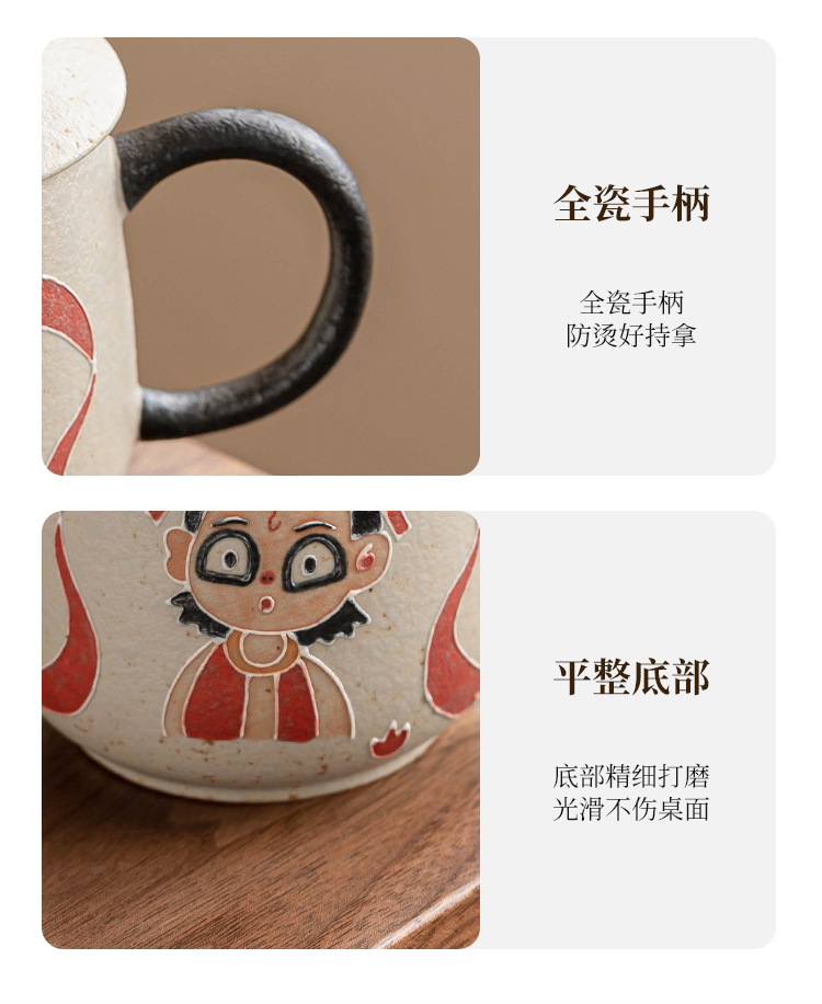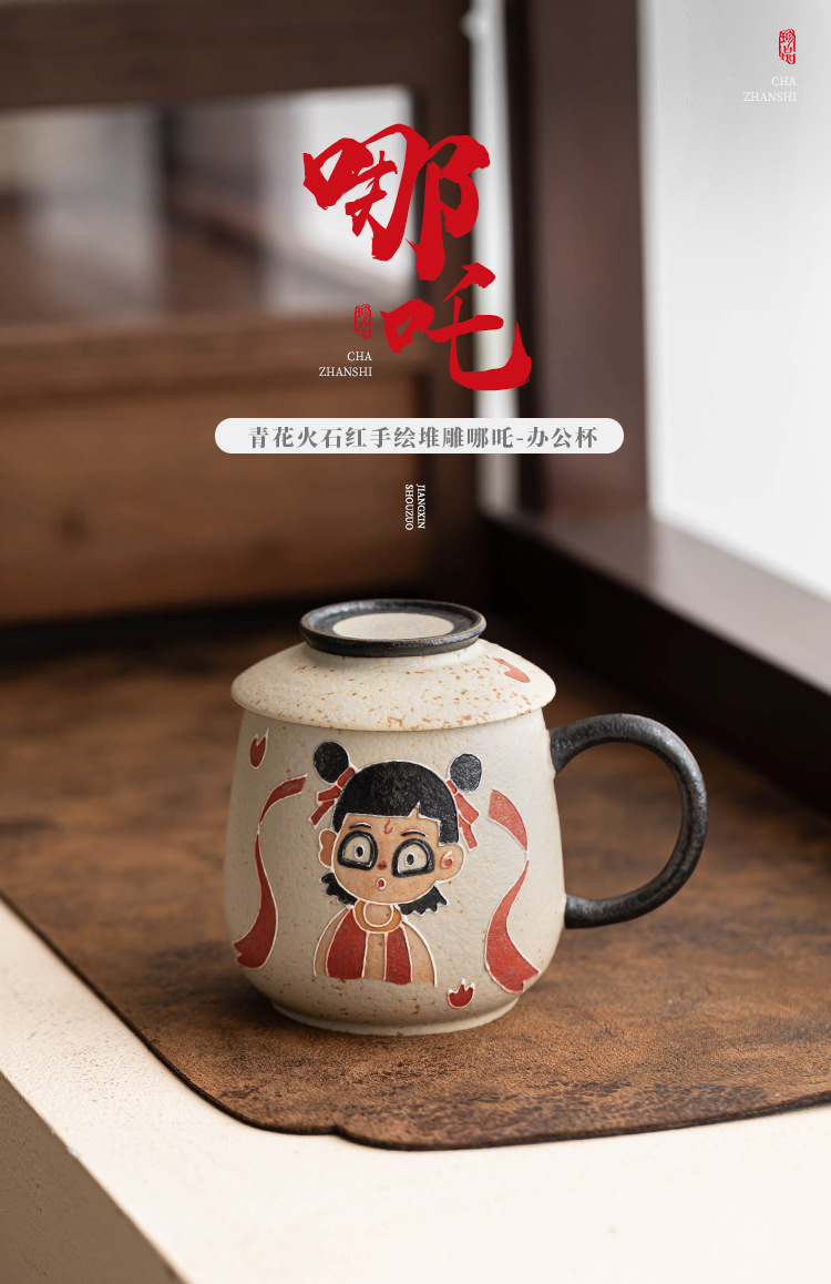 Cốc văn phòng Nezha đỏ đá lửa trắng xanh cốc chuyên dụng cá nhân cao cấp cốc pha trà gốm sứ cốc có nắp cốc nước