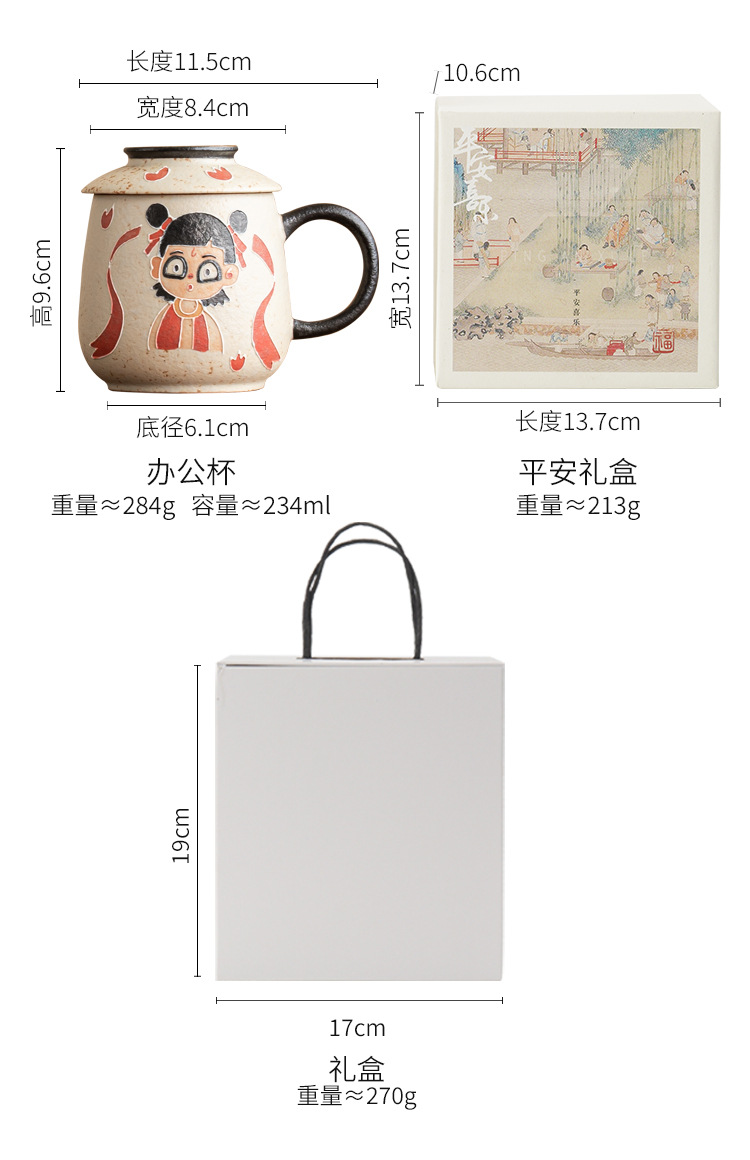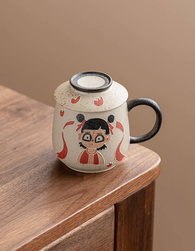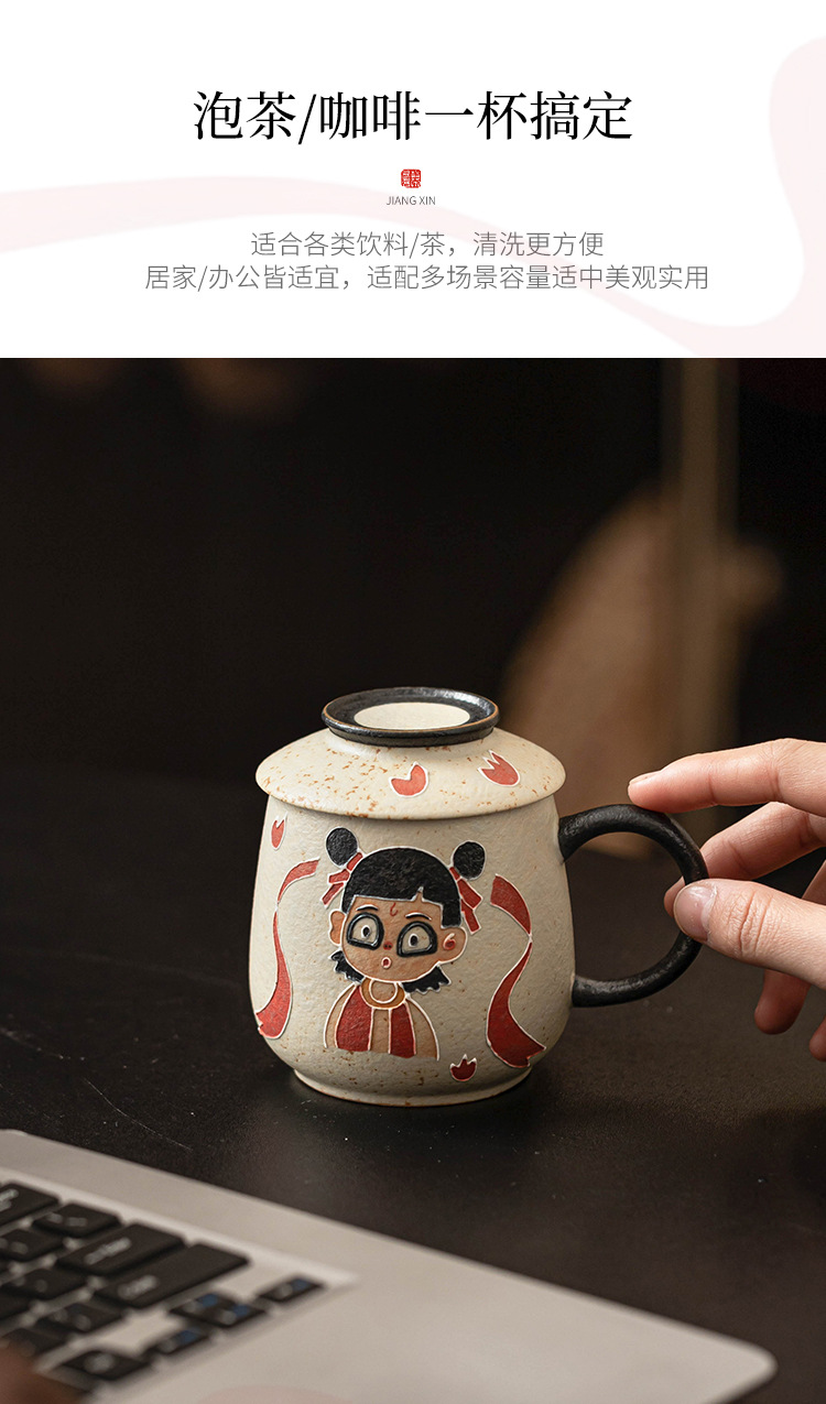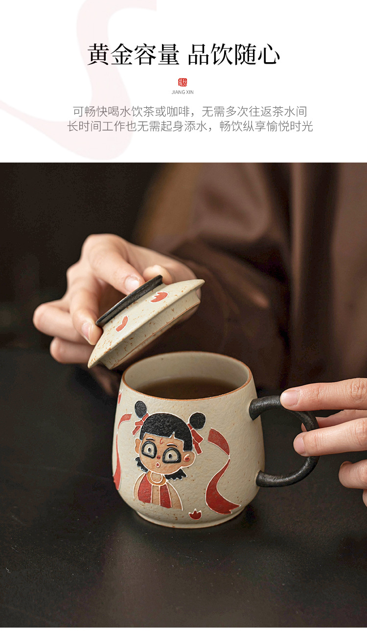 Cốc văn phòng Nezha đỏ đá lửa trắng xanh cốc chuyên dụng cá nhân cao cấp cốc pha trà gốm sứ cốc có nắp cốc nước