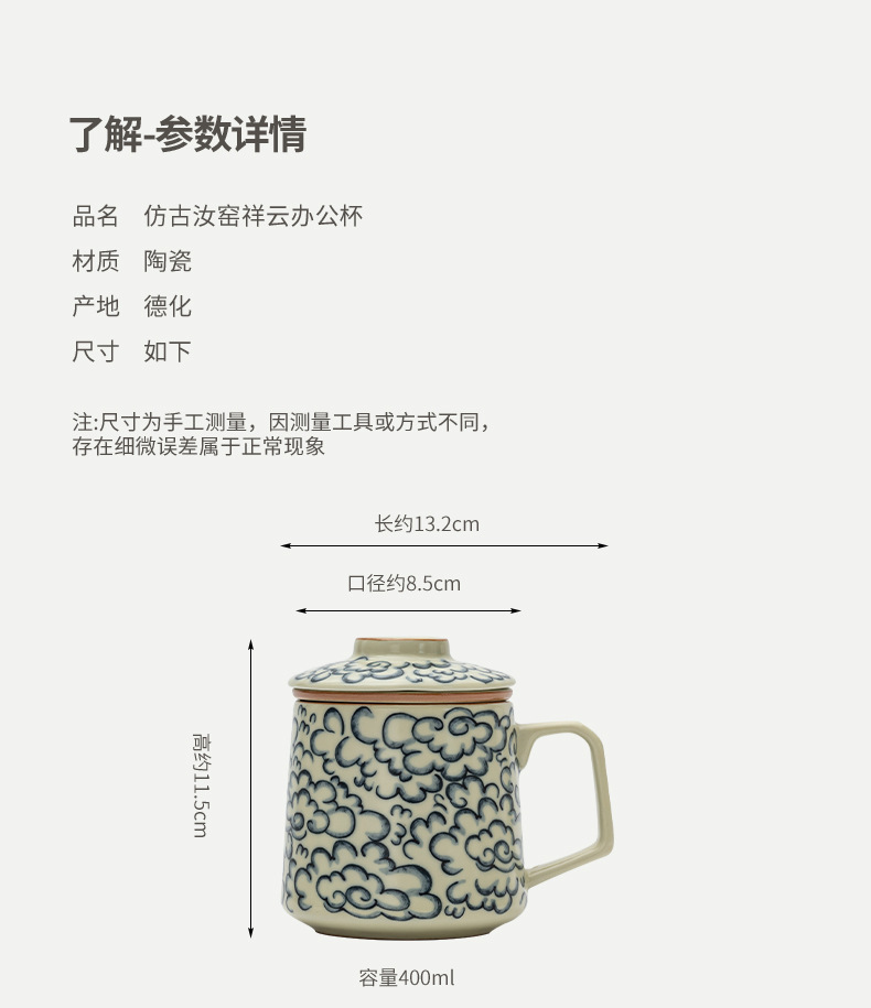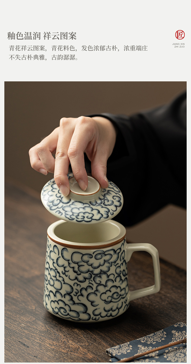 - Cốc văn phòng Ruyao Xiangyun Cốc gốm sứ gia dụng Cốc uống nước chuyên dụng cá nhân Cốc tách trà