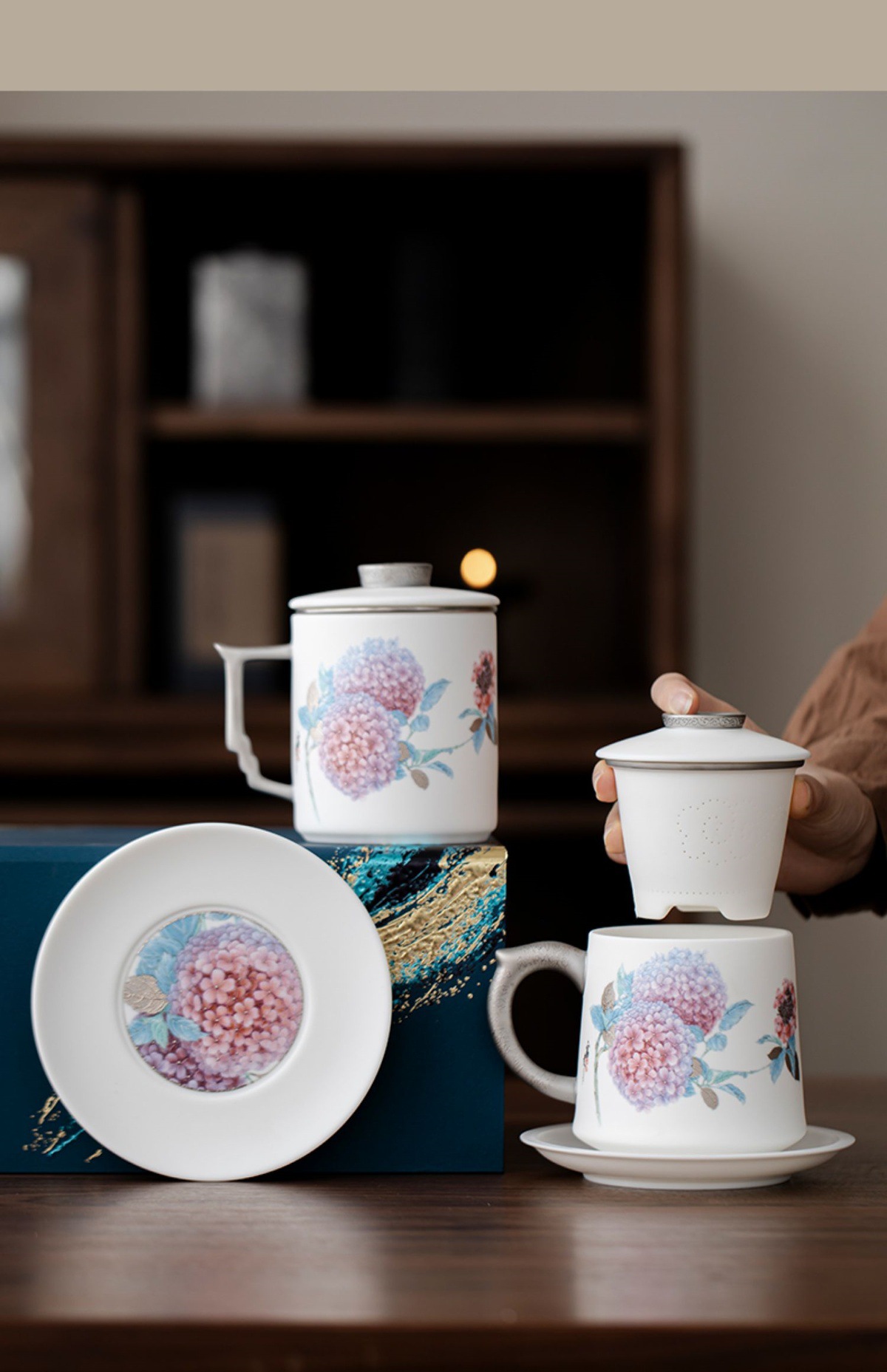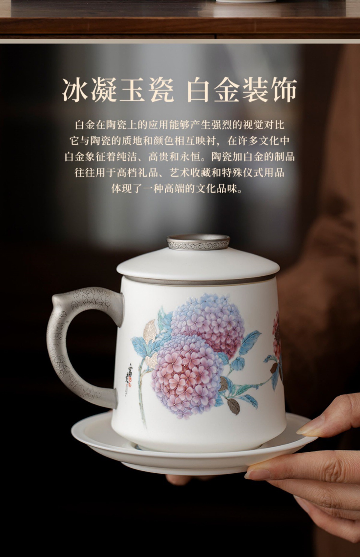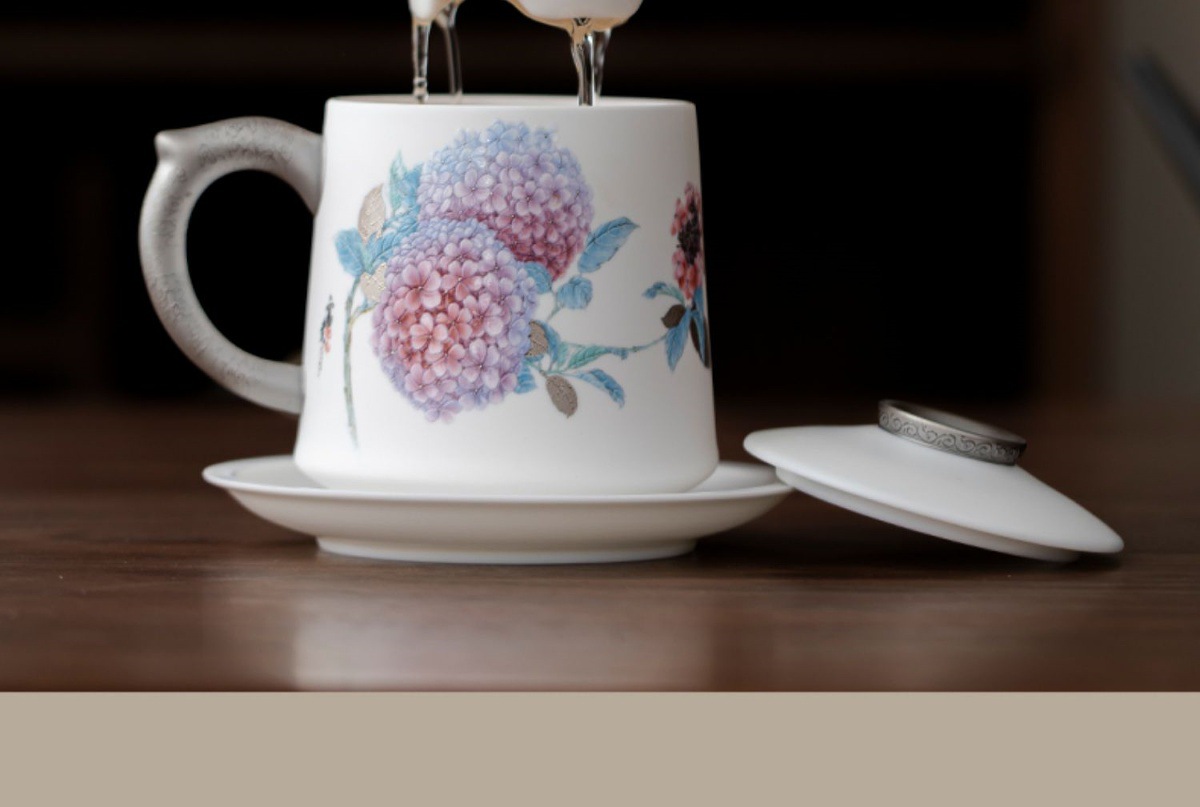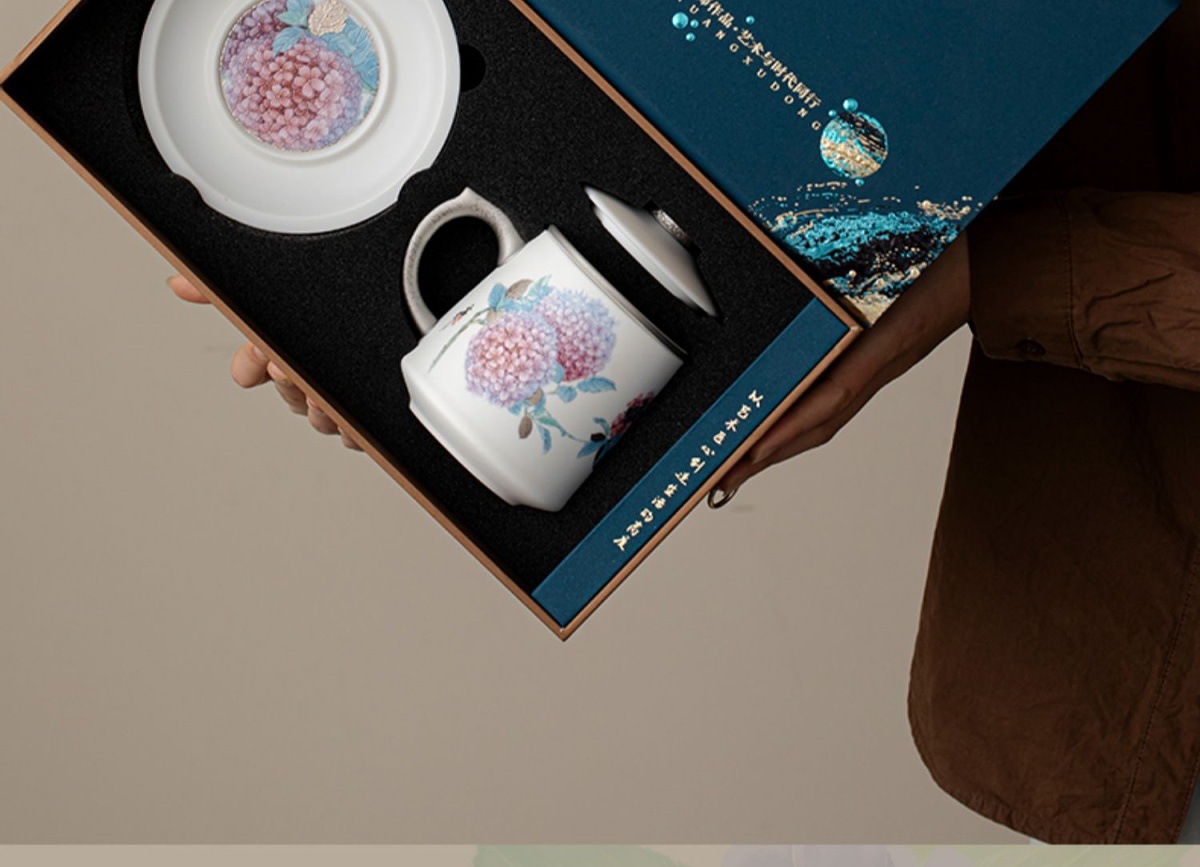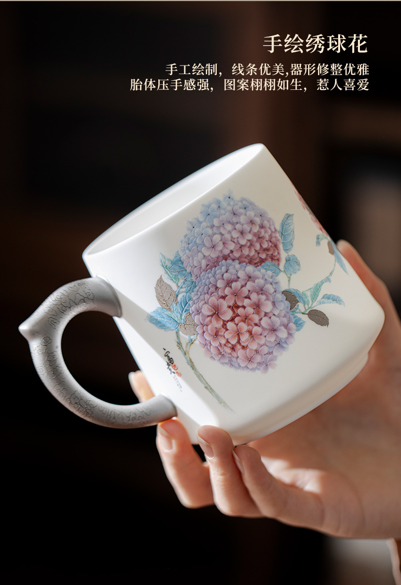 Cốc văn phòng sứ ngọc dương Dujingshanfang cốc pha trà nữ tách trà cao cấp sang trọng nhẹ quà tặng cao cấp
