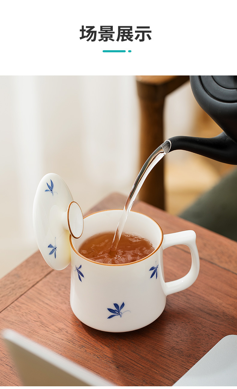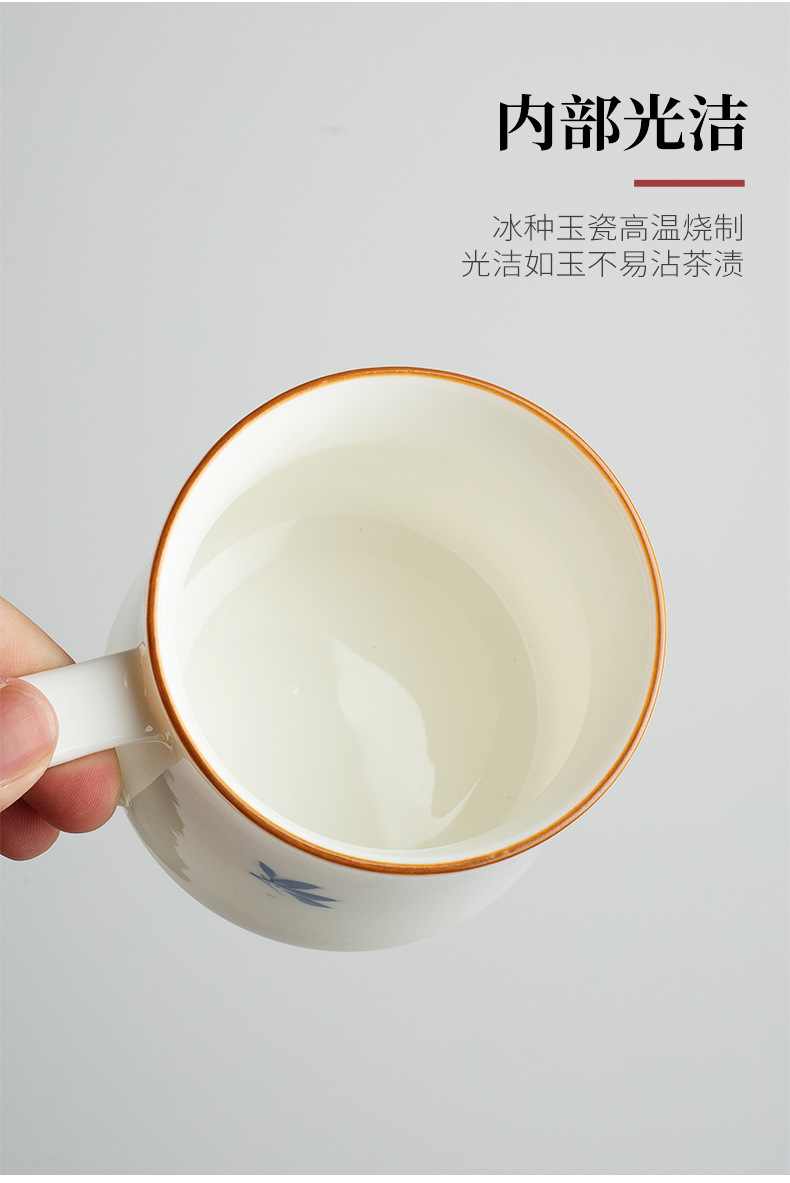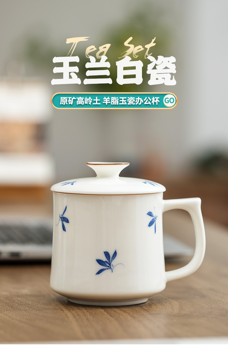 Cốc văn phòng sứ trắng mộc lan vẽ tay cốc nước cá nhân văn phòng gia dụng cốc trà cốc gốm sứ giá trị cao
