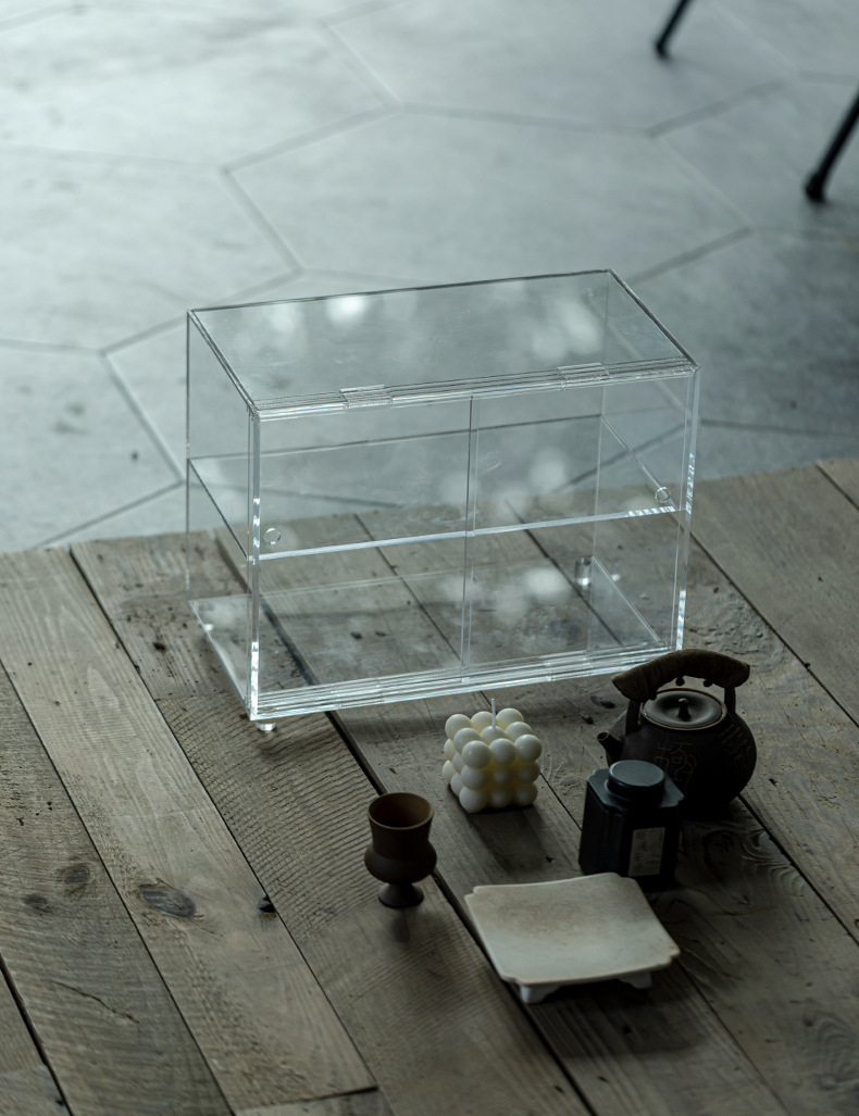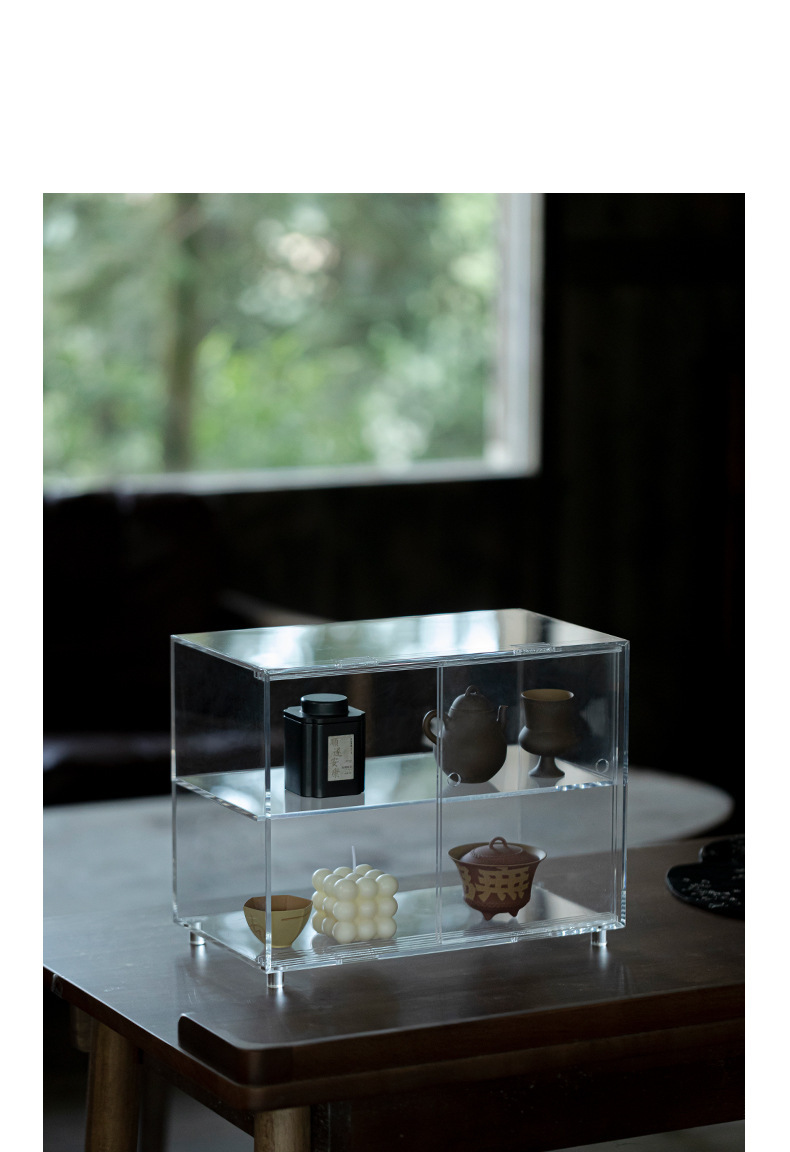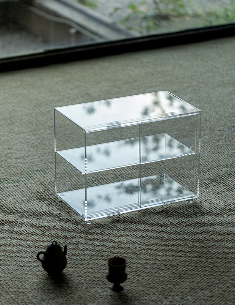 Cửa trượt acrylic khay trà bộ trà lưu trữ trưng bày kệ Bogu giá để đồ trong nhà chống bụi
