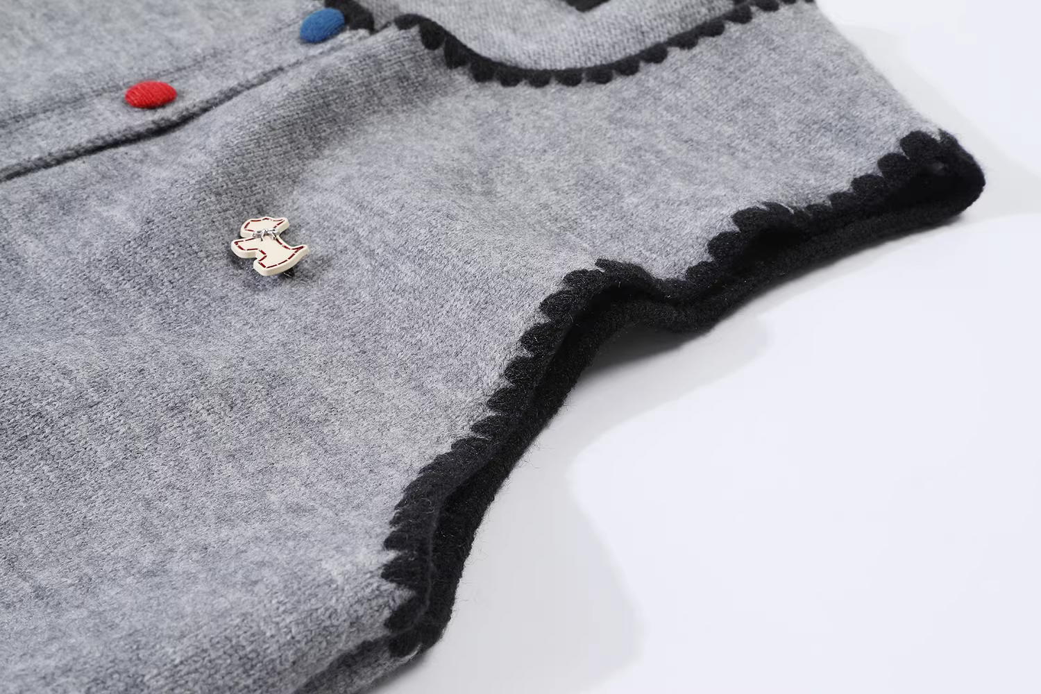 CuteGirl thiết kế độc đáo bộ đồ đẹp cho nữ mùa thu áo vest dệt kim màu xám áo sơ mi dài tay thanh lịch bộ hai món