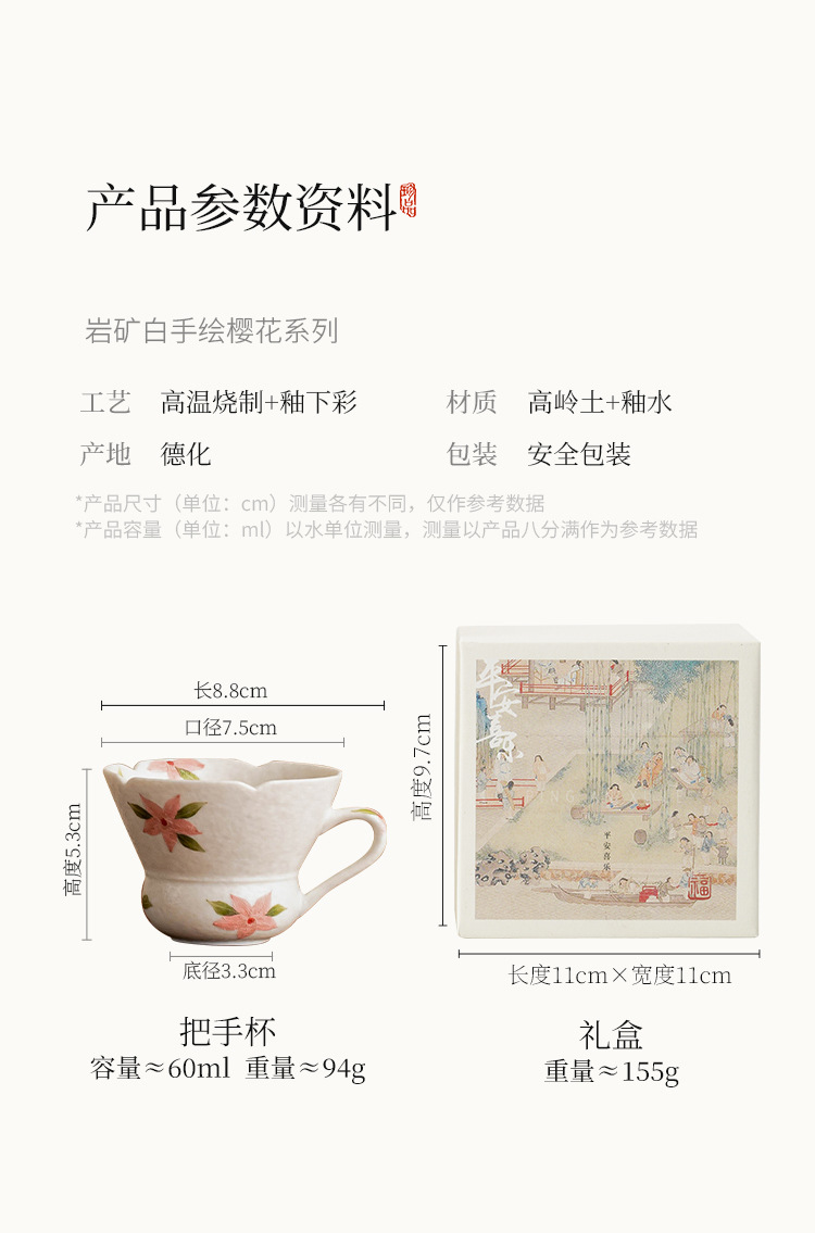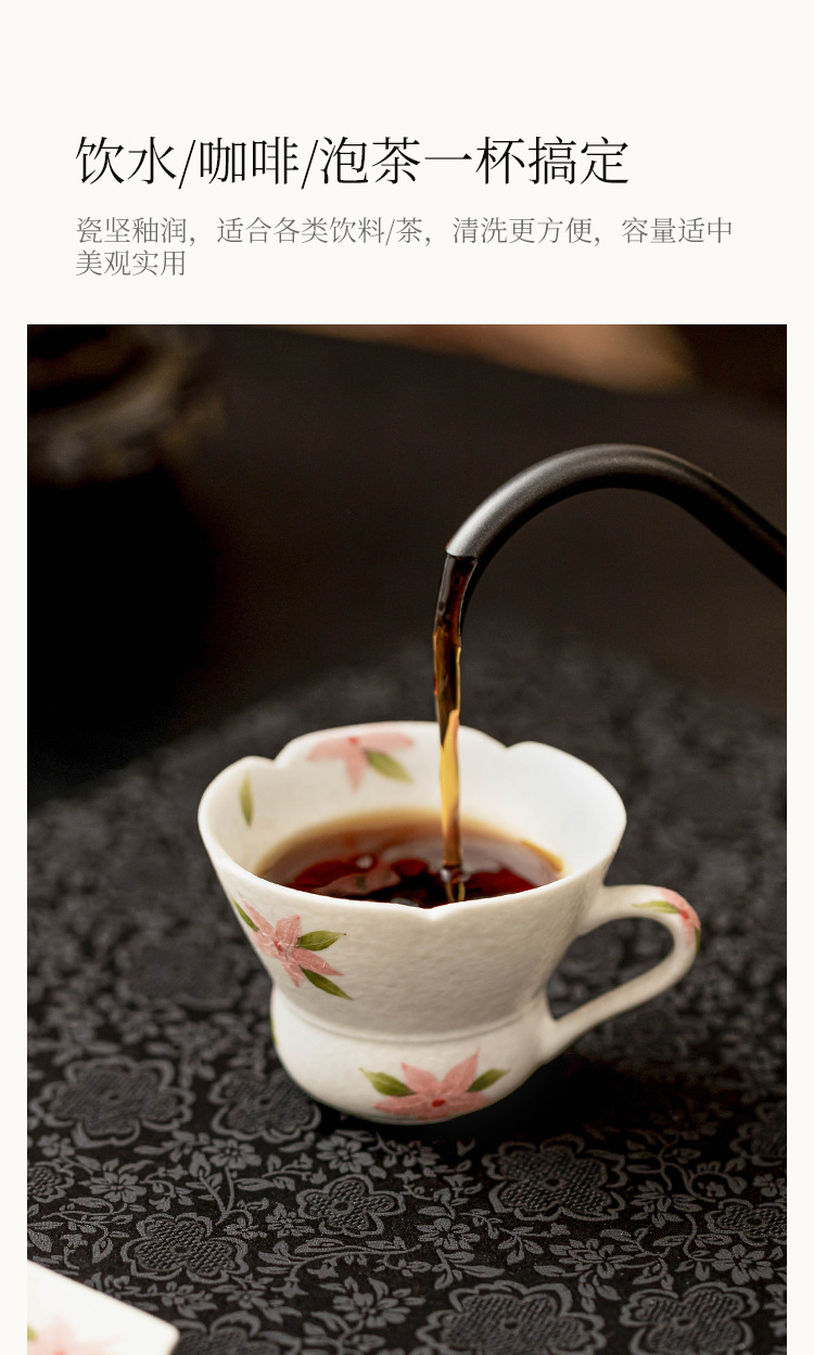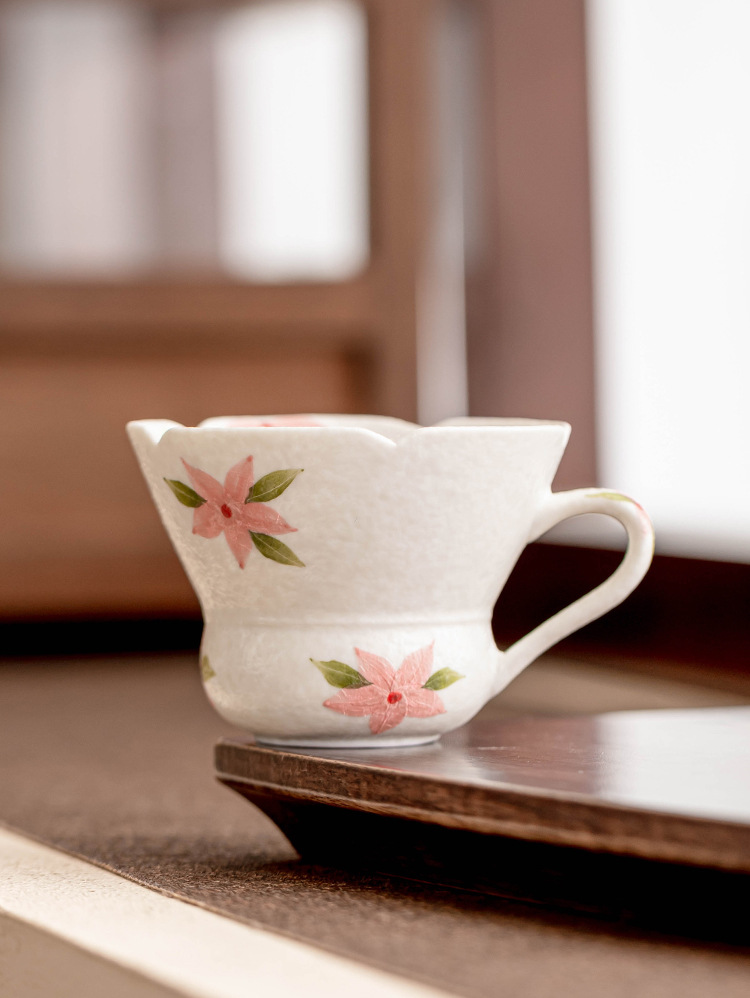 - Đá khoáng trắng cốc trà chủ cốc cốc đơn vẽ tay hoa anh đào cốc gốm hộ gia đình cốc uống nước sáng tạo tinh tế cốc cà phê