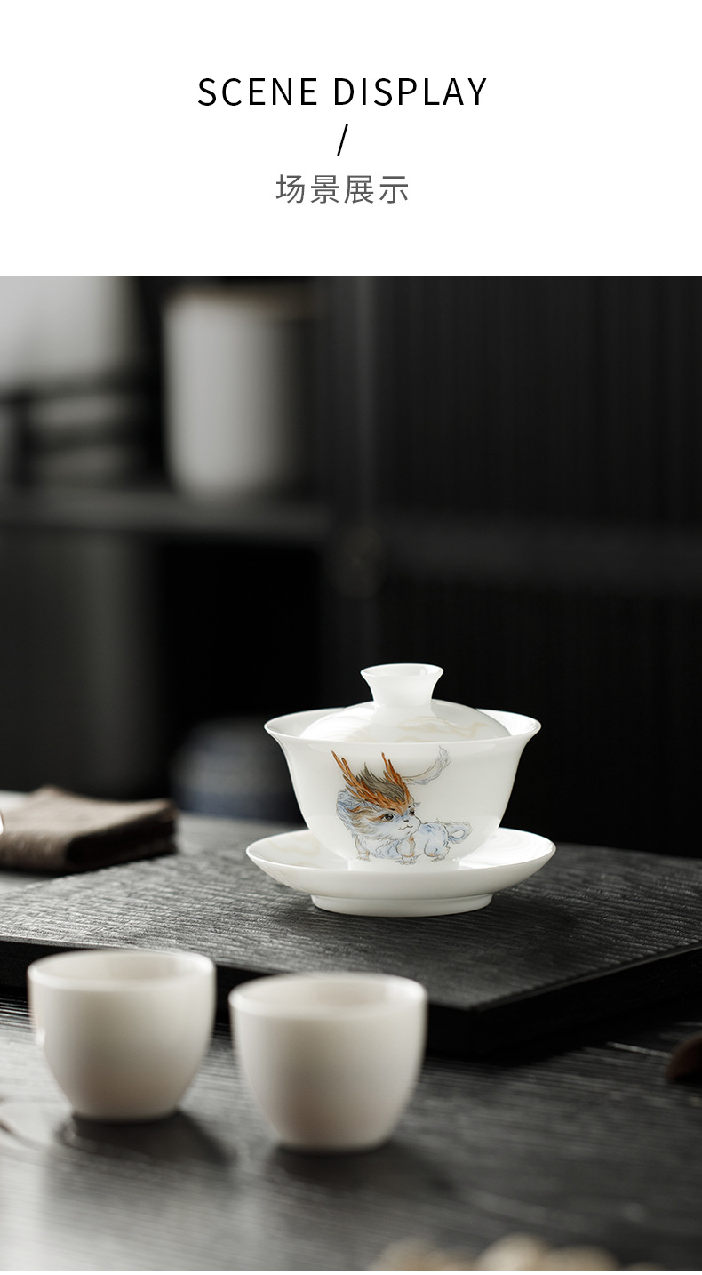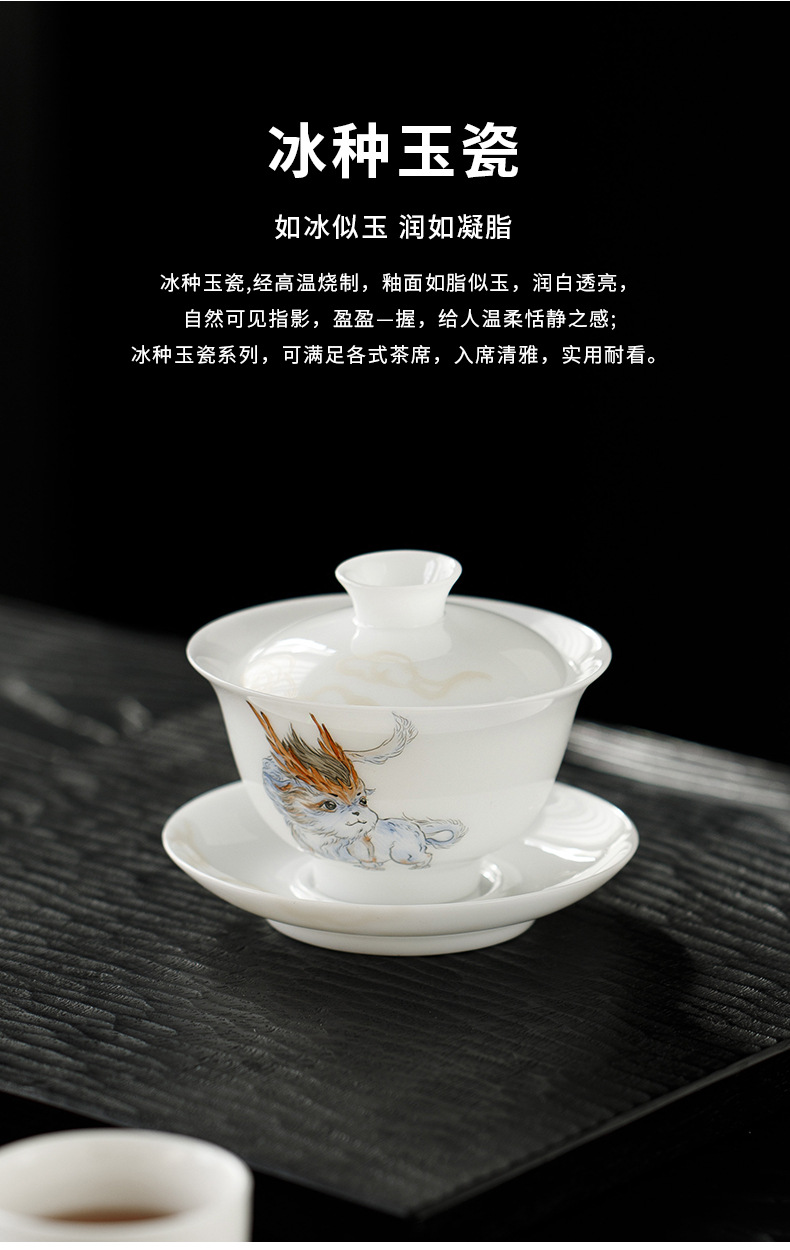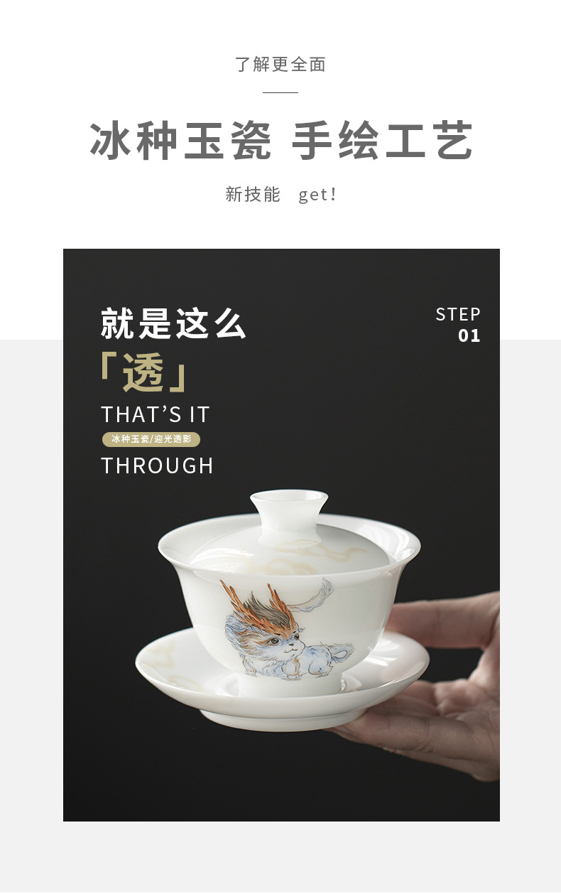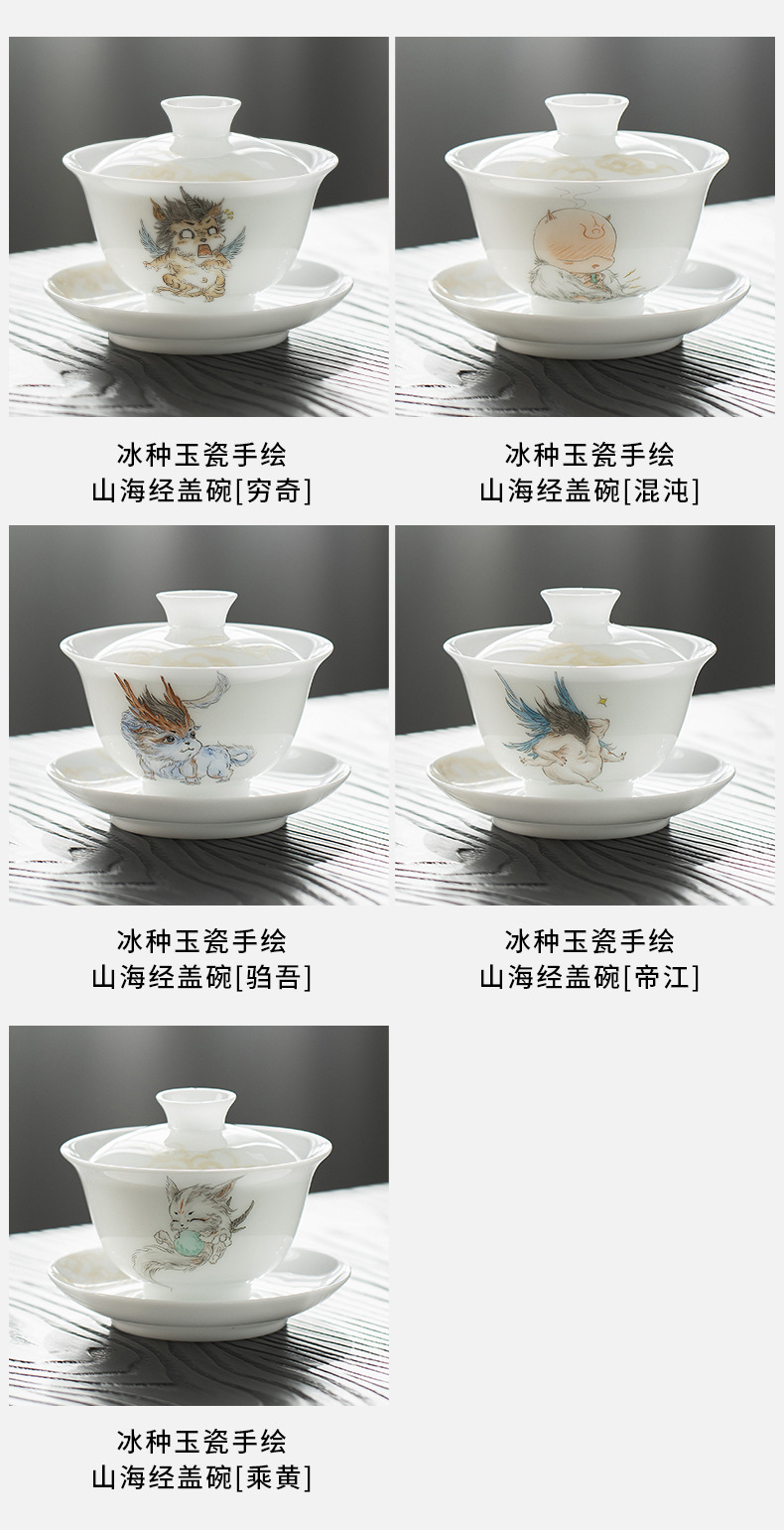 Đá loại ngọc sứ vẽ tay Sơn Hải Kinh Tam tài có nắp bát trà bát trà lớn gia dụng không nóng bát trà cốc trà