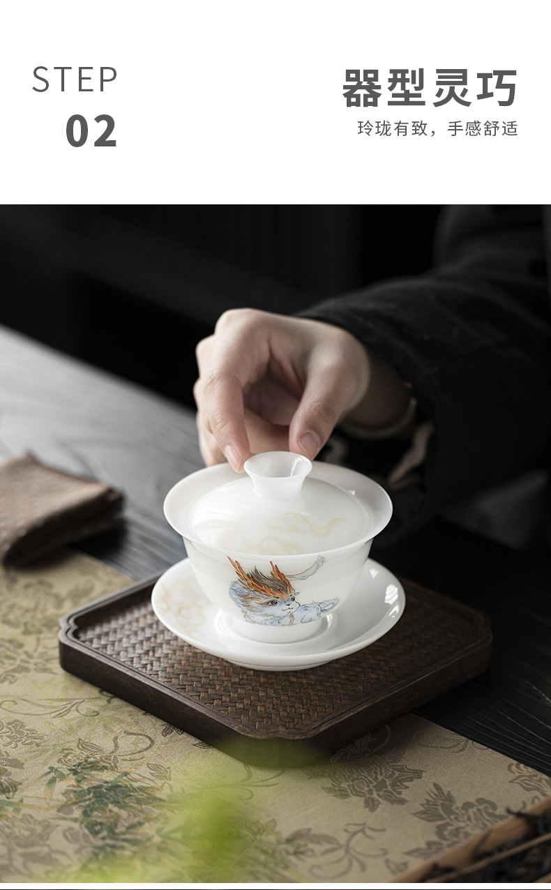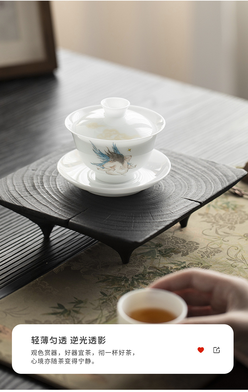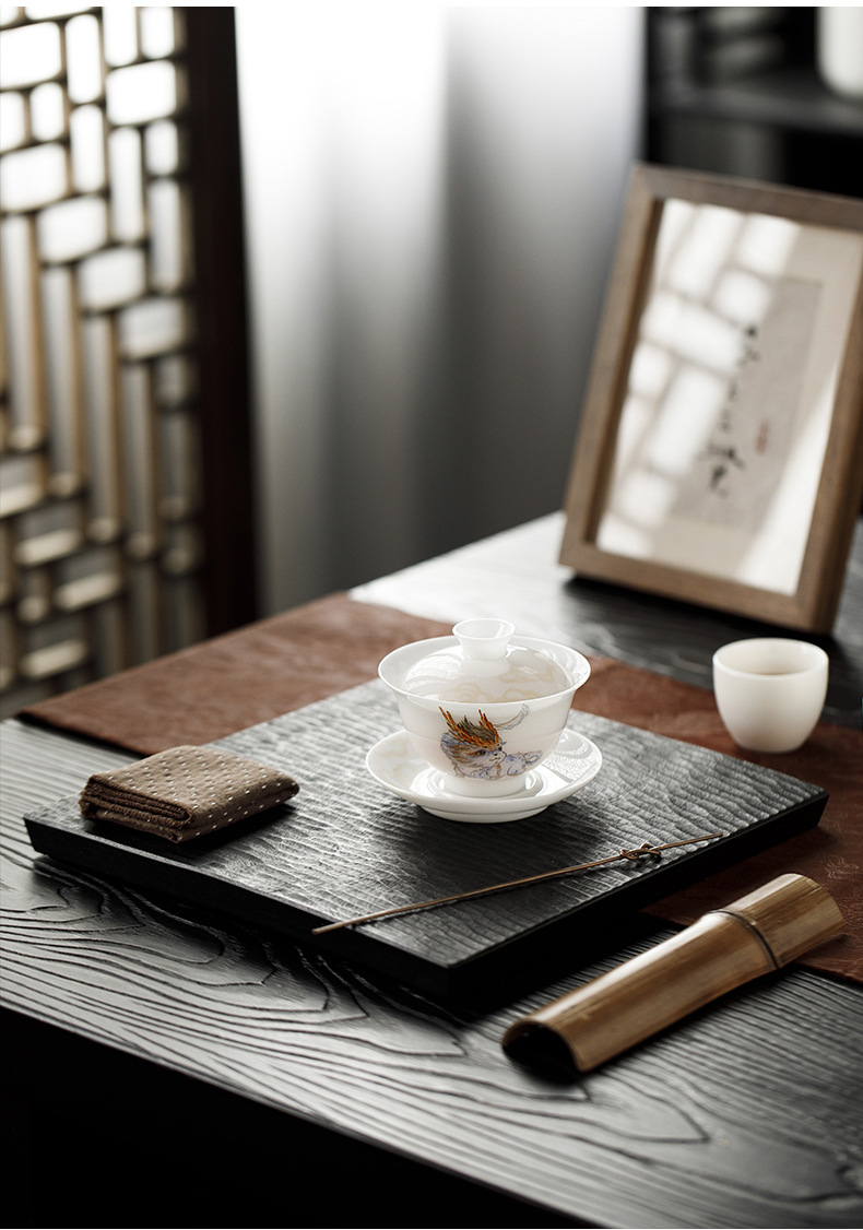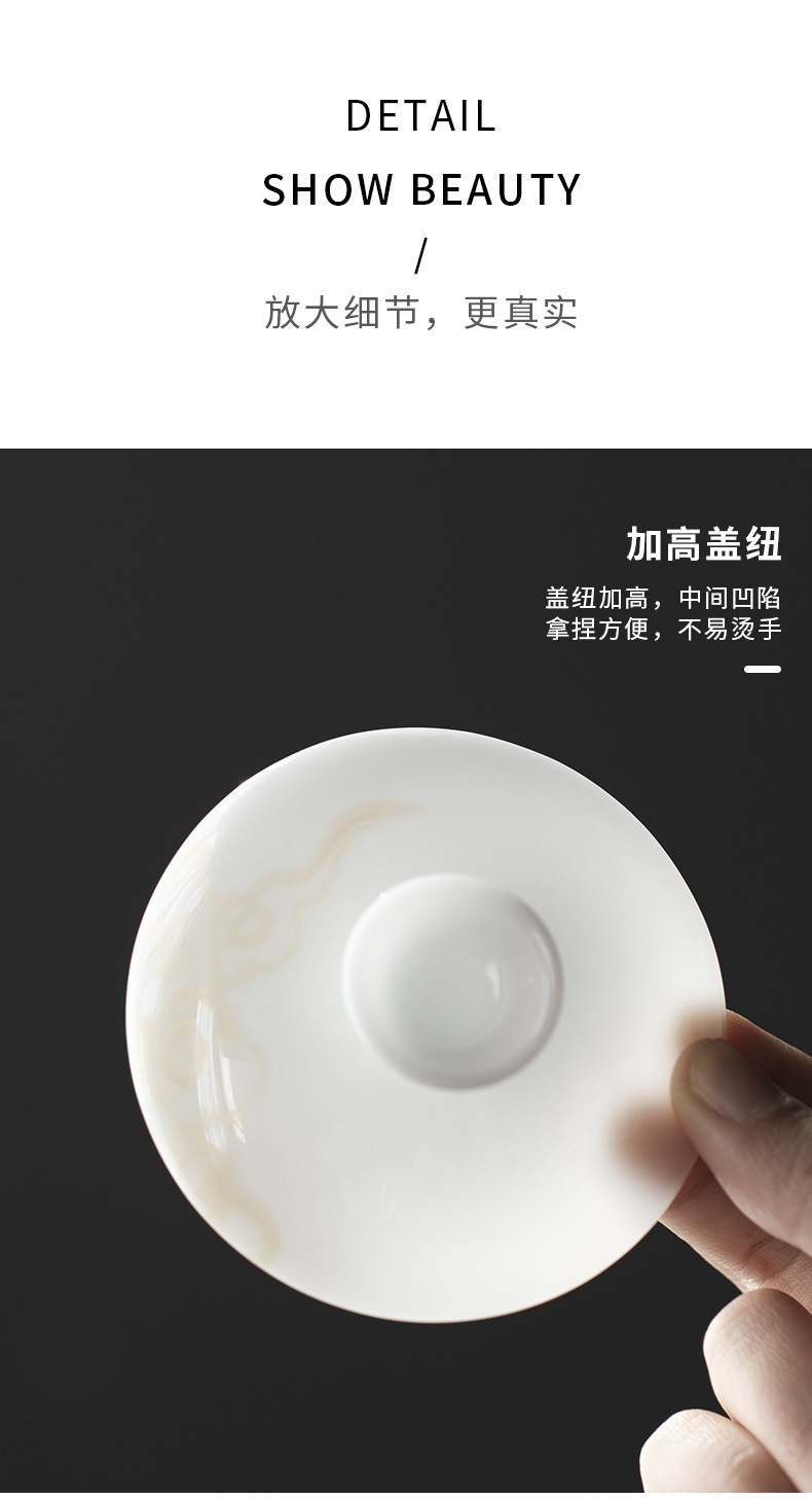 Đá loại ngọc sứ vẽ tay Sơn Hải Kinh Tam tài có nắp bát trà bát trà lớn gia dụng không nóng bát trà cốc trà