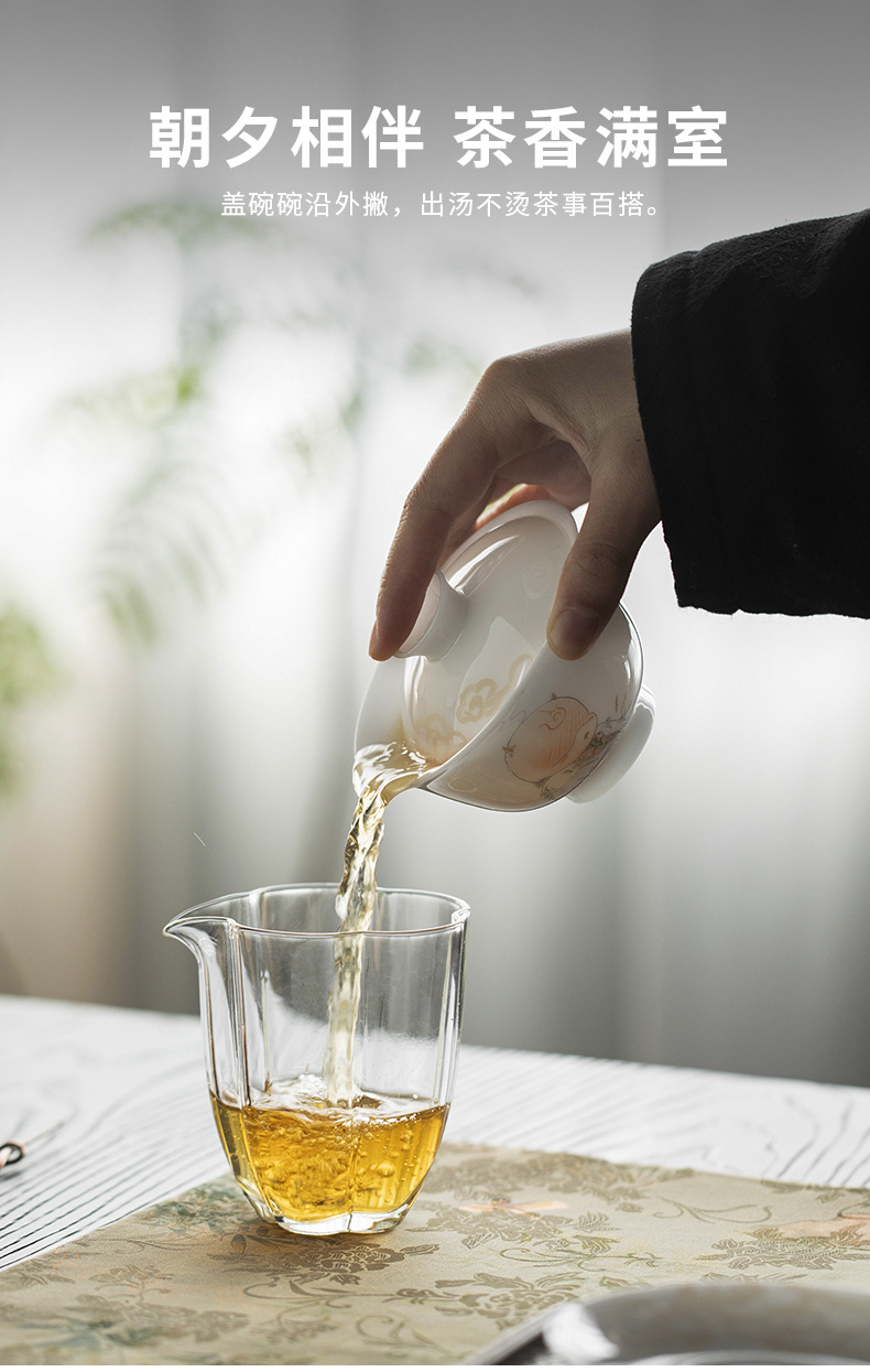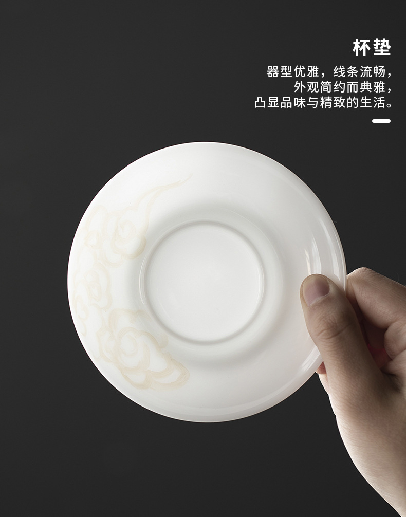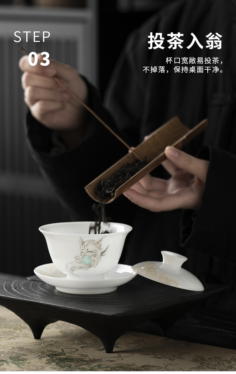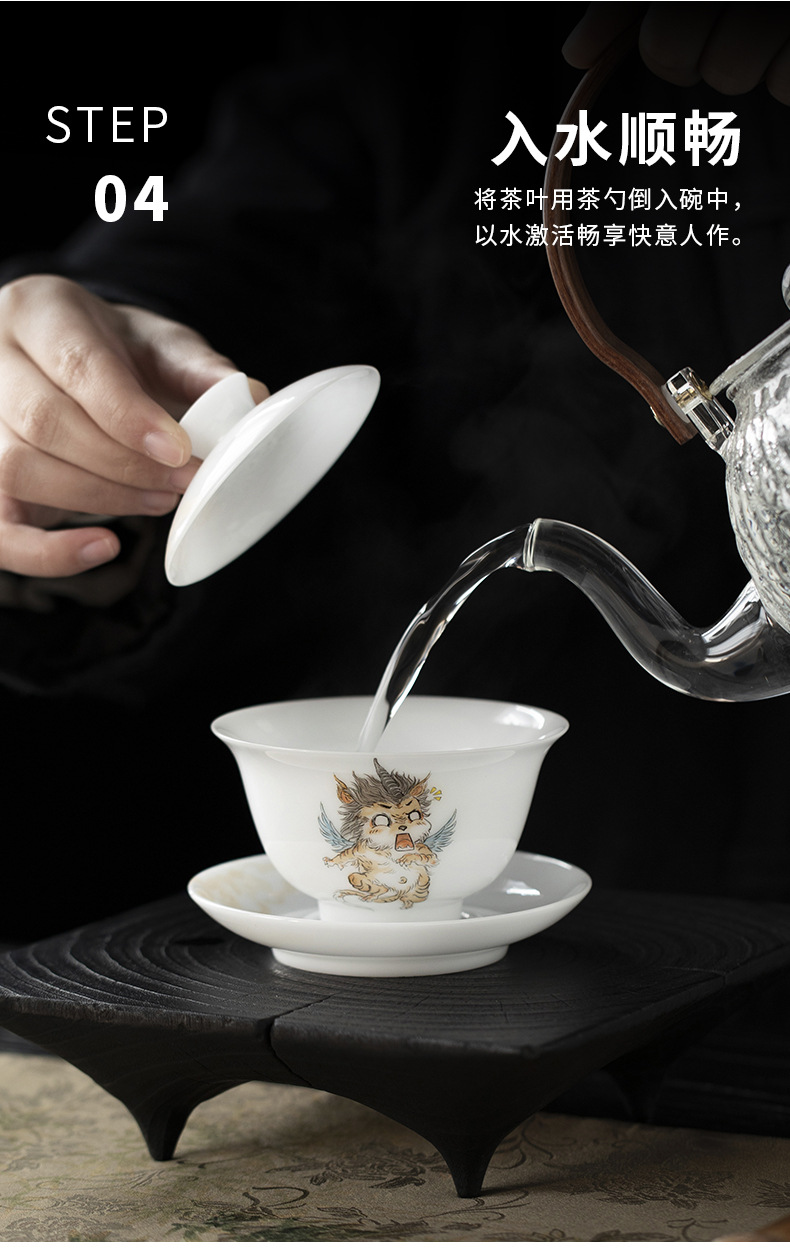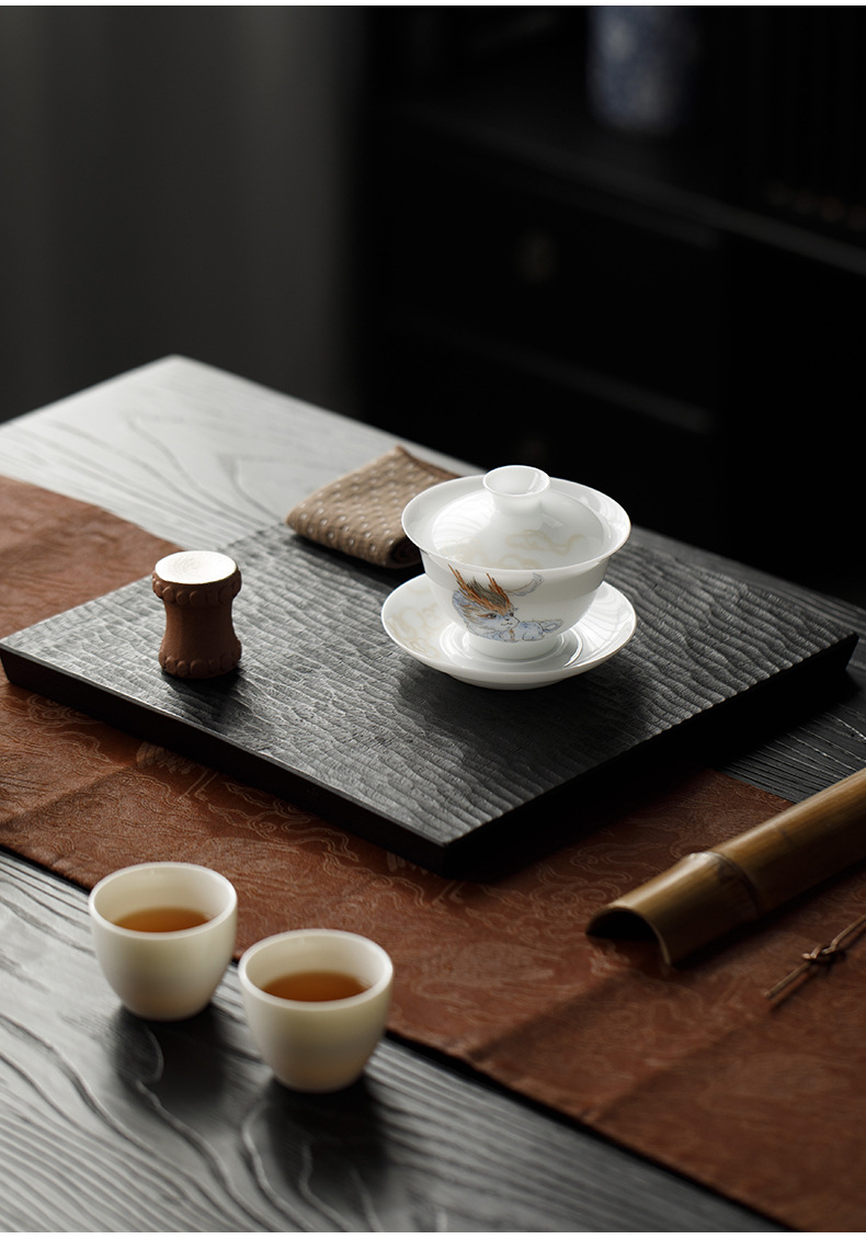 Đá loại ngọc sứ vẽ tay Sơn Hải Kinh Tam tài có nắp bát trà bát trà lớn gia dụng không nóng bát trà cốc trà