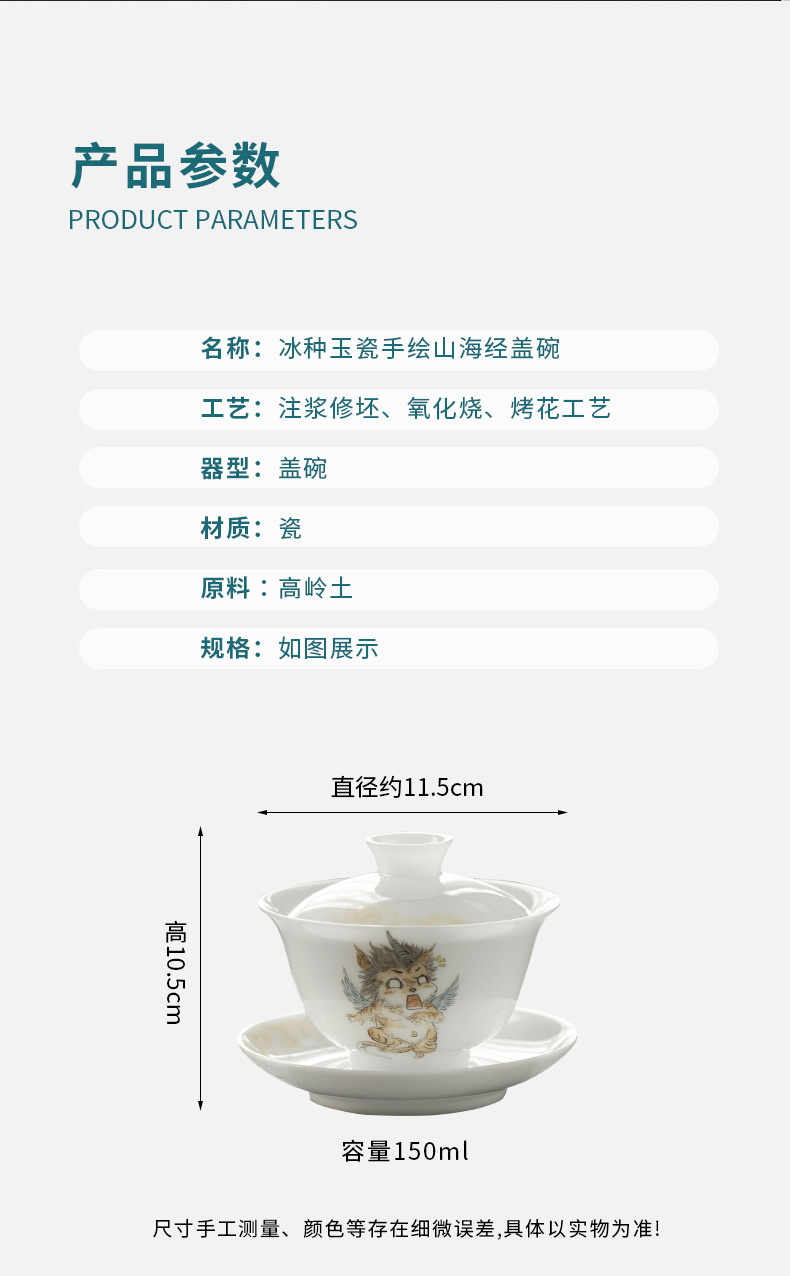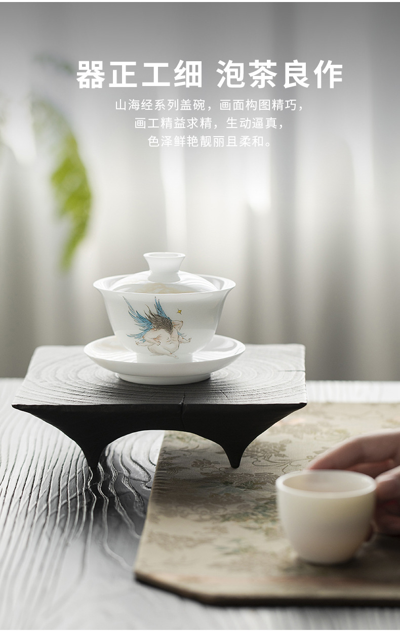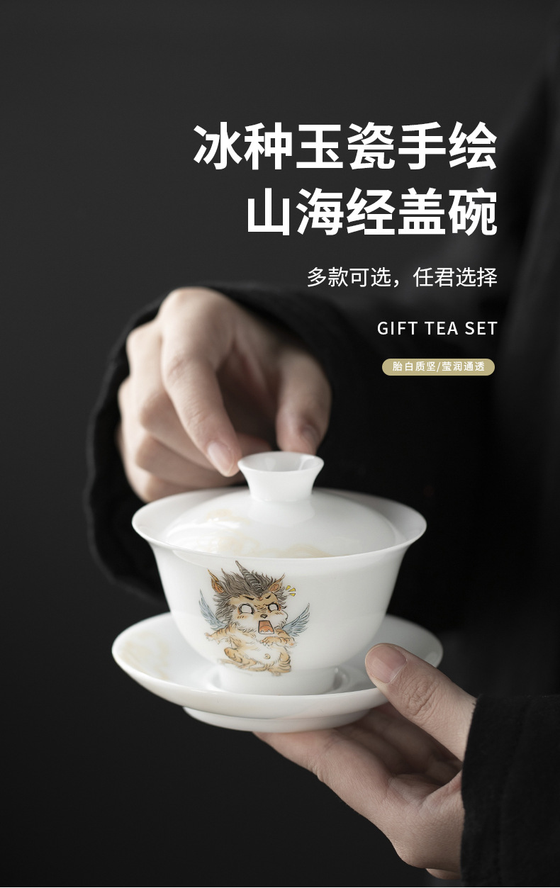 - Đá loại ngọc sứ vẽ tay Sơn Hải Kinh Tam tài có nắp bát trà bát trà lớn gia dụng không nóng bát trà cốc trà