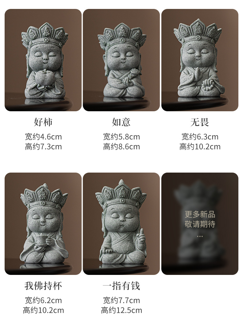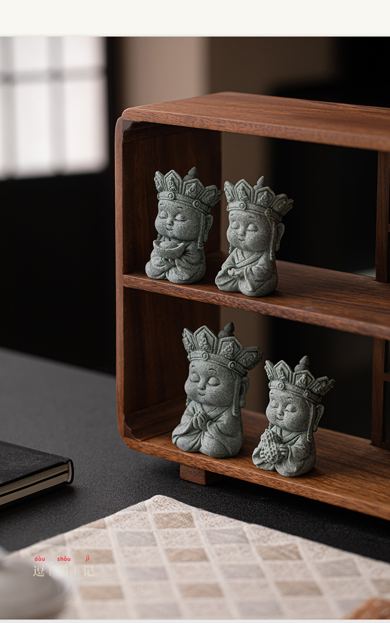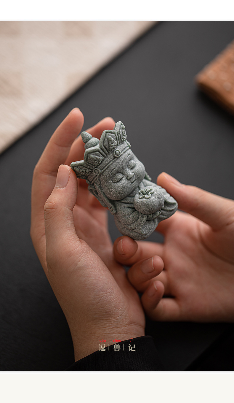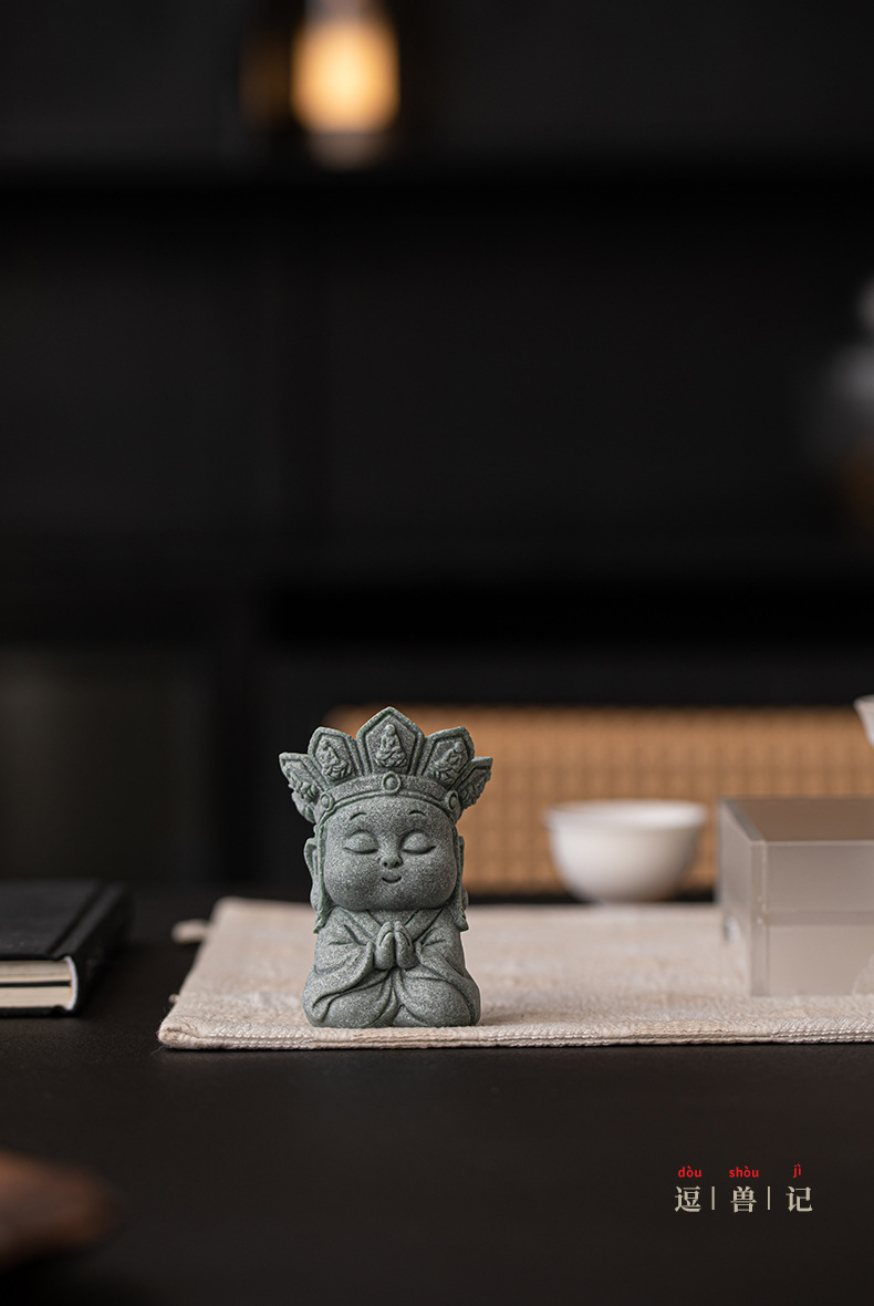 Đá sa thạch xanh im lặng Phật trà thú cưng đồ trang trí để bàn trang trí Thiền Trung Quốc phụ kiện trang trí nội thất thủ công bộ trà phụ kiện