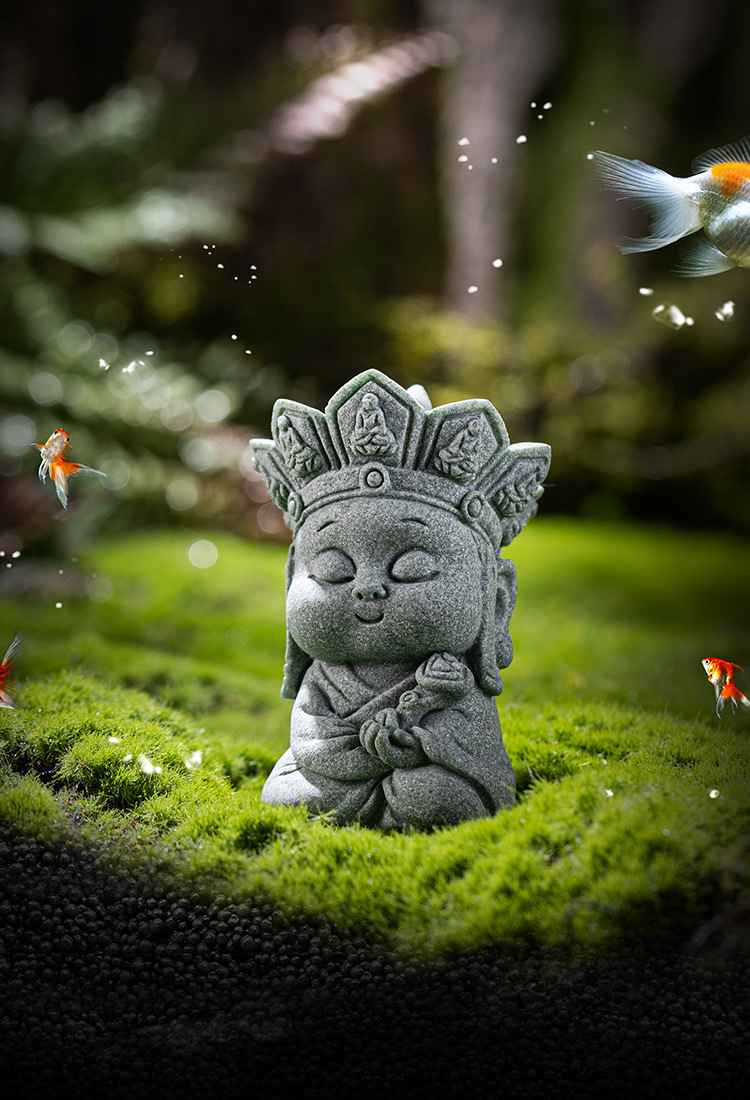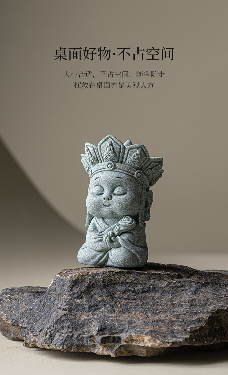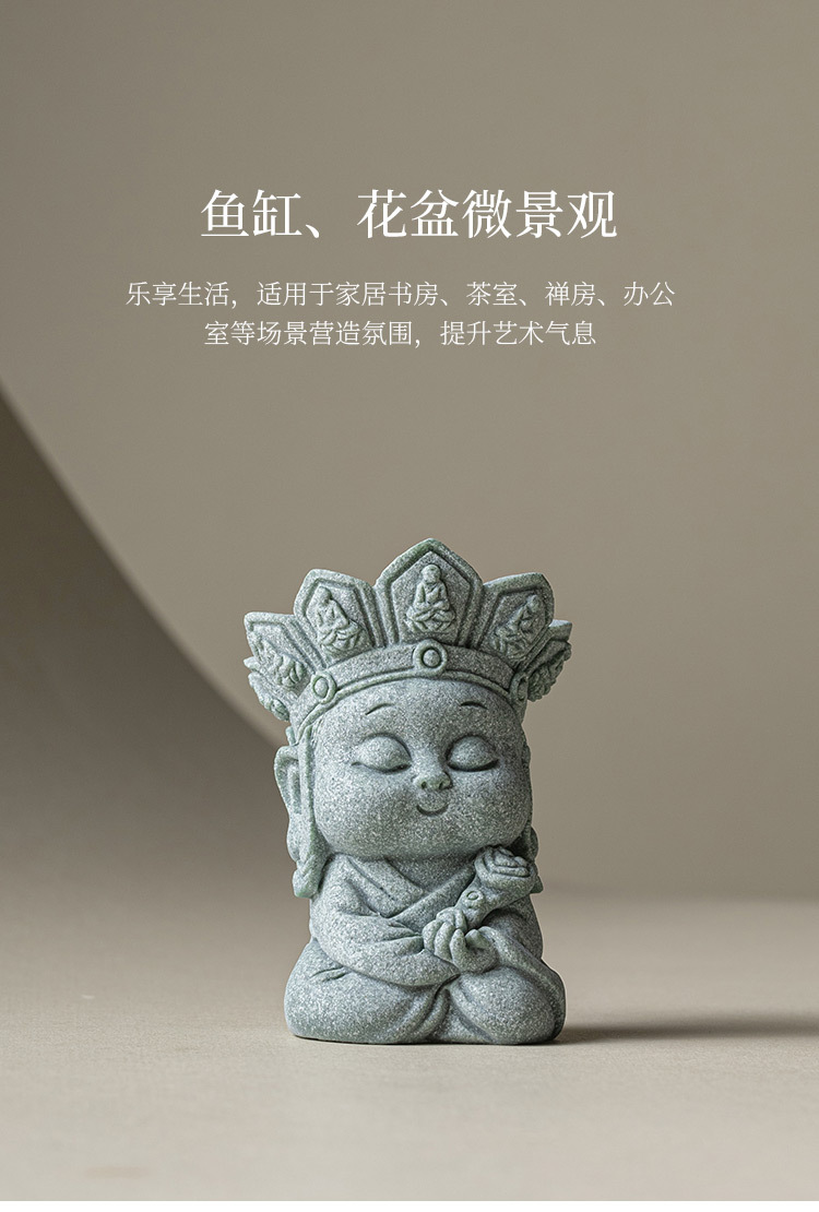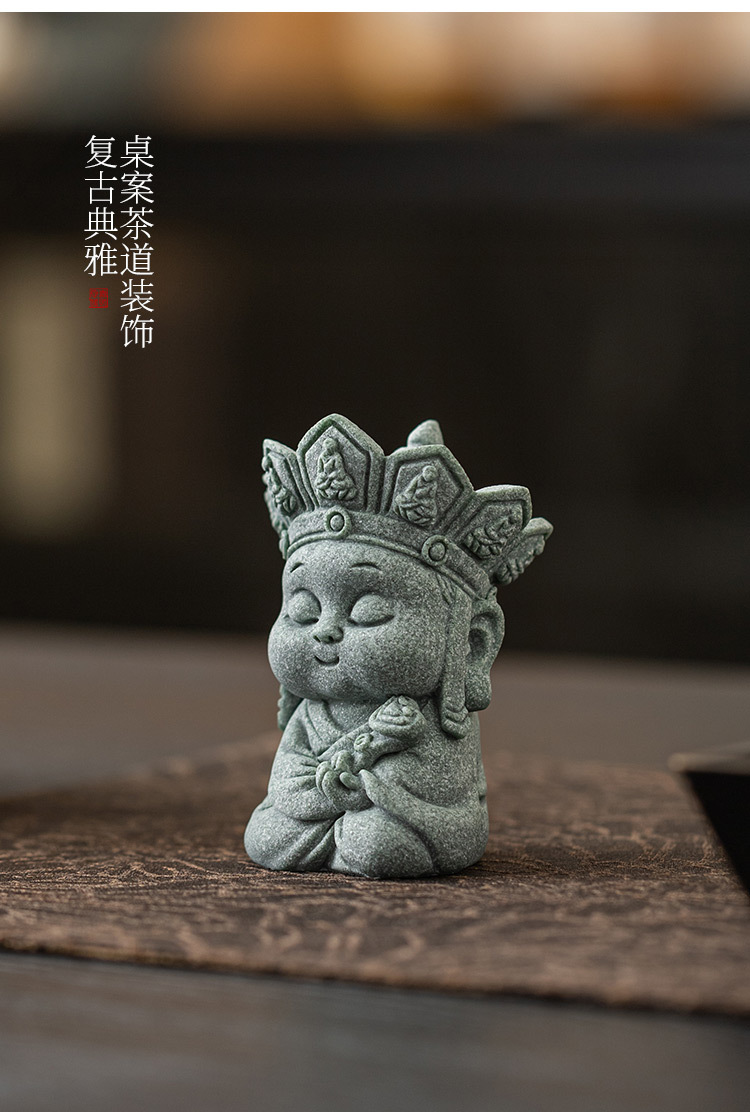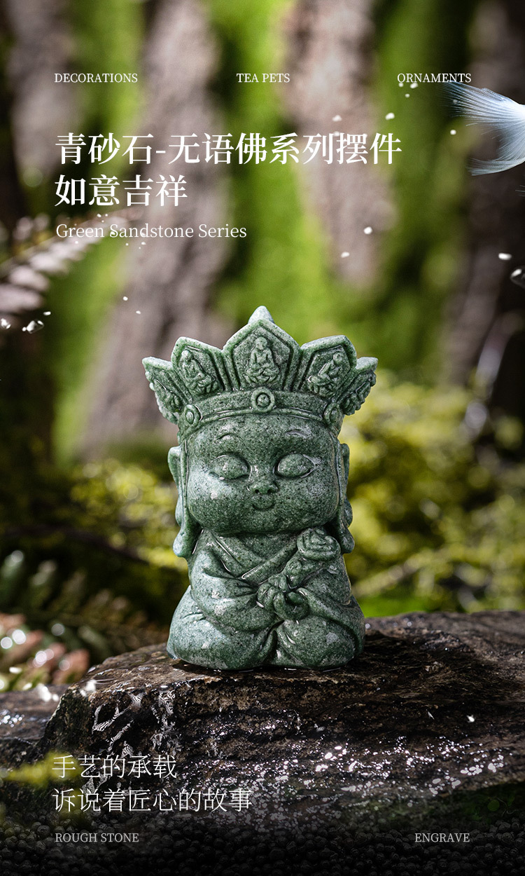 Đá sa thạch xanh kiểu Trung Quốc không nói nên lời Phật tốt lành Ruyi Zen trà thú cưng bể cá trang trí nhỏ trang trí chơi trà để bàn