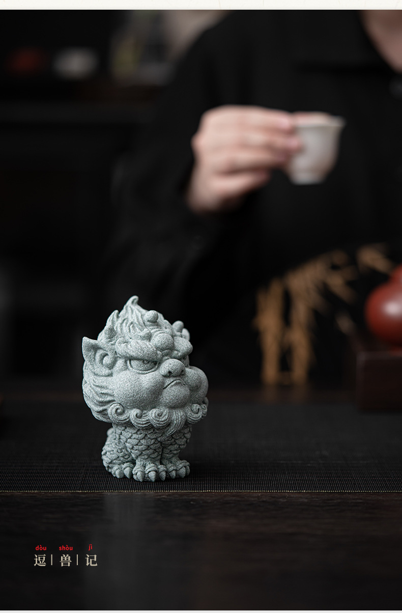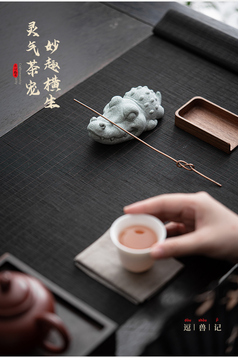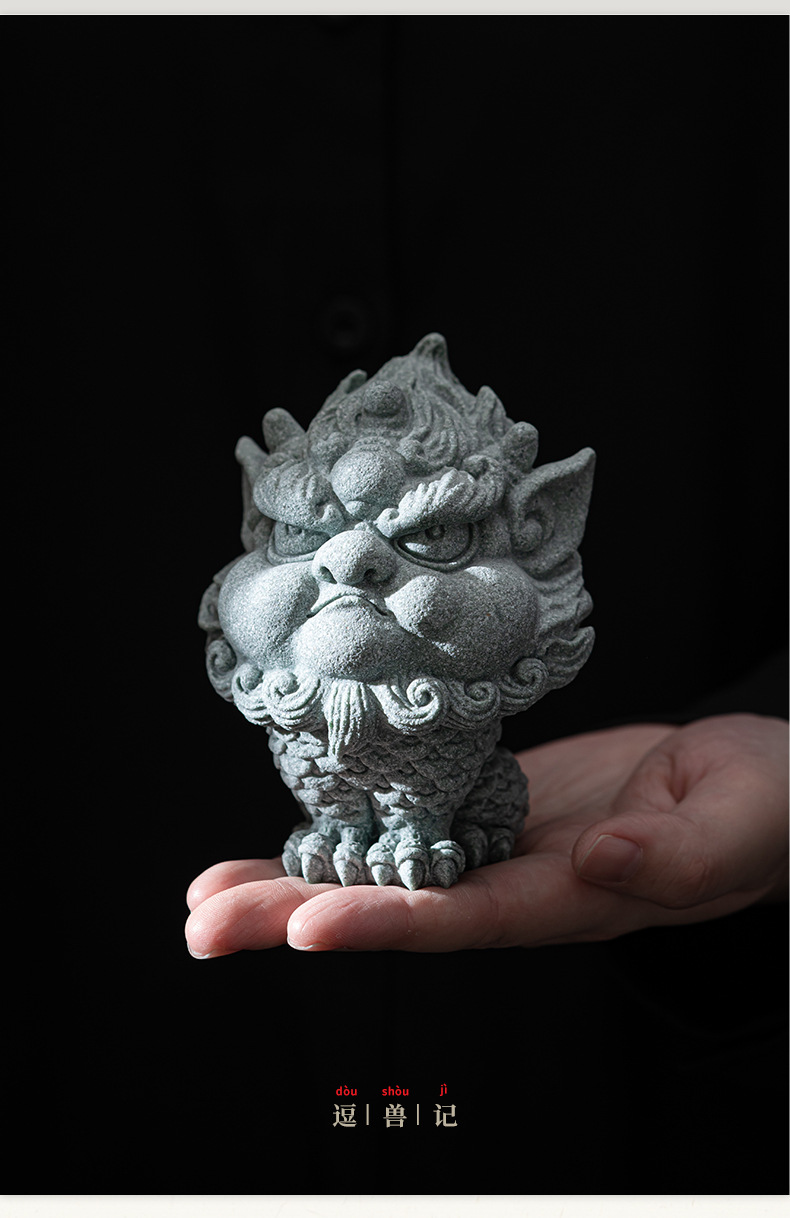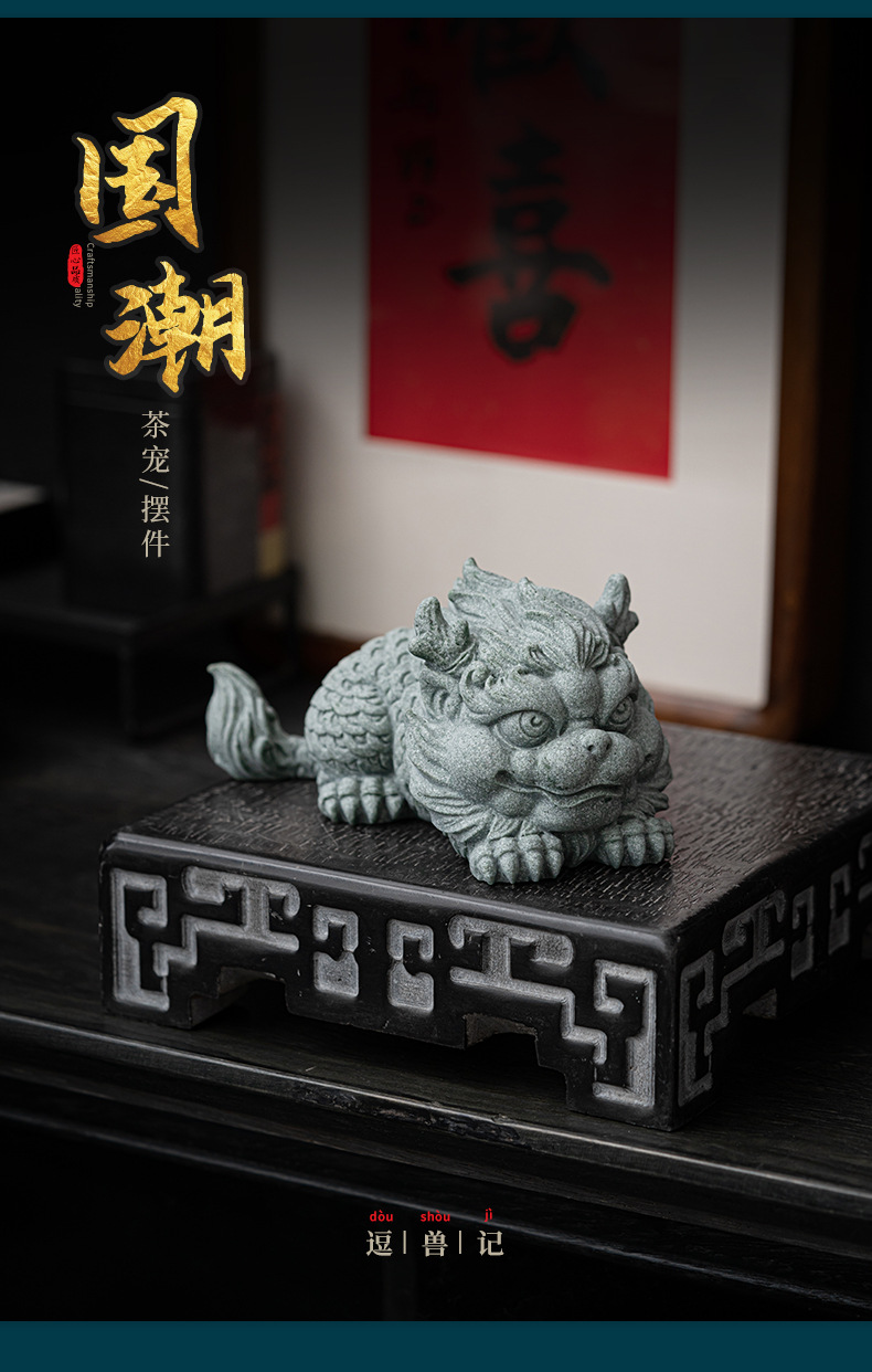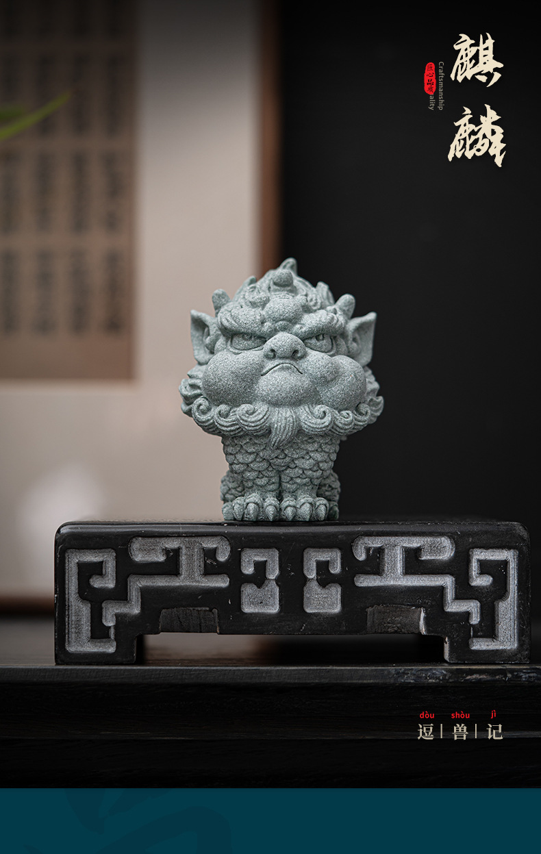 Đá sa thạch xanh phong cách quốc gia may mắn thú cưng trà Kỳ Lân Bìa Đựng bút đựng Bàn trà phòng trà gia dụng đồ trang trí nhỏ đa năng