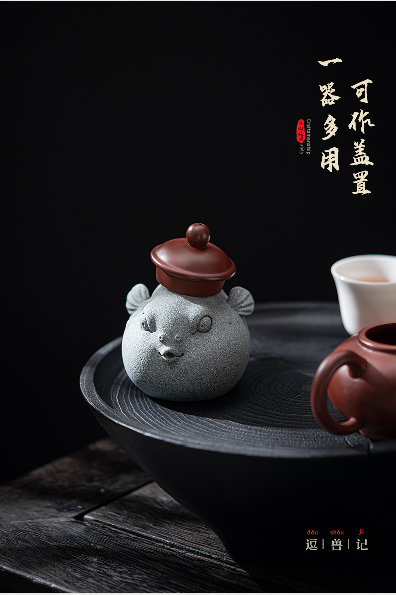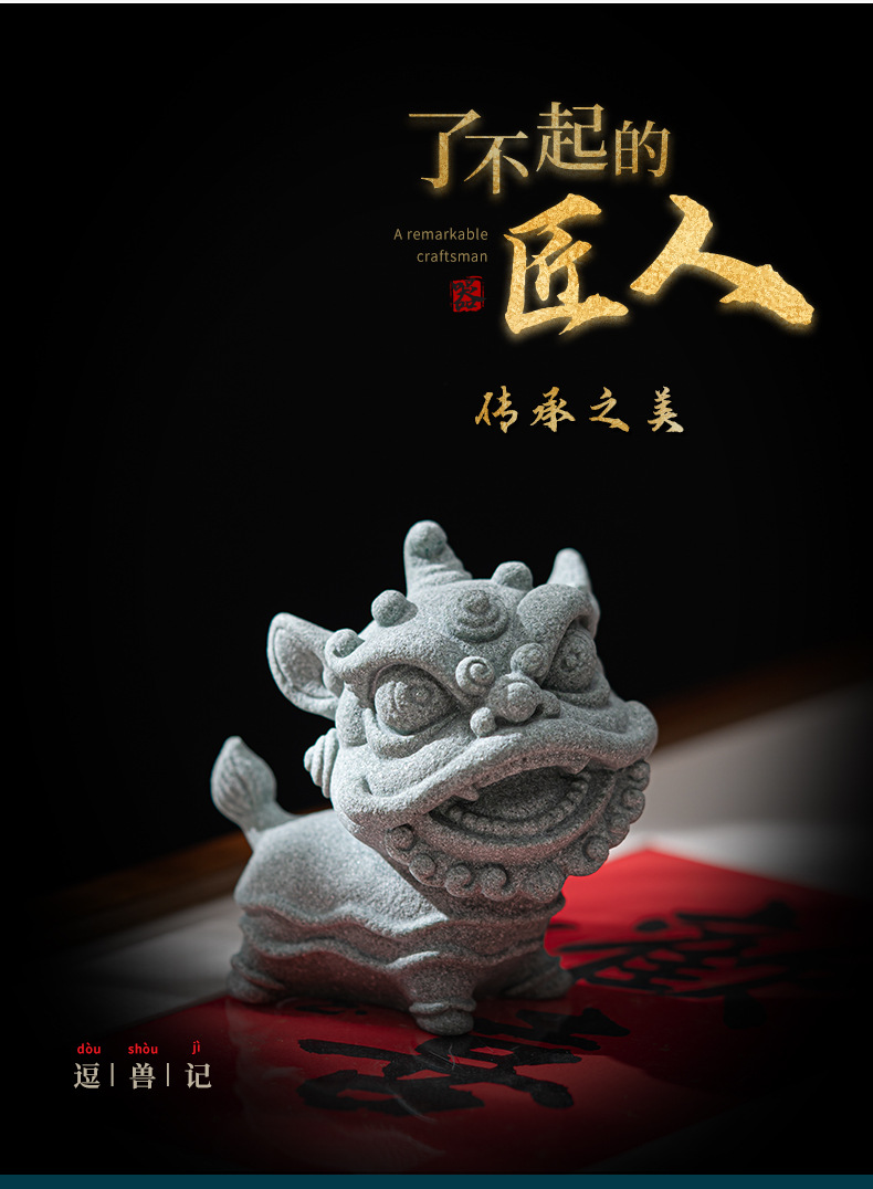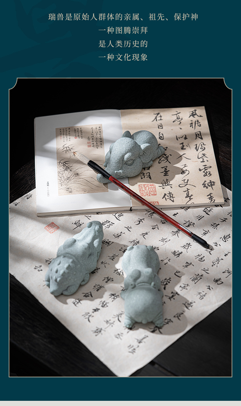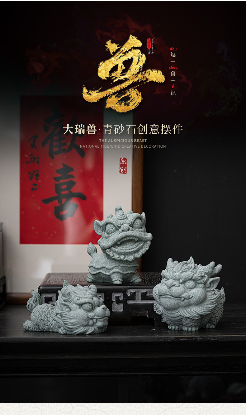Đá sa thạch xanh phong cách quốc gia may mắn thú cưng trà Kỳ Lân Bìa Đựng bút đựng Bàn trà phòng trà gia dụng đồ trang trí nhỏ đa năng