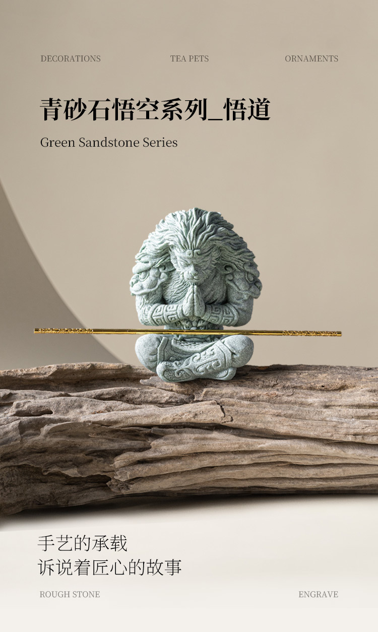 Đá sa thạch xanh Tôn Ngộ Không giác ngộ để bàn trà thú cưng cao cấp sáng tạo đồ trang trí bể cá cảnh quan trang trí văn phòng tại nhà