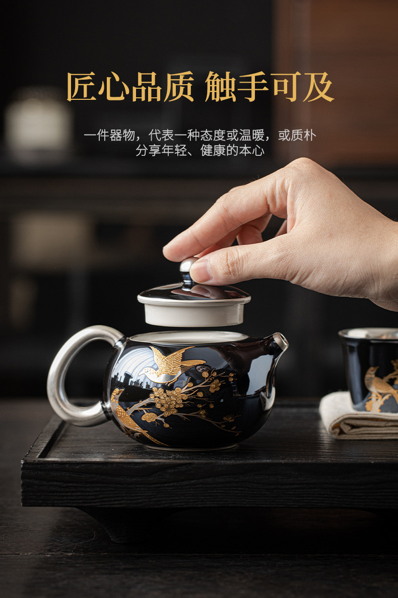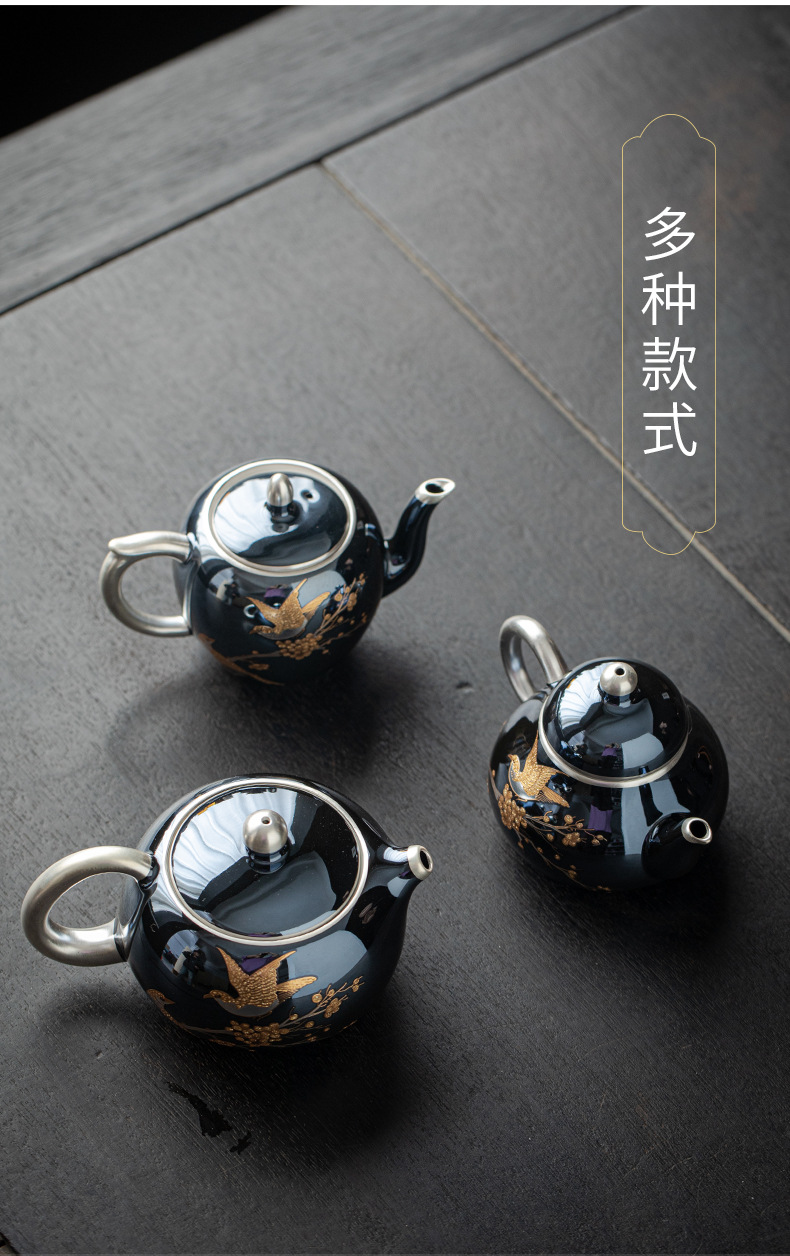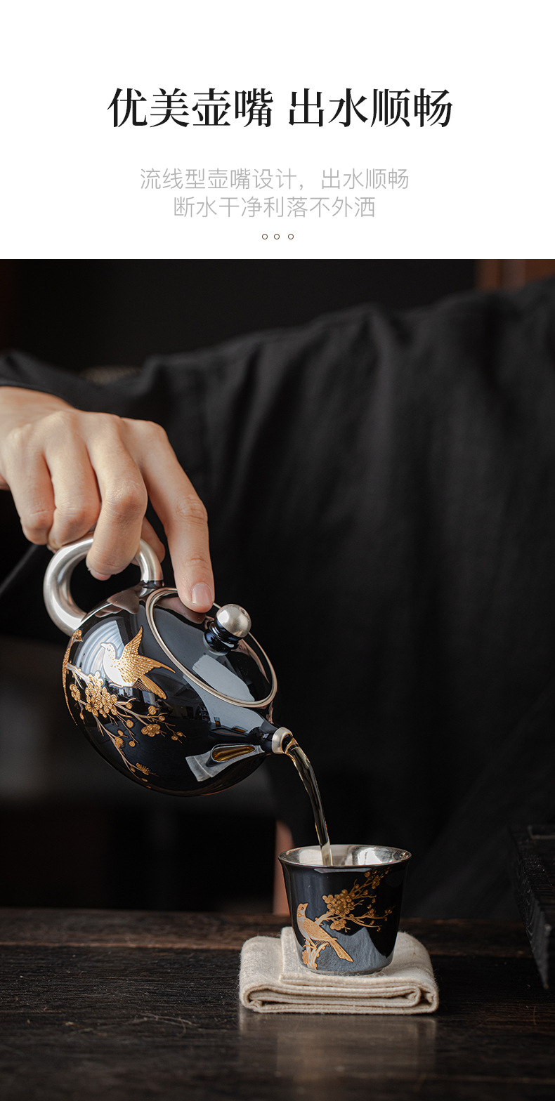 Da'antang bán buôn ấm Xishi lông mày ấm trà mạ bạc thủ công ấm trà Kung Fu tráng men ngọc trai hộp quà