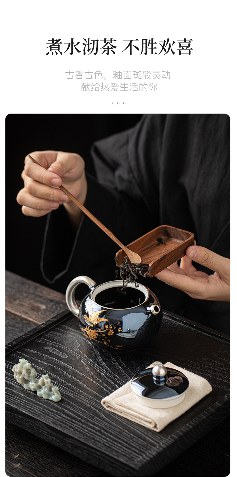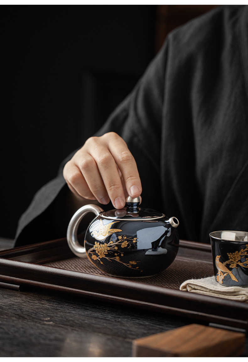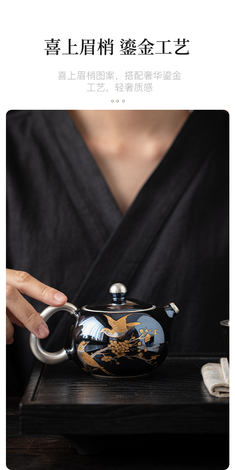 Da'antang bán buôn ấm Xishi lông mày ấm trà mạ bạc thủ công ấm trà Kung Fu tráng men ngọc trai hộp quà