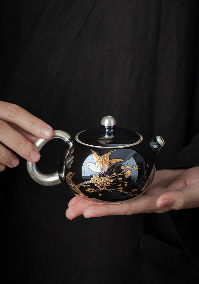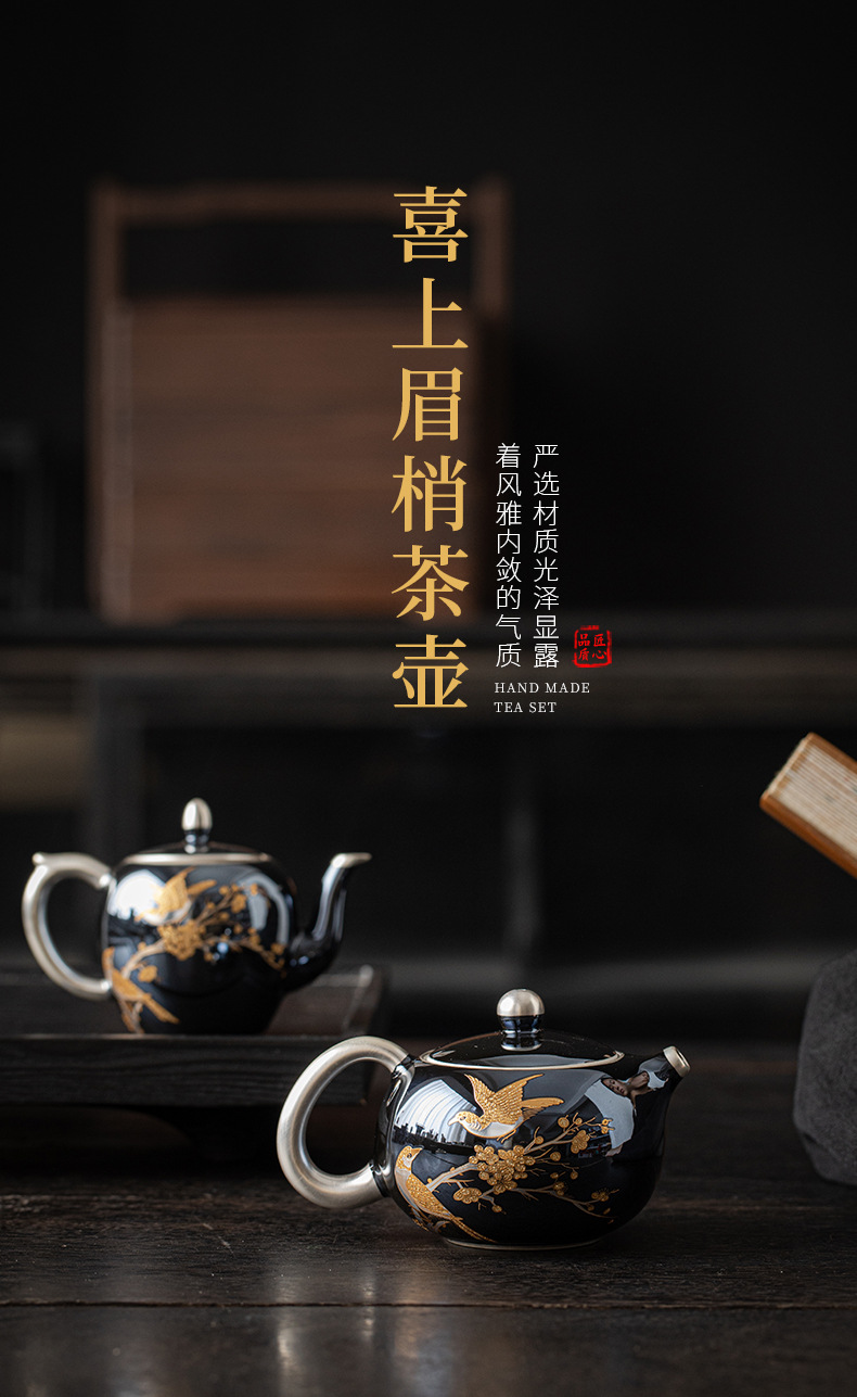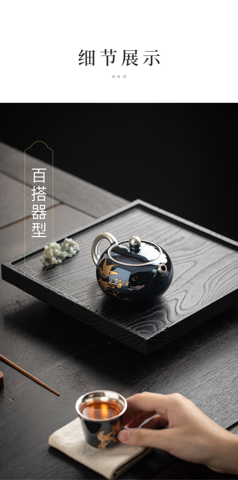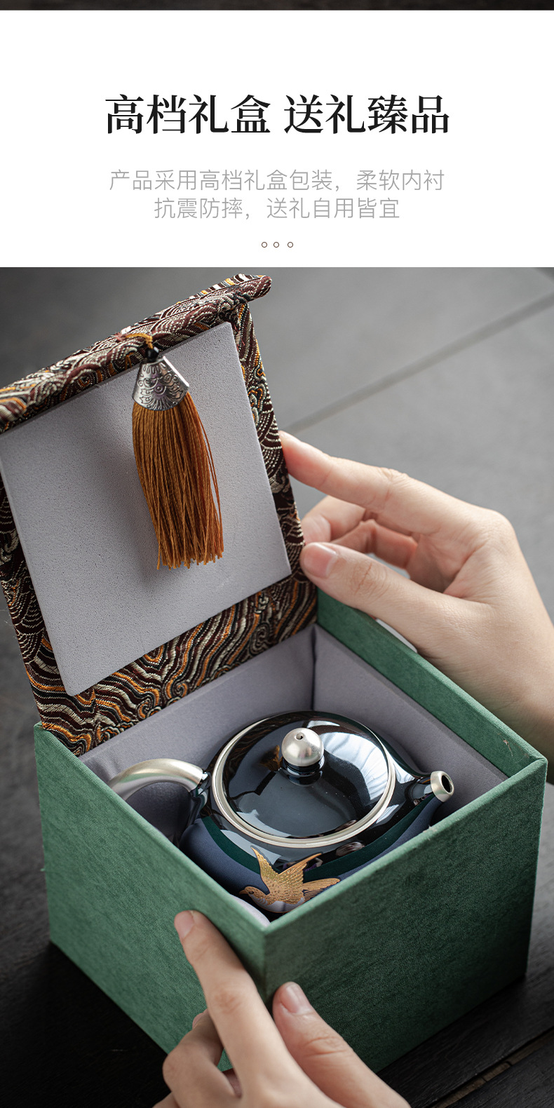 - Da'antang bán buôn ấm Xishi lông mày ấm trà mạ bạc thủ công ấm trà Kung Fu tráng men ngọc trai hộp quà