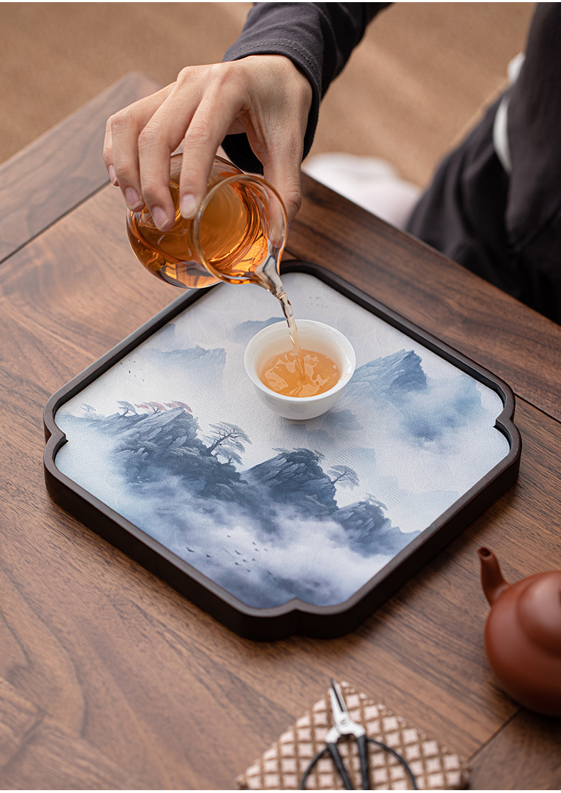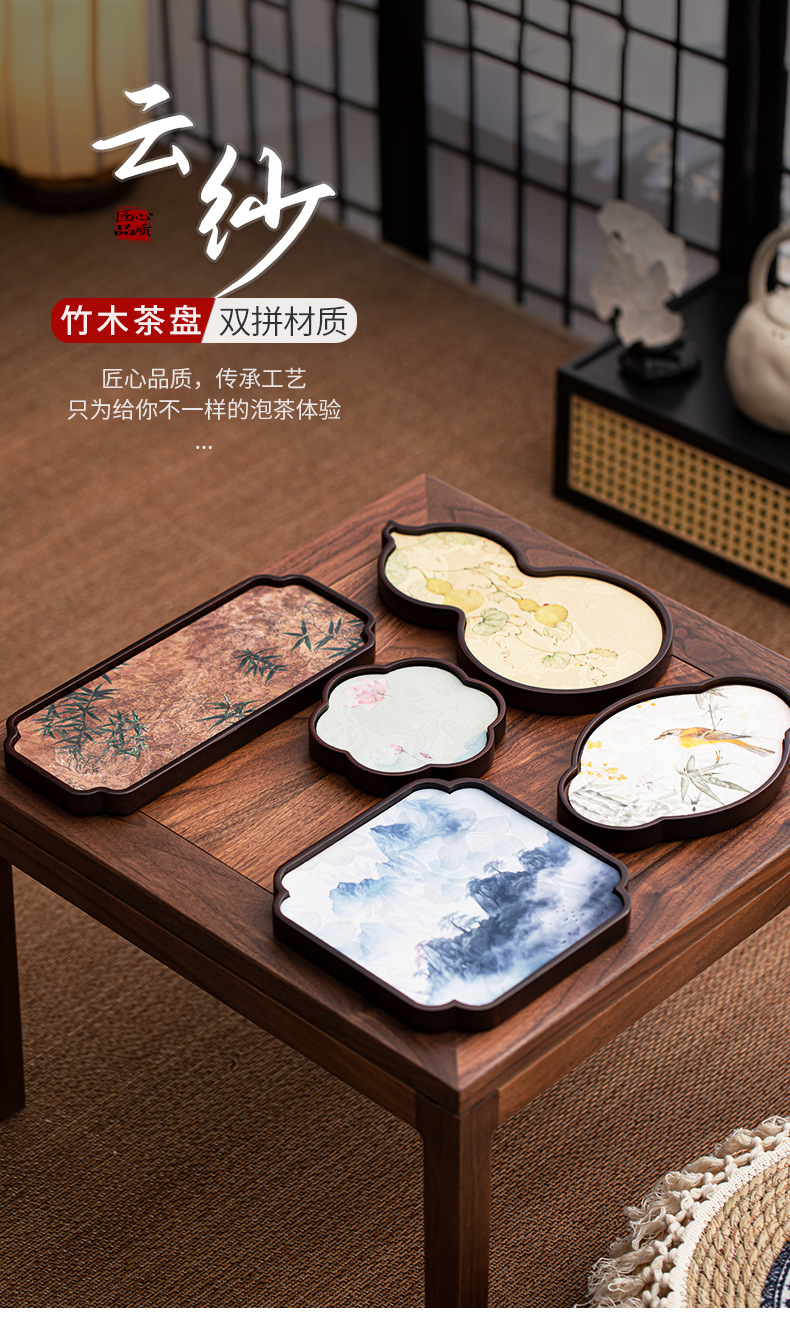 - Đám mây lụa đôi tre khay kiểu Trung Quốc khô bong bóng khay nhà retro khay trà retro vuông khay trà chống thấm nước giữ nồi