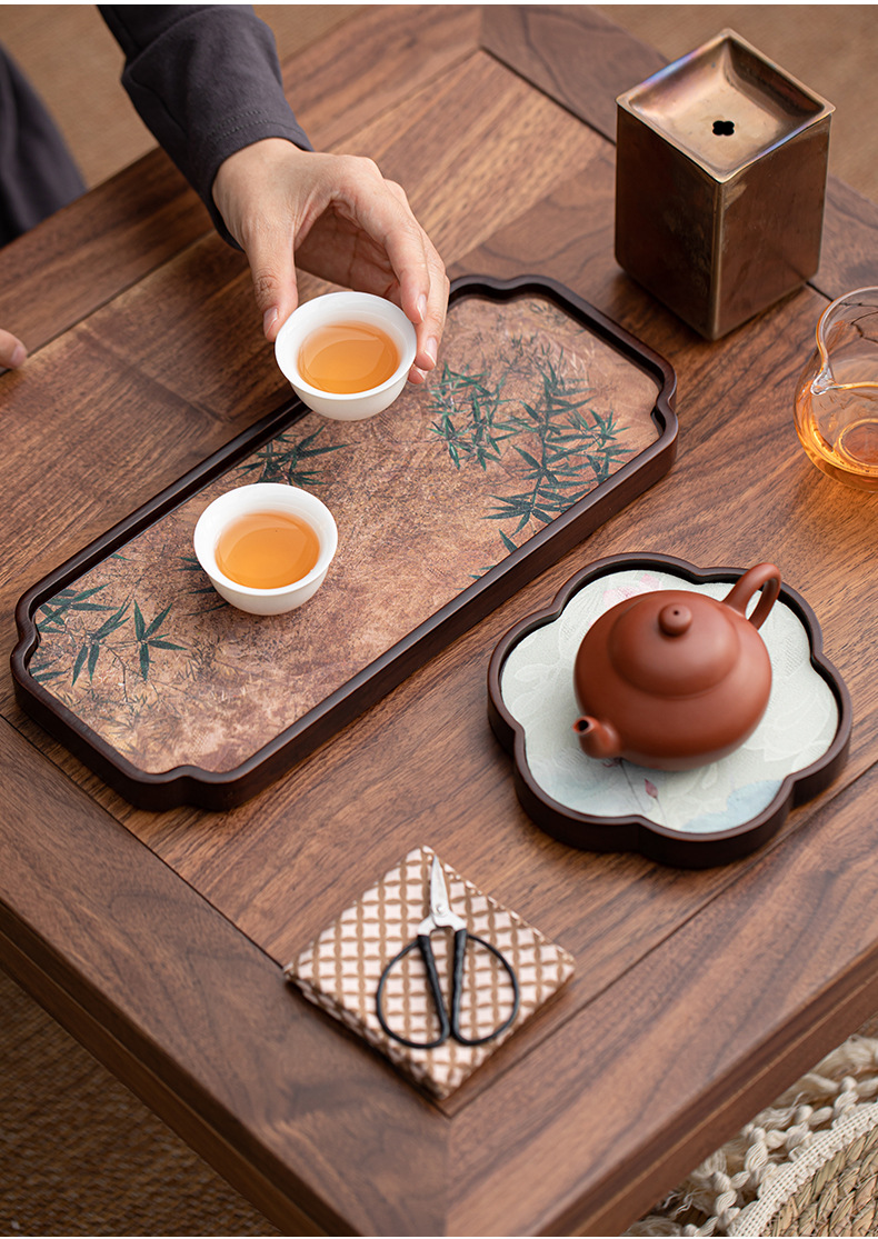 Đám mây lụa đôi tre khay kiểu Trung Quốc khô bong bóng khay nhà retro khay trà retro vuông khay trà chống thấm nước giữ nồi