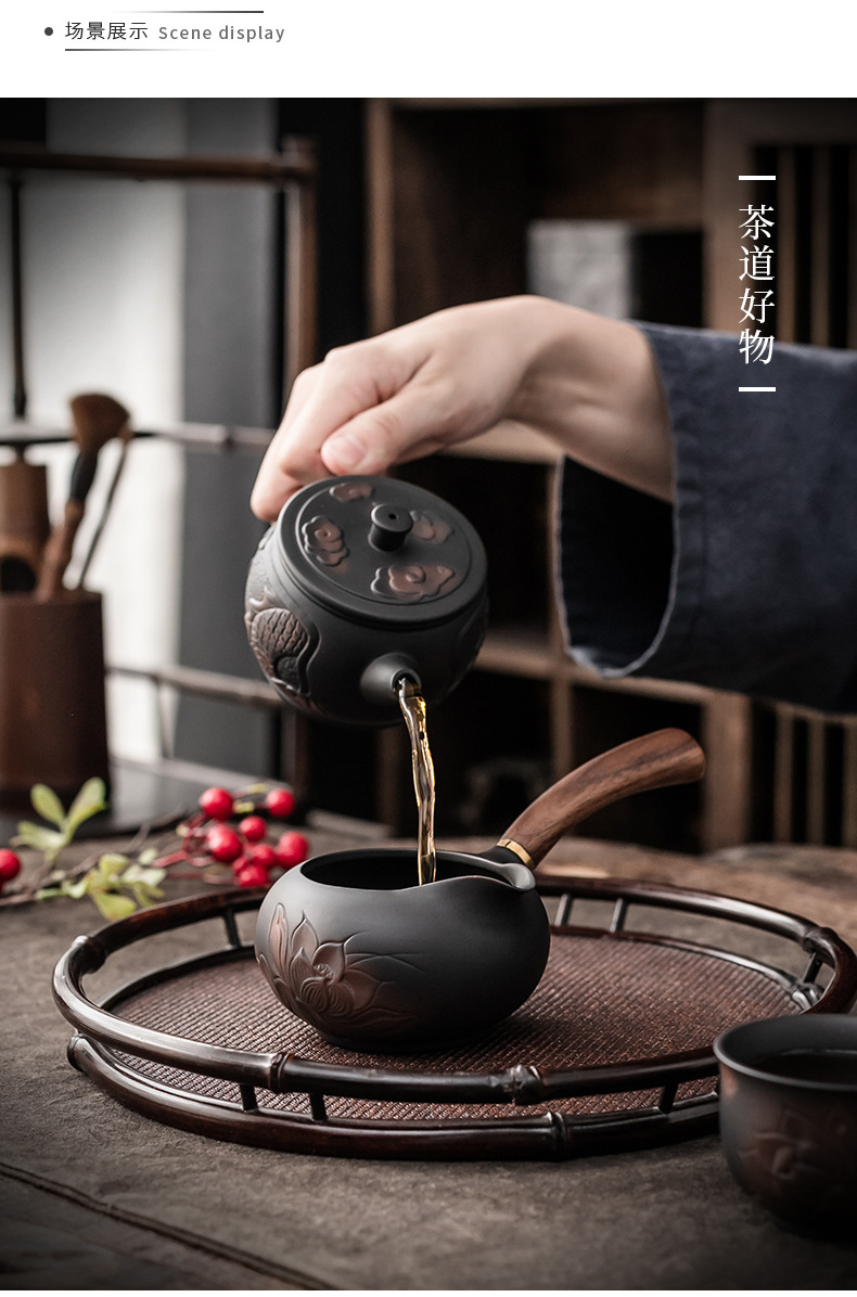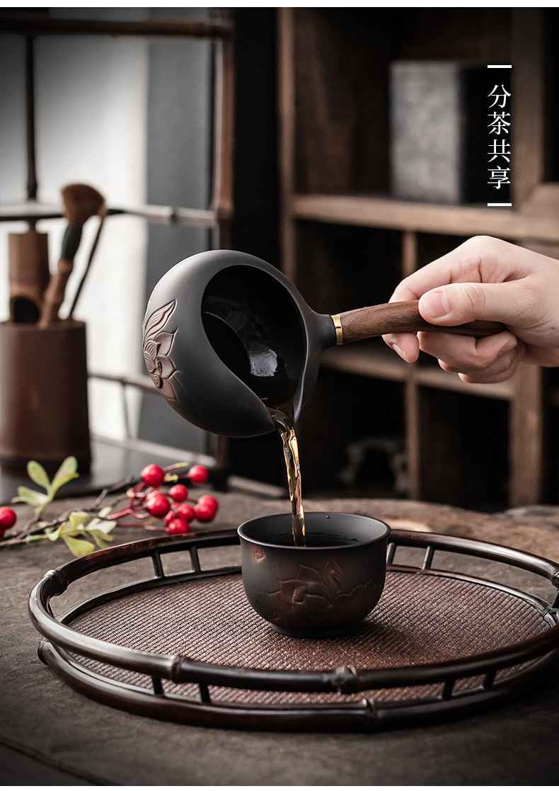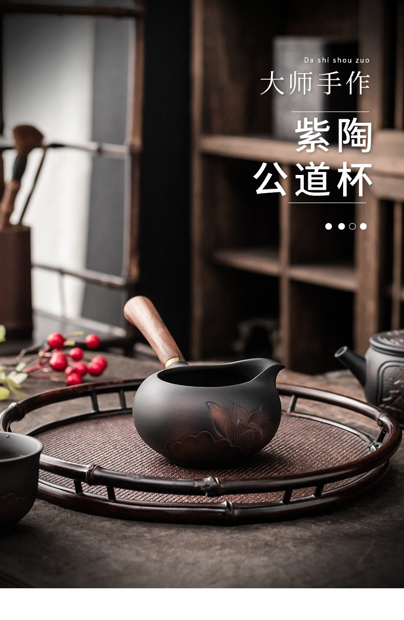 Dao nhảy thủ công bằng Gốm Tím Daantang, cốc tay cầm bên, dụng cụ chia trà cao cấp, bộ trà Kung Fu, cốc công bằng gốm Biển Trà