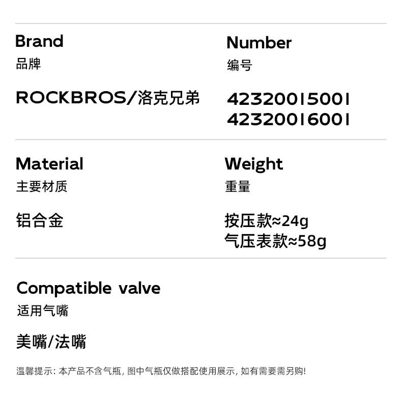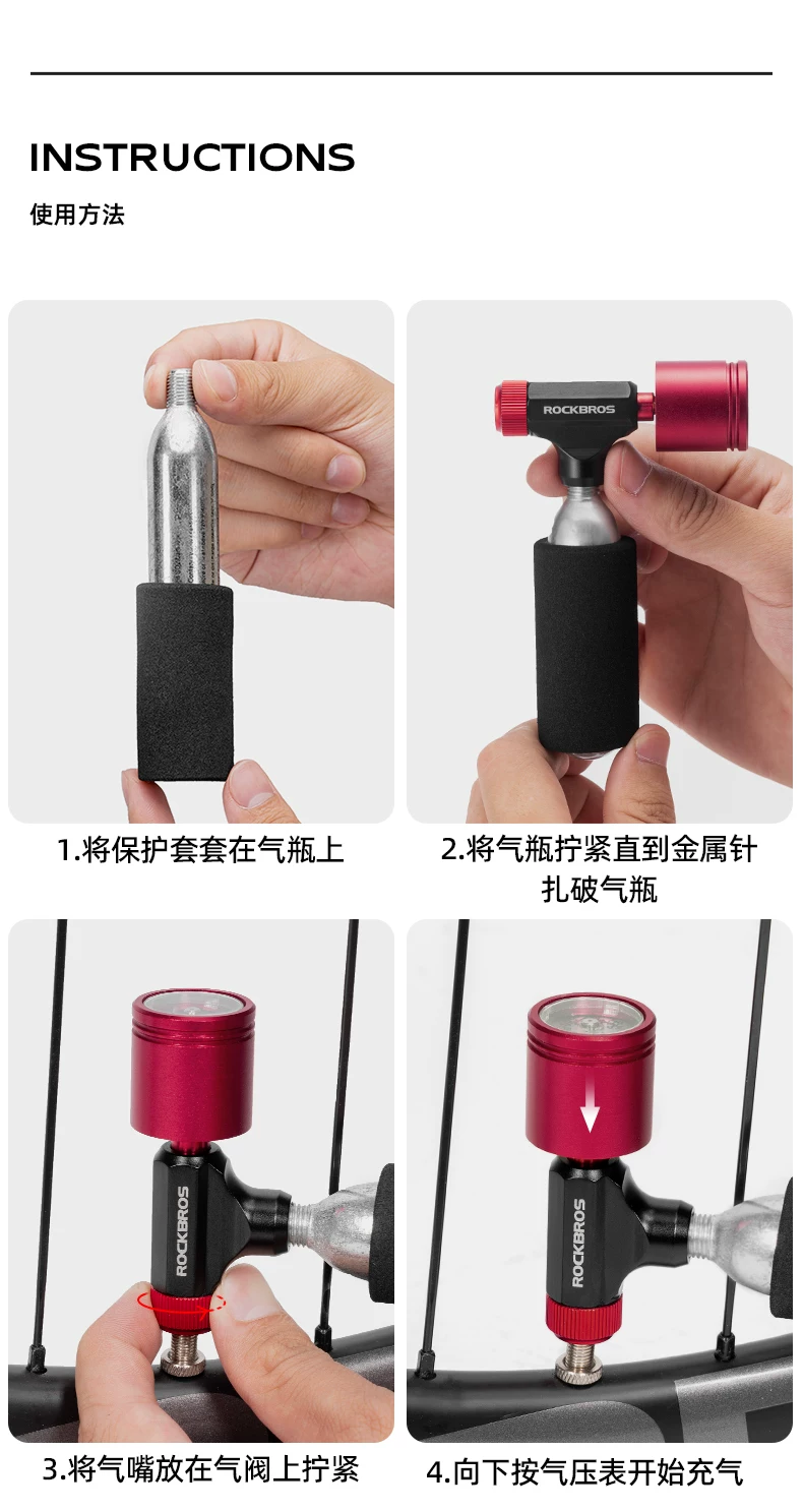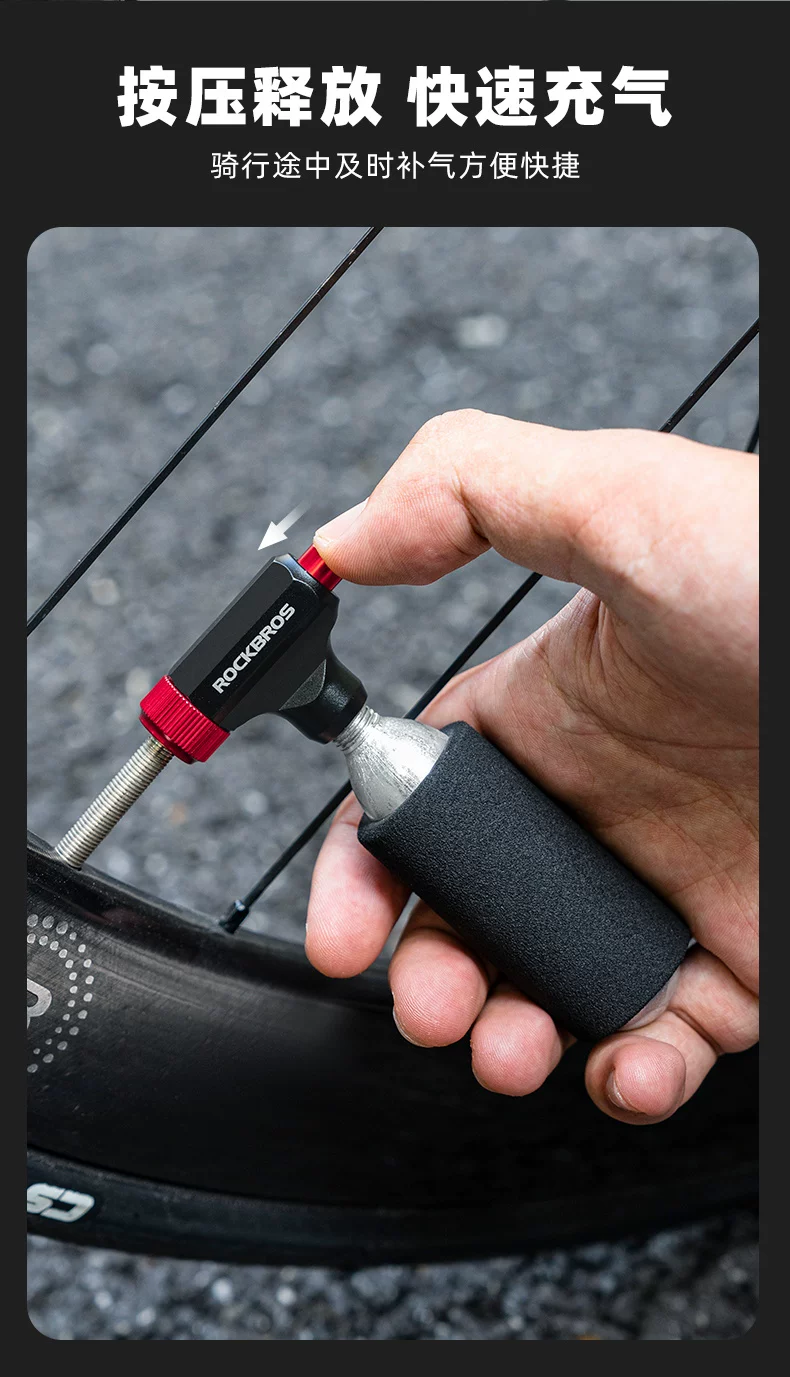 - Đầu van CO2 của Rock Brothers để sửa chữa lốp xe nhanh chóng, xe đạp đường trường khẩn cấp Bộ chuyển đổi hợp kim nhôm van kiểu Mỹ/Pháp có đồng hồ đo áp suất