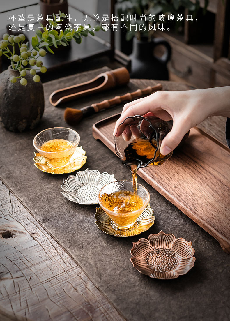 Đế cốc kiểu Nhật, đế cốc hợp kim, đế cách nhiệt hình tròn sáng tạo, đế cốc giả đồng, đế trà Kung Fu cổ điển, trà đạo