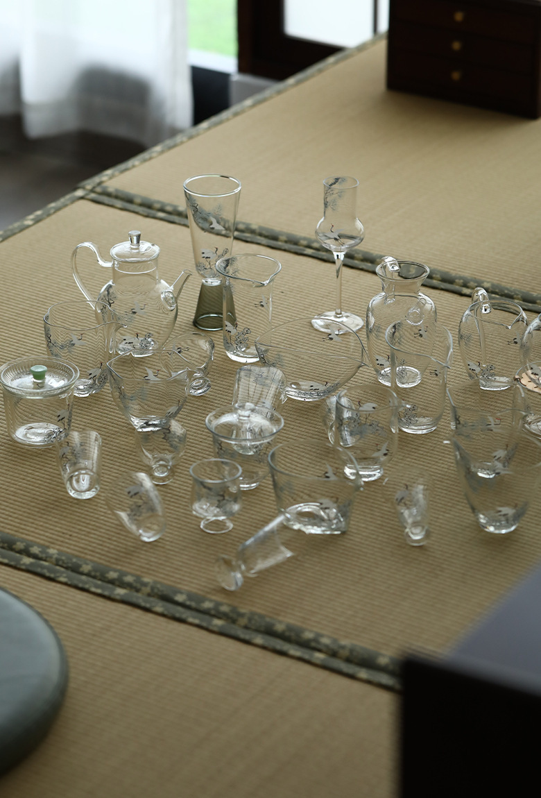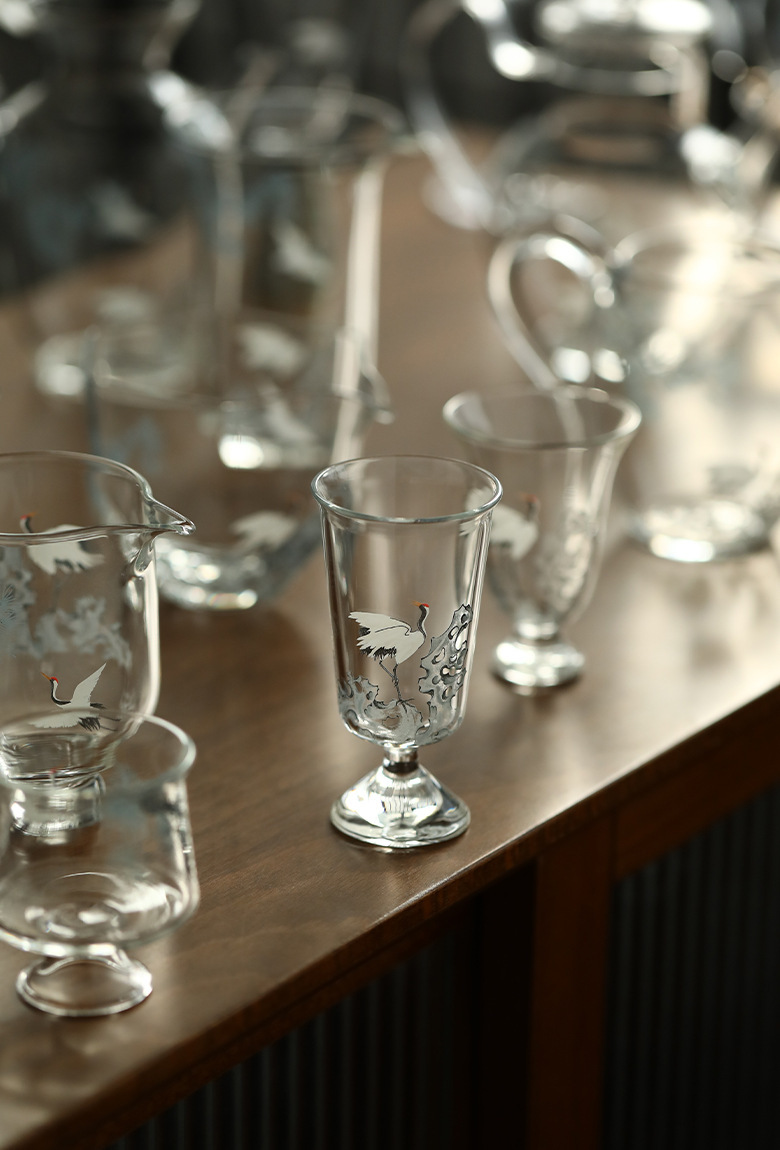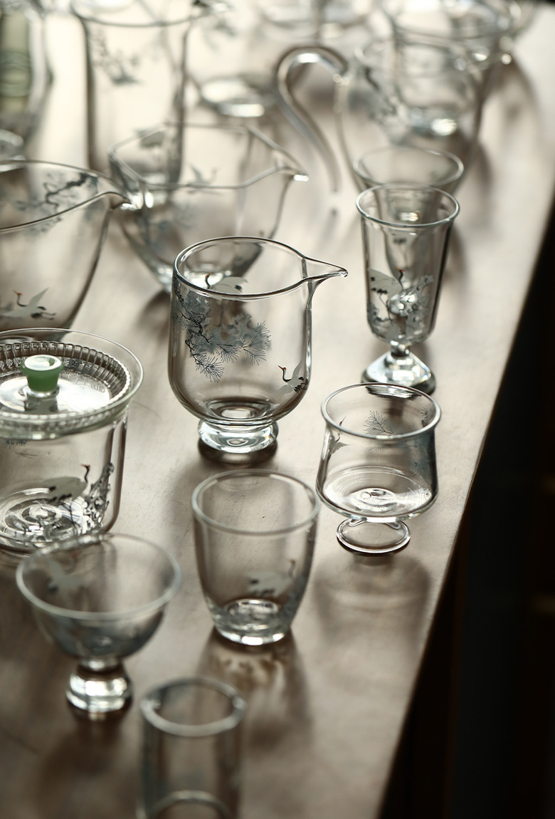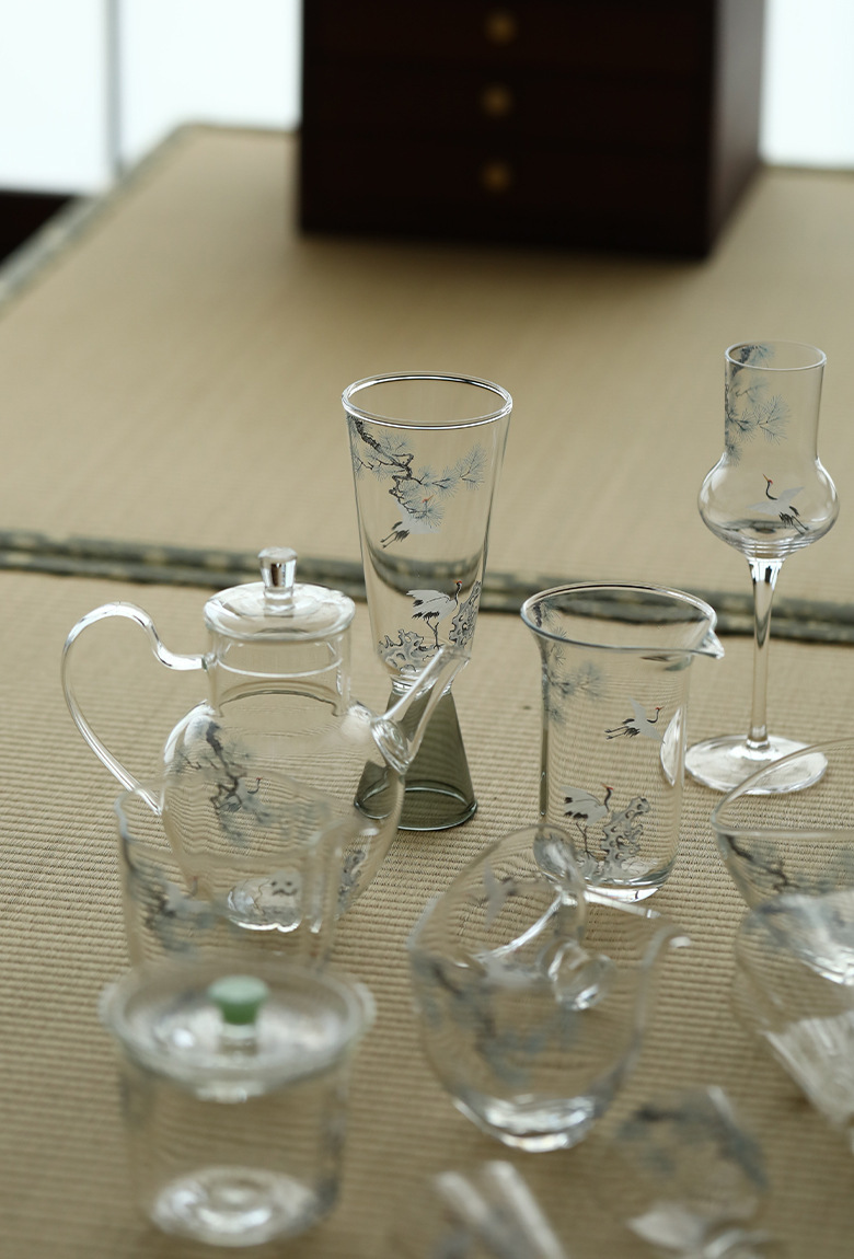 - Decal thủ công Songhe thủy tinh borosilicate Bộ trà Kung Fu Cốc công bằng Cốc trà xanh Ấm pha trà xanh Hai bát có nắp