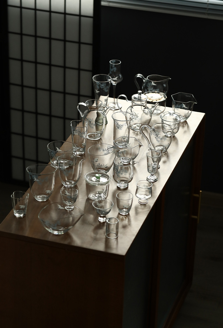 Decal thủ công Songhe thủy tinh borosilicate Bộ trà Kung Fu Cốc công bằng Cốc trà xanh Ấm pha trà xanh Hai bát có nắp