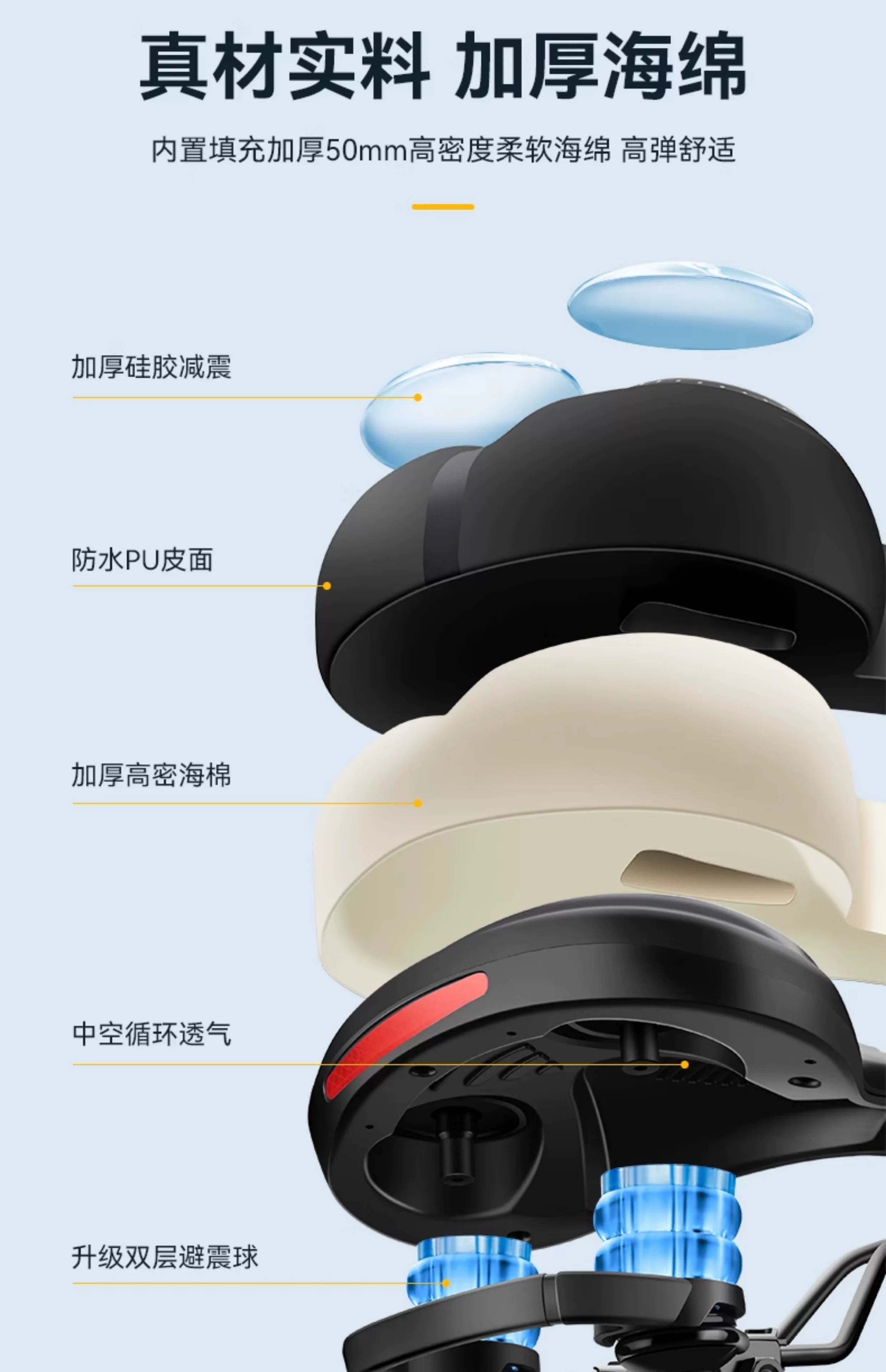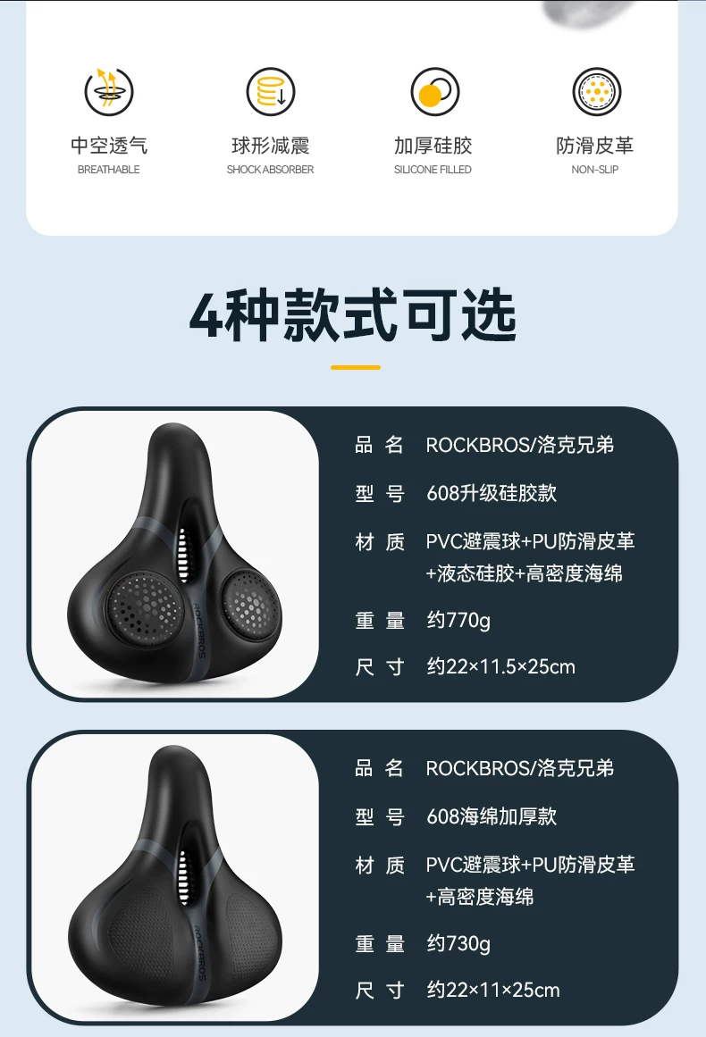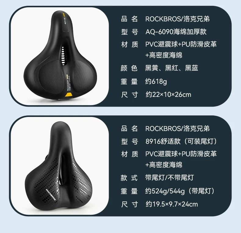 Đệm ngồi xe đạp Rock Brothers thoải mái, giảm xóc cho xe đạp leo núi, đệm dày, phụ kiện đi xe đạp