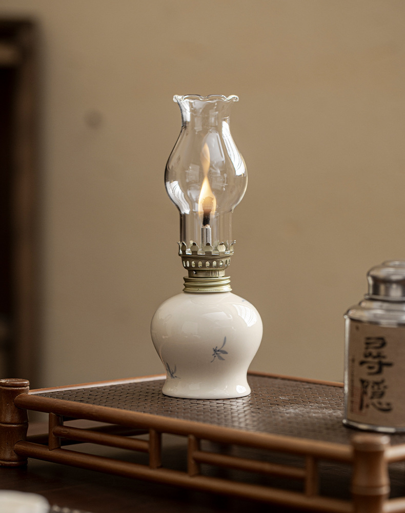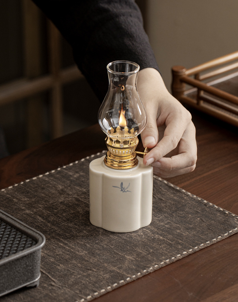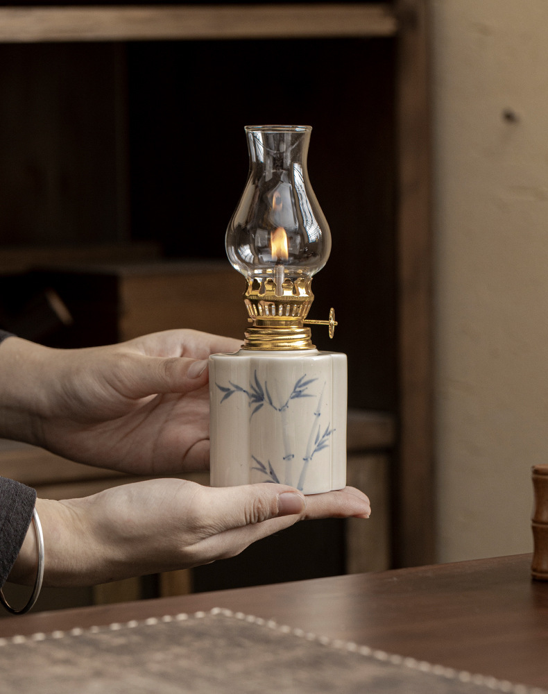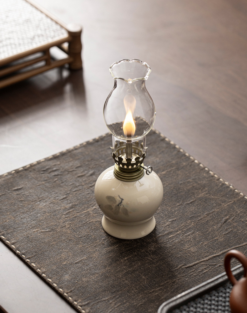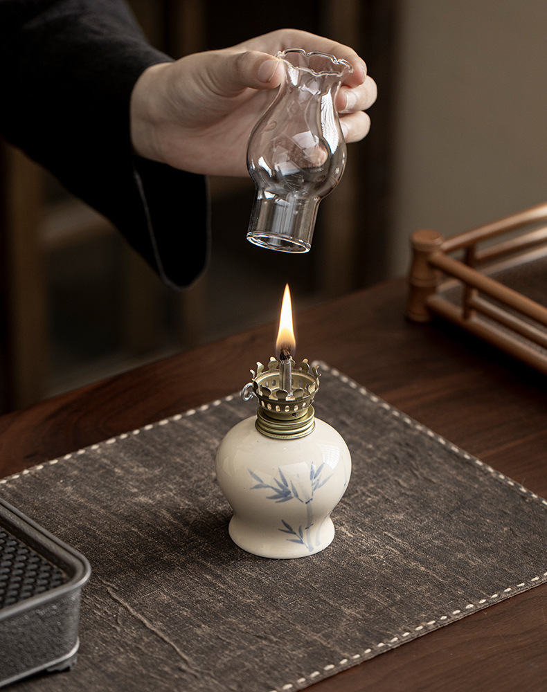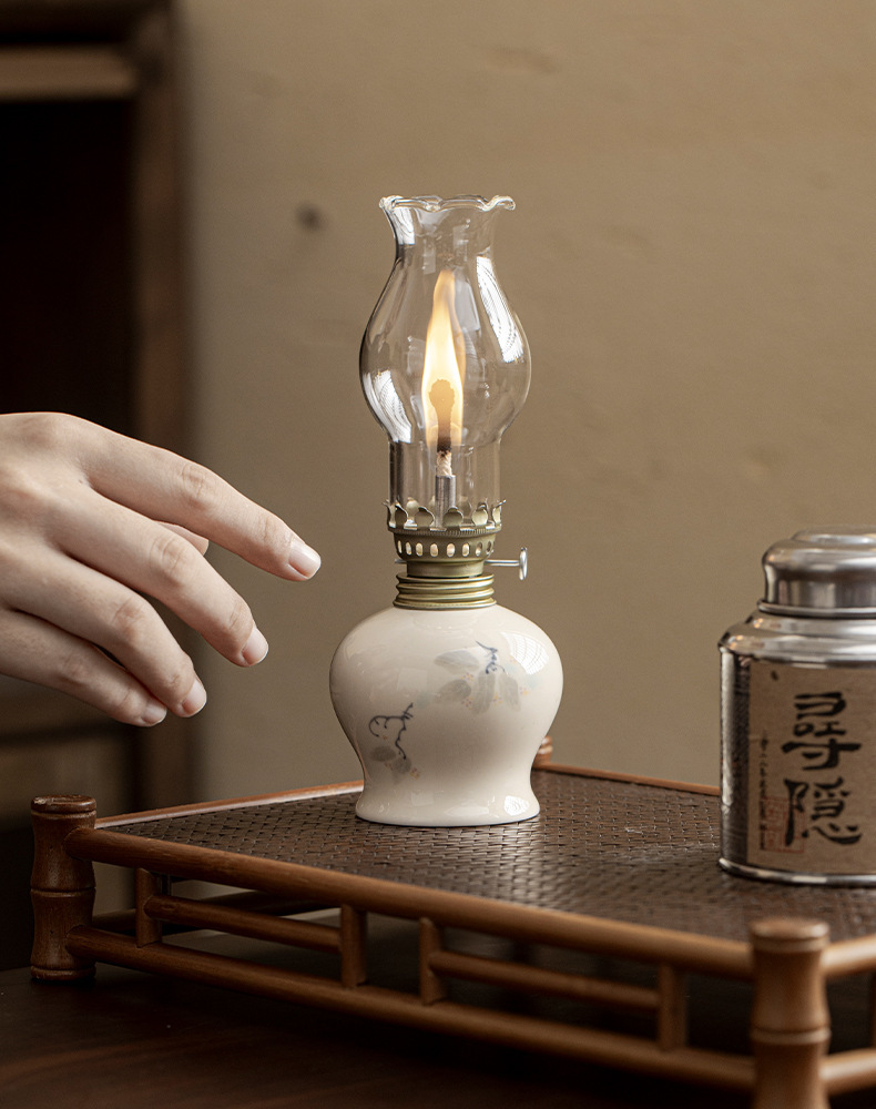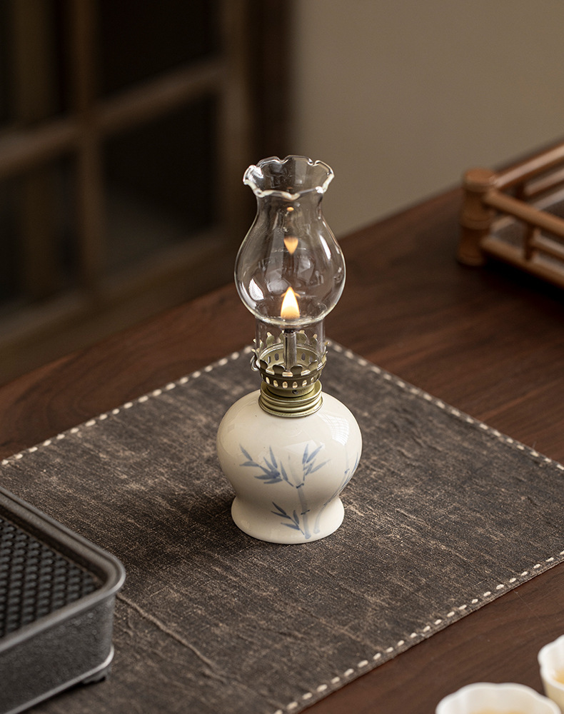 Đèn bơ gốm sứ vẽ tay retro không gian trà đèn nến chiếu sáng ngoài trời cắm trại xung quanh đèn trang trí phụ kiện trà đạo