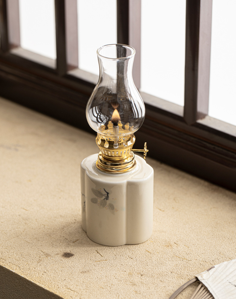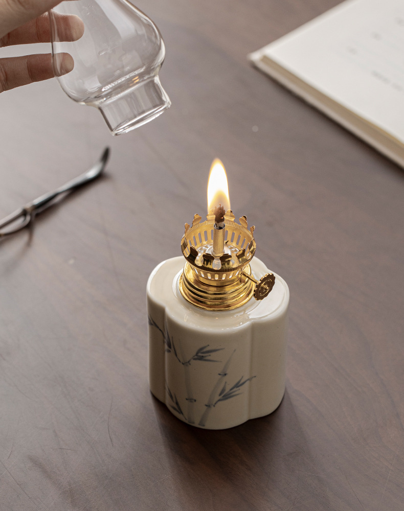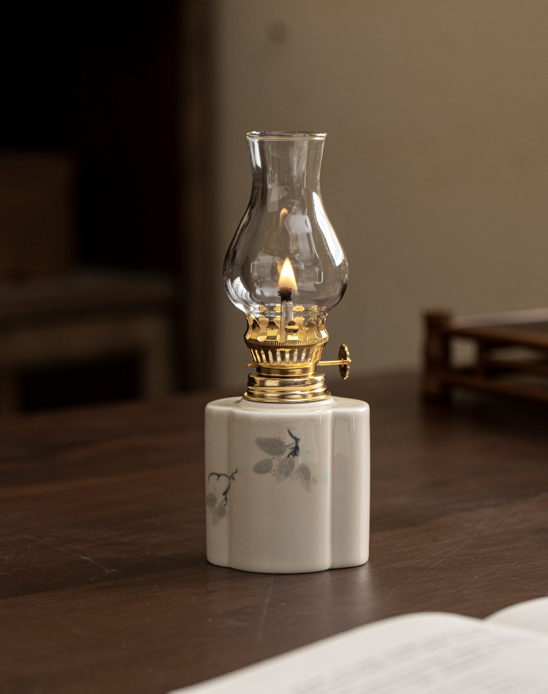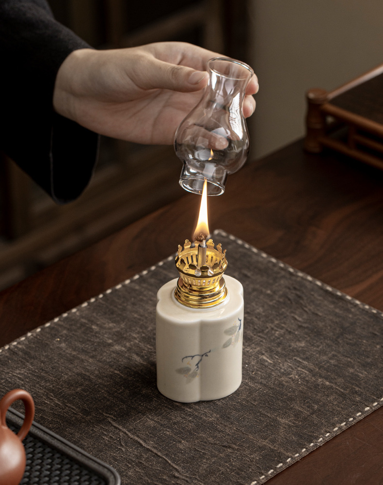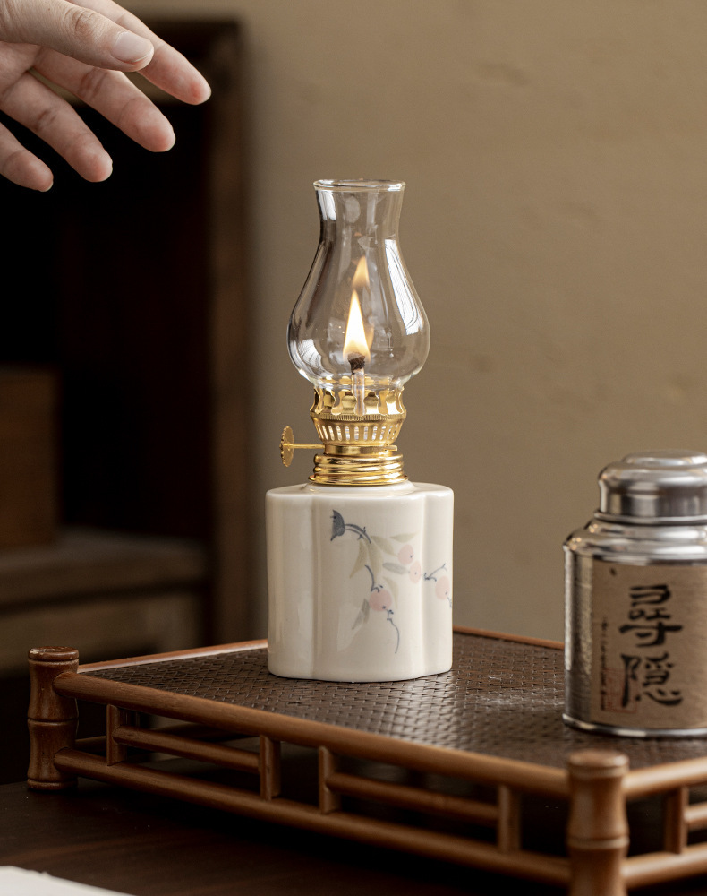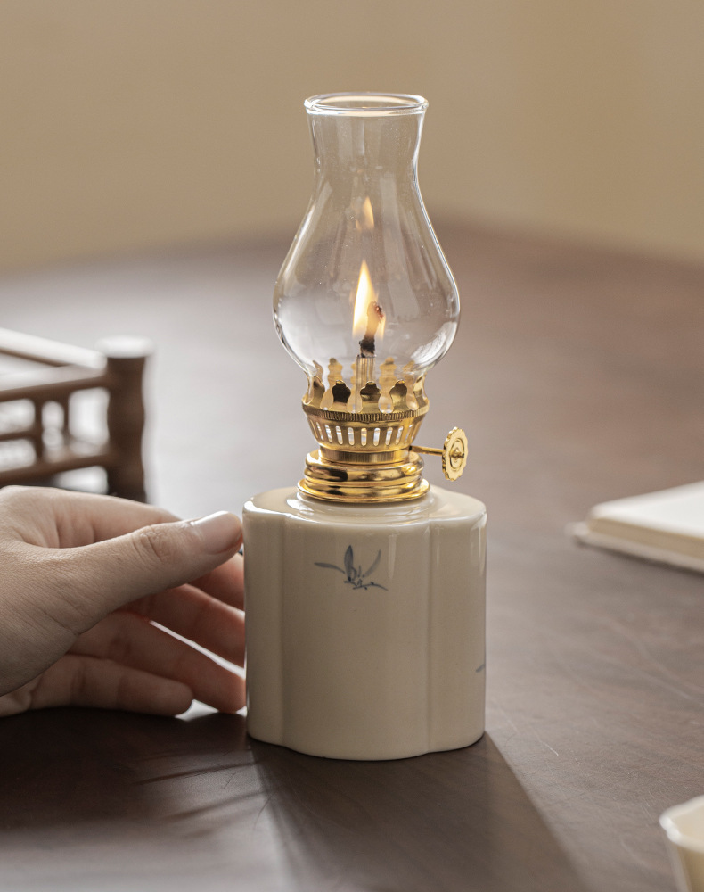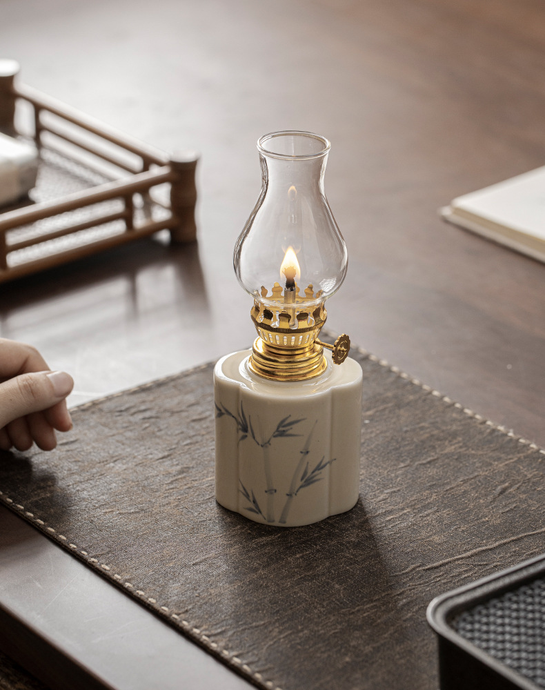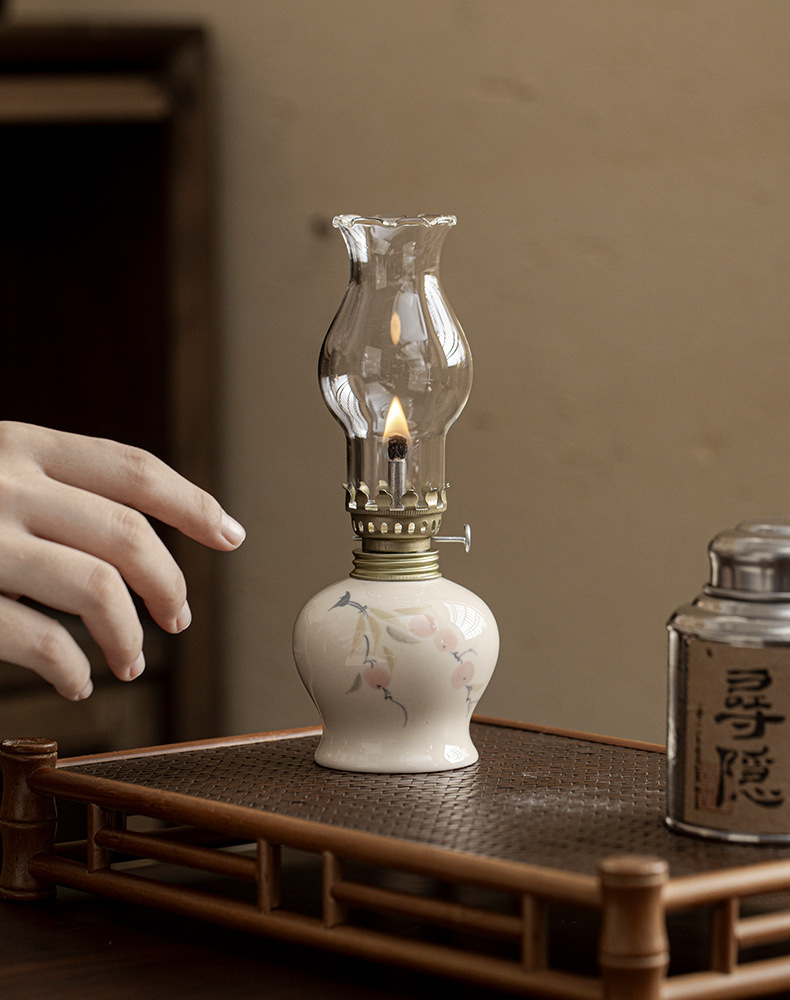 Đèn bơ gốm sứ vẽ tay retro không gian trà đèn nến chiếu sáng ngoài trời cắm trại xung quanh đèn trang trí phụ kiện trà đạo