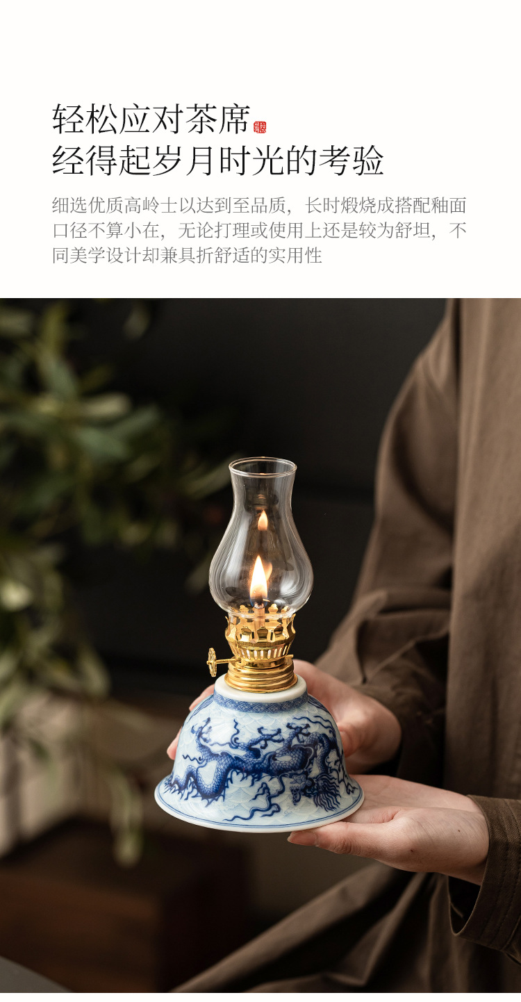 - Đèn dầu hỏa màu xanh và trắng phong cách Trung Quốc mới xung quanh đèn bơ gốm sứ cho đèn Phật học phòng ngủ đèn trang trí