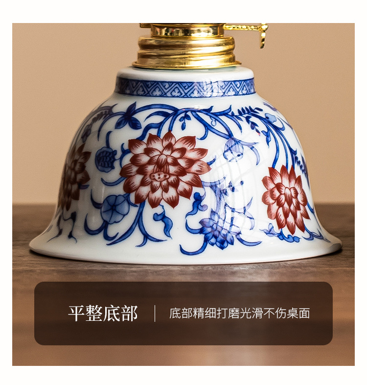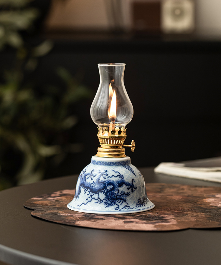 Đèn dầu hỏa màu xanh và trắng phong cách Trung Quốc mới xung quanh đèn bơ gốm sứ cho đèn Phật học phòng ngủ đèn trang trí