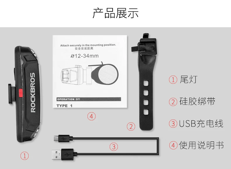 - Đèn đuôi xe đạp Rock Brothers đèn đuôi xe đạp leo núi đèn LED có thể sạc lại USB đèn cảnh báo đi đêm đèn đuôi thiết bị đi xe đạp