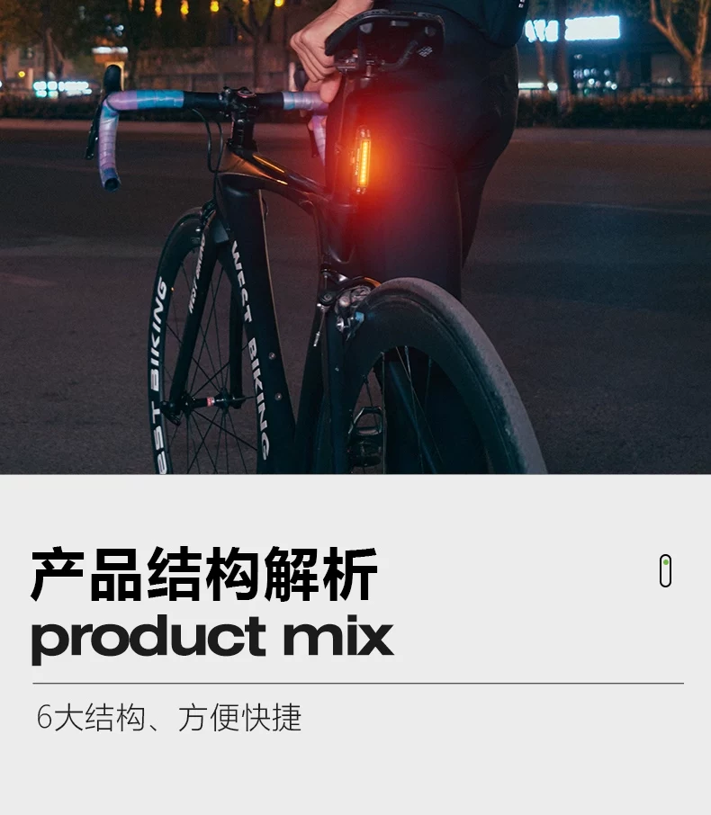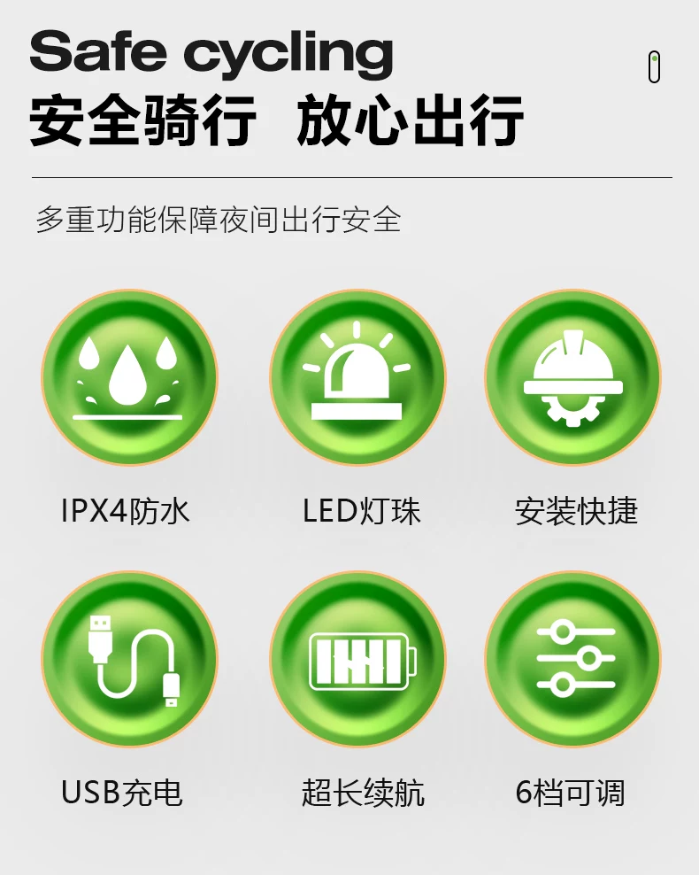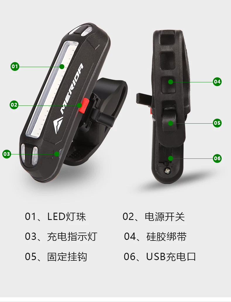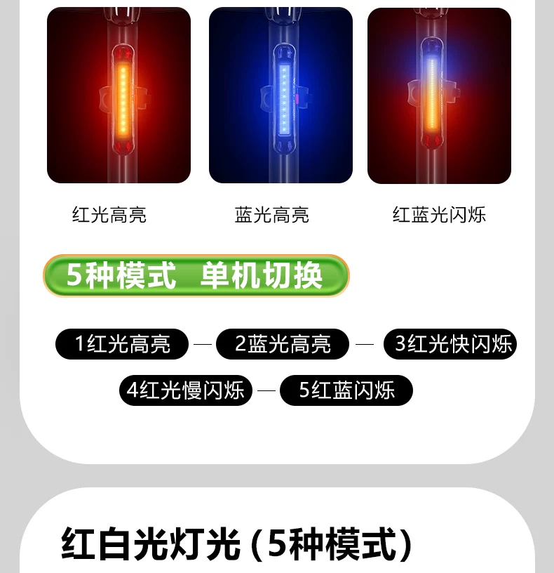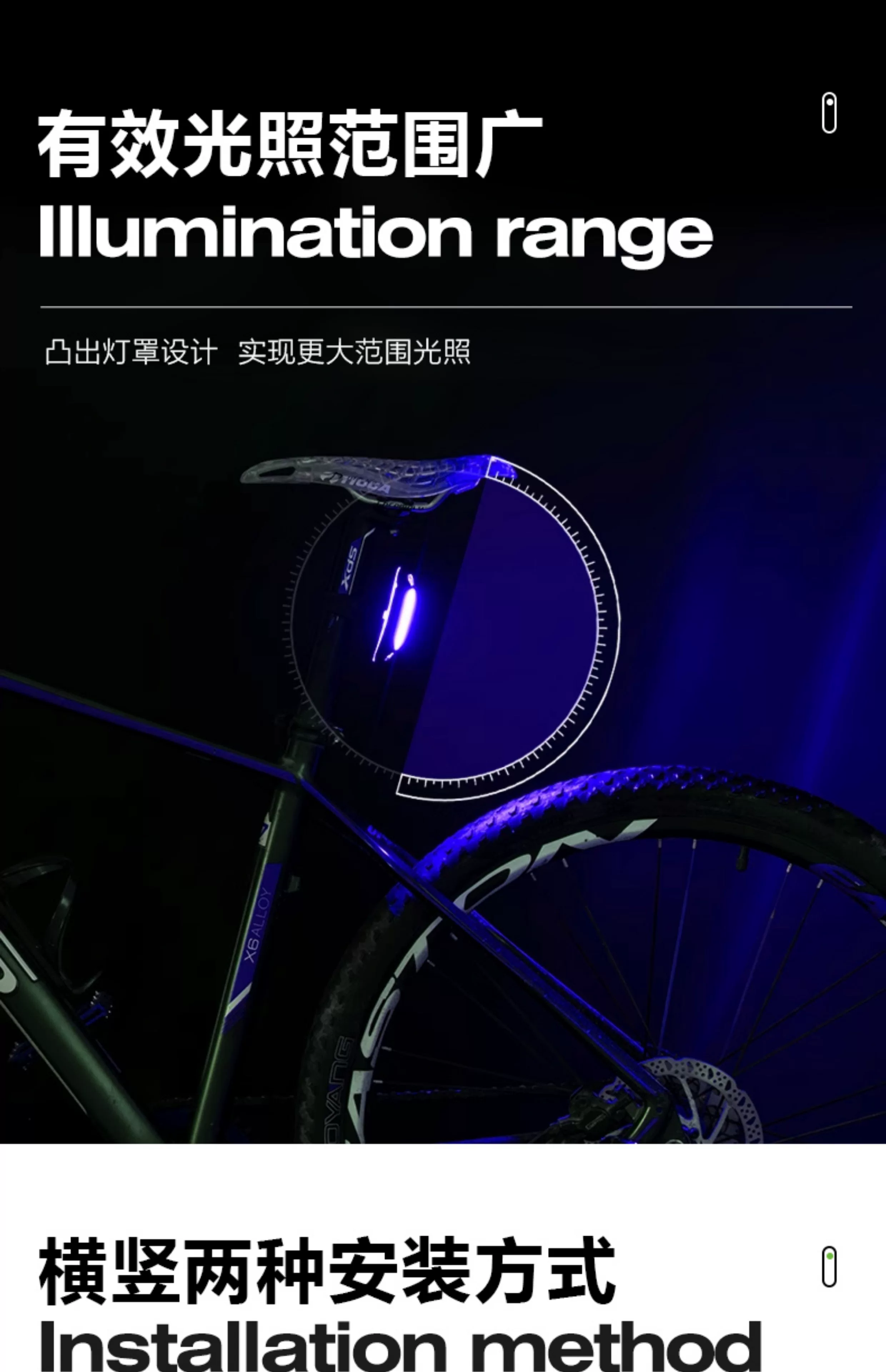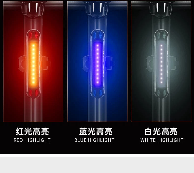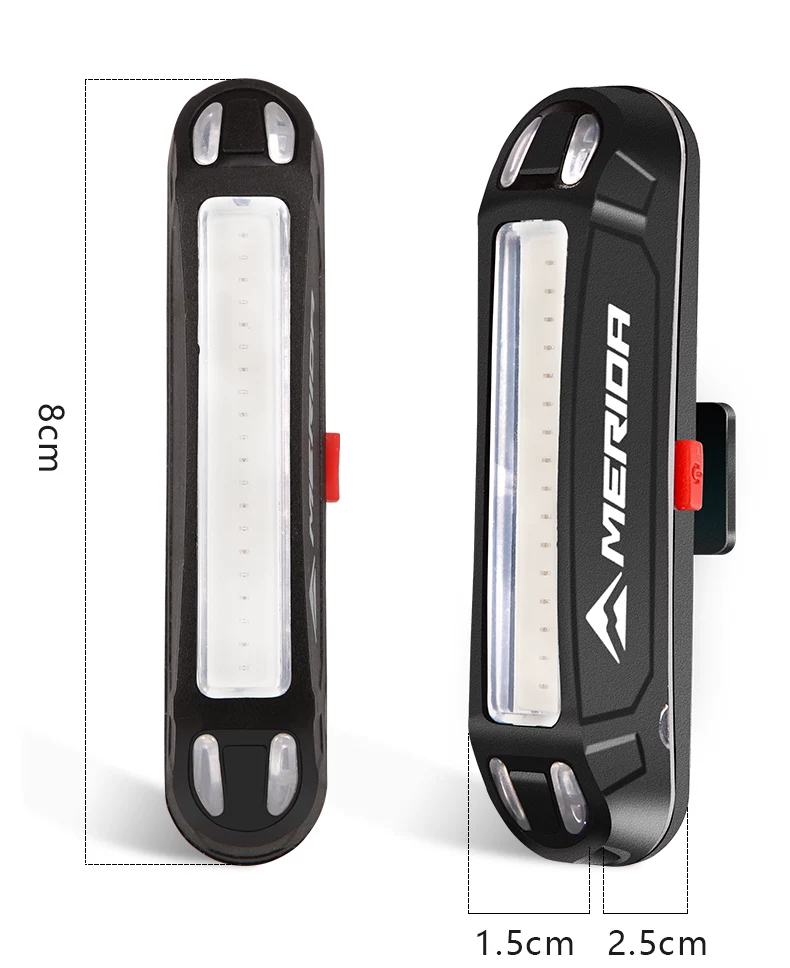 - Đèn hậu xe đạp để đi đêm, độ sáng cao, có thể sạc lại bằng USB, đèn cảnh báo xe đạp leo núi và đường bộ, đèn trước LED