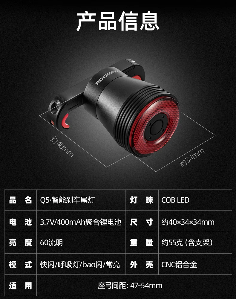 - Đèn hậu xe đạp Rock Brothers đèn phanh thông minh thiết bị đi xe đạp xe đạp leo núi xe đạp đường bộ đi đêm cảm biến đèn hậu